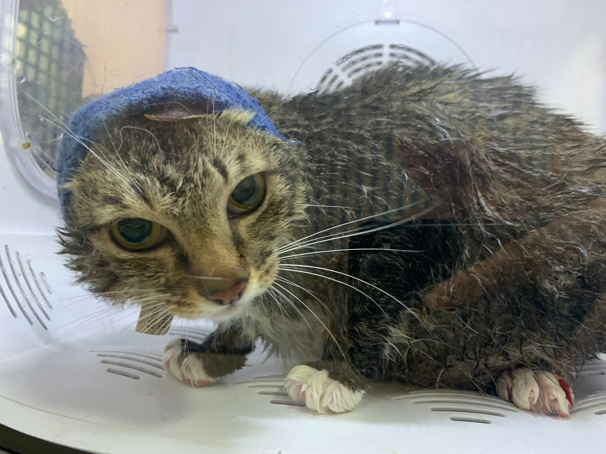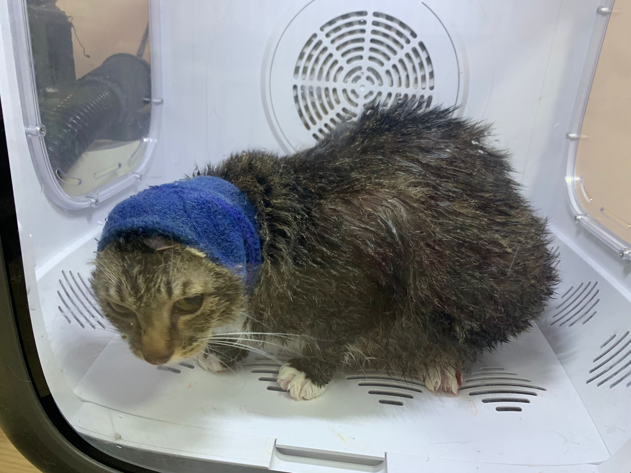 • nala, the only girl, 2.3kg female tabby. Very very siao siao. Even blur from sedation, still dash here dash there, jump up jump down the wall, wanna run from human touch. I found out her tummy area v saggy, like those typical hernia cat like that somemore she just spay recently. can’t be fats Cos she rather thin? I don’t think the previous place can confirm whether she did eat. This have to observe