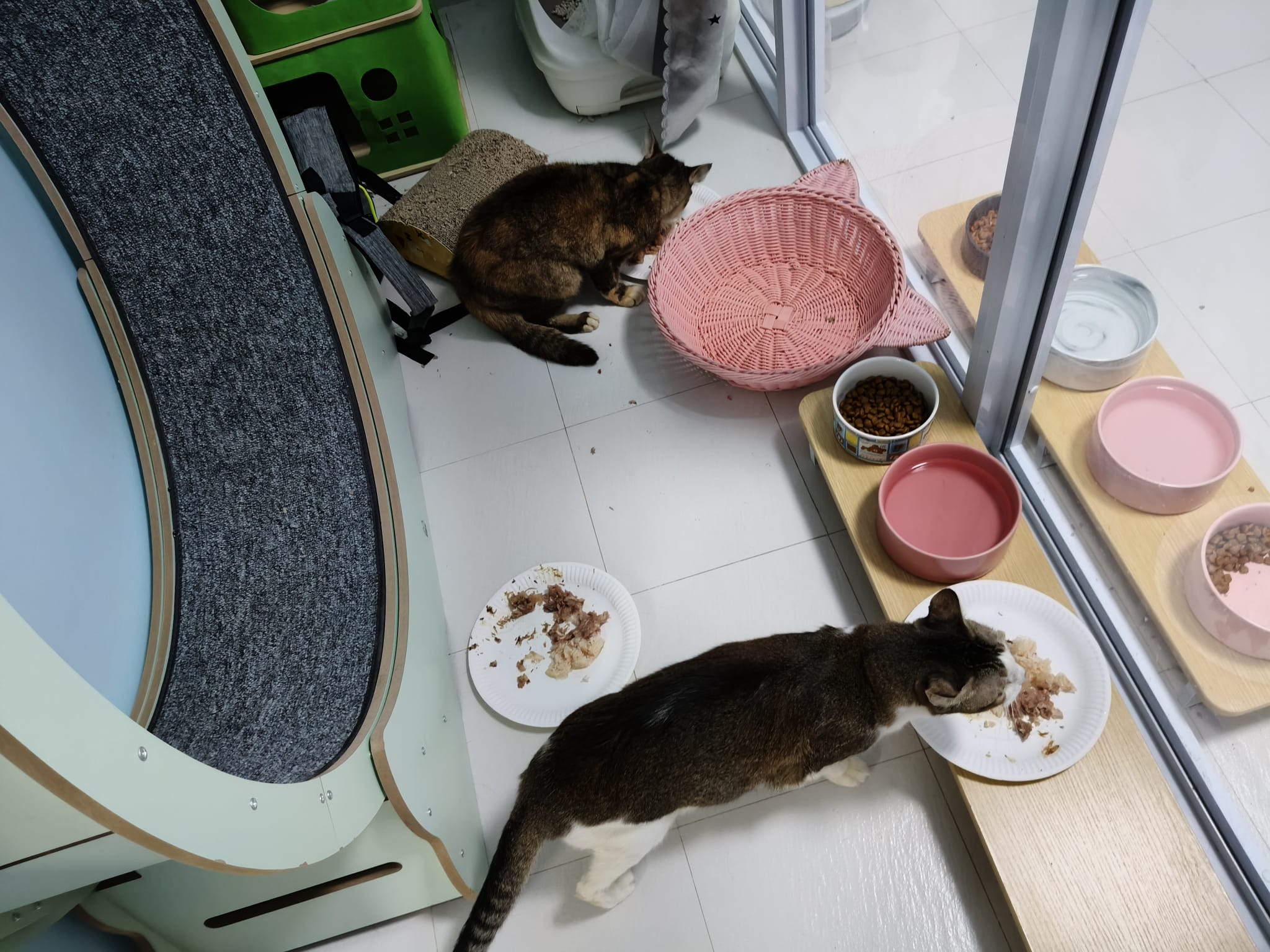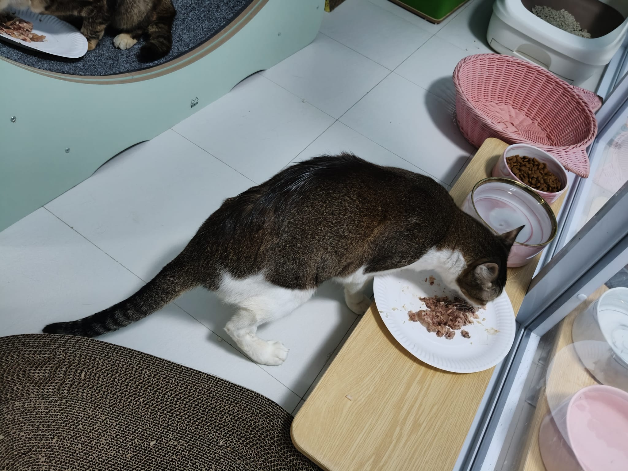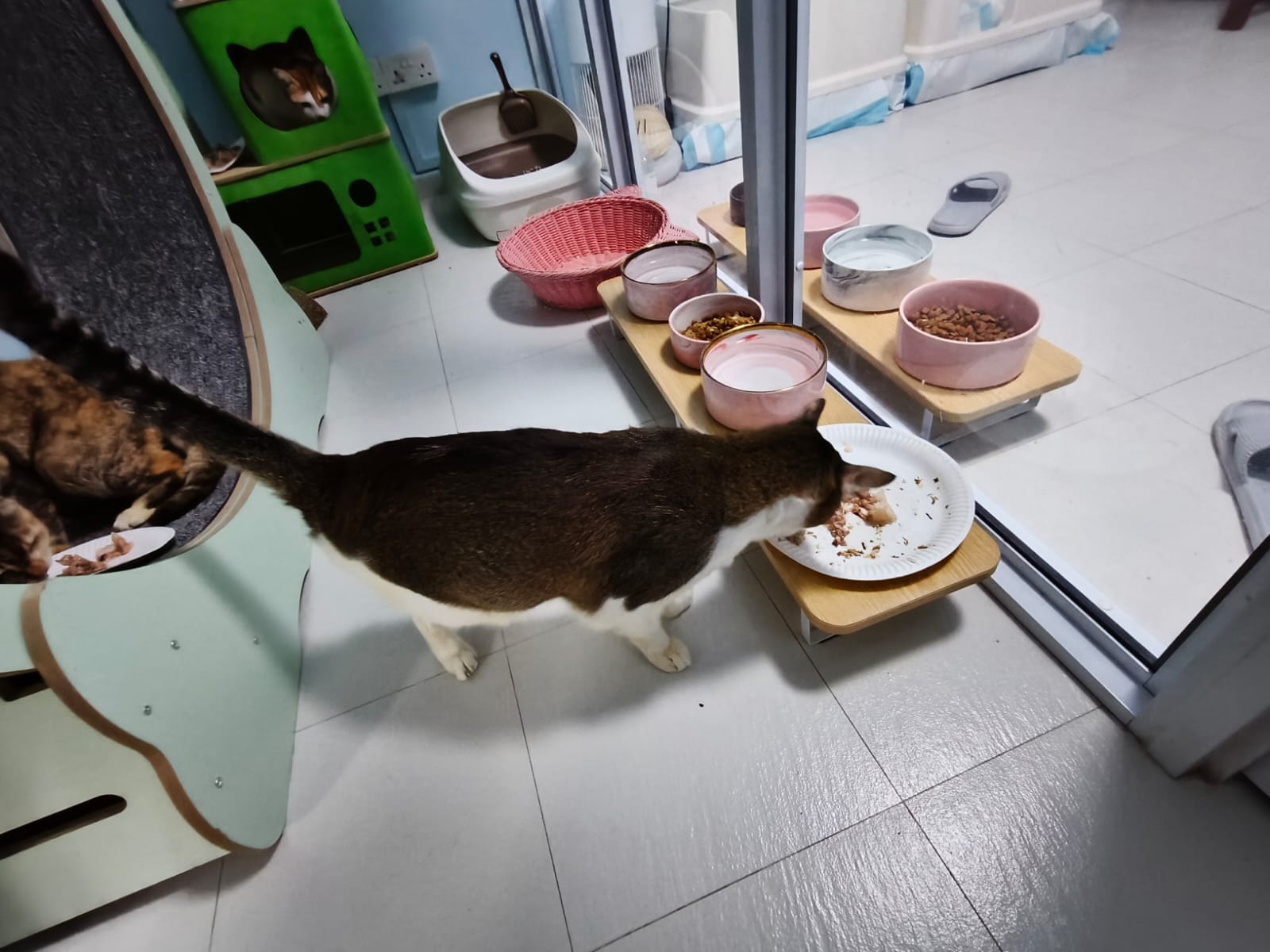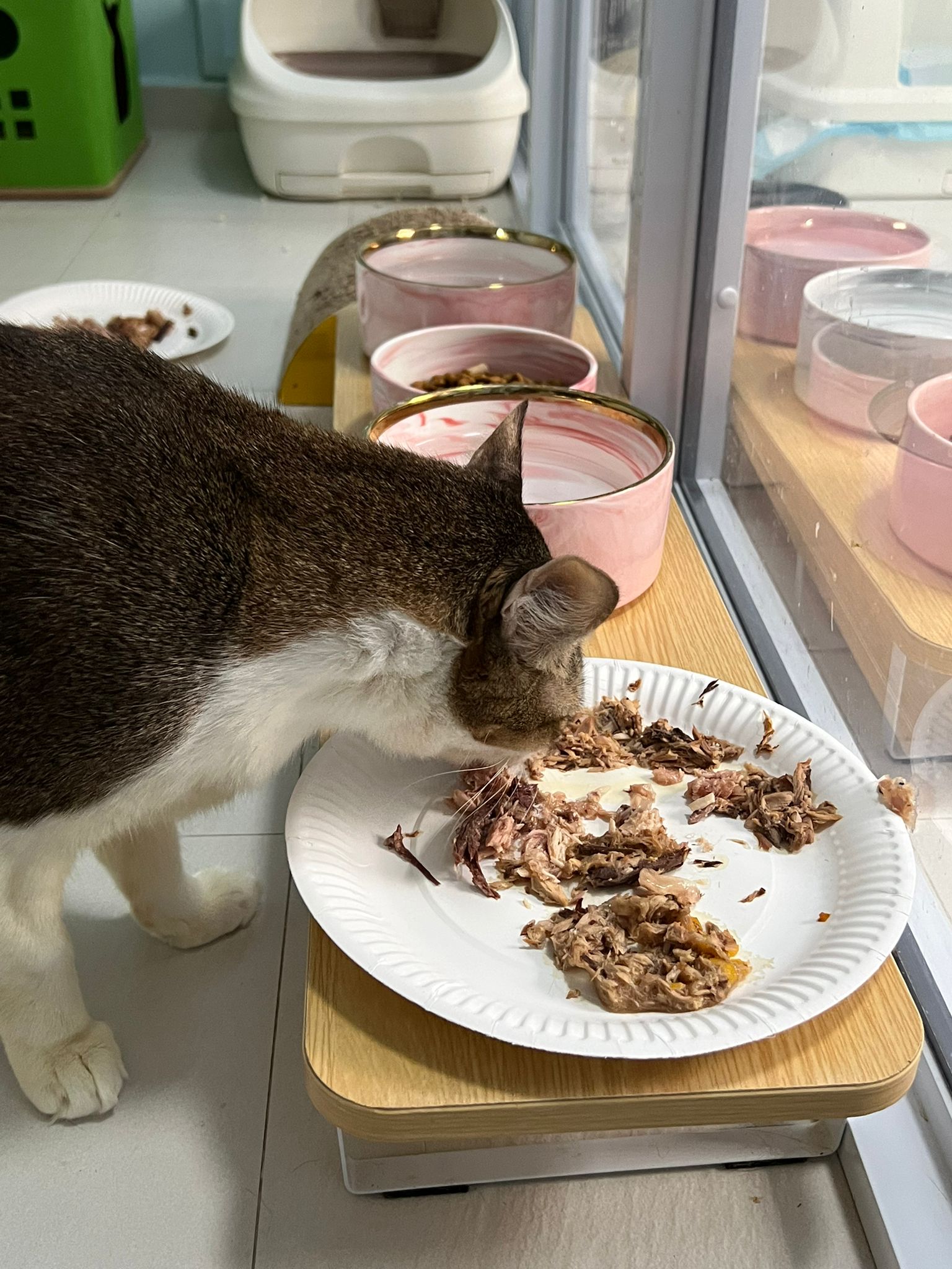 10am+: wa their room 3 plates all quite full, like 2.5 plates left untouched, it’s tuna w pumpkin they don’t like ah.