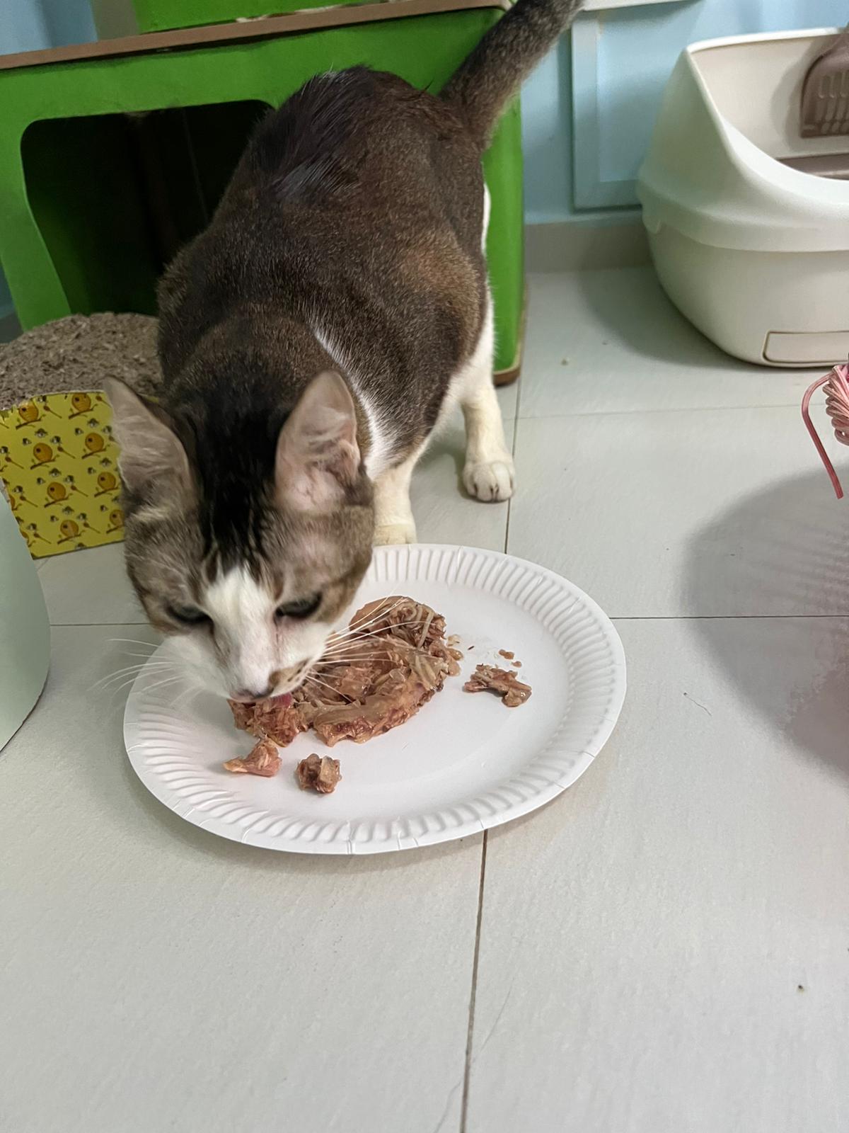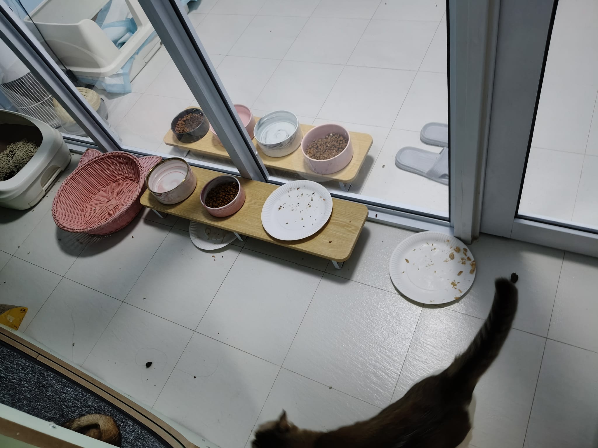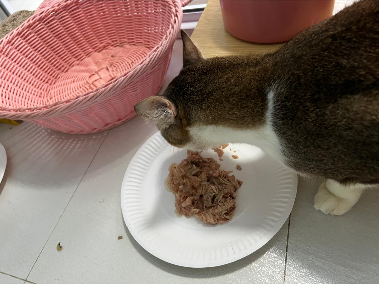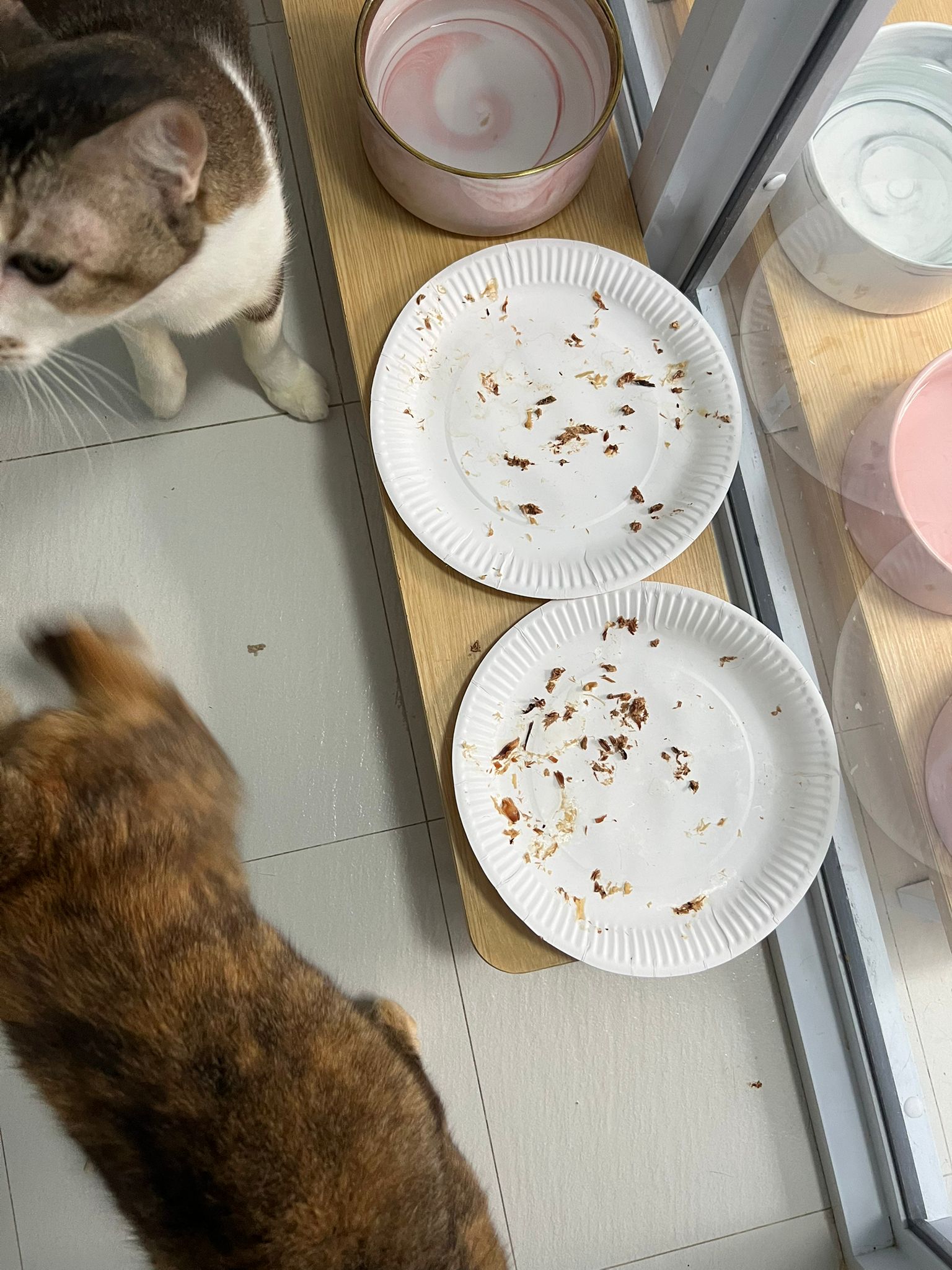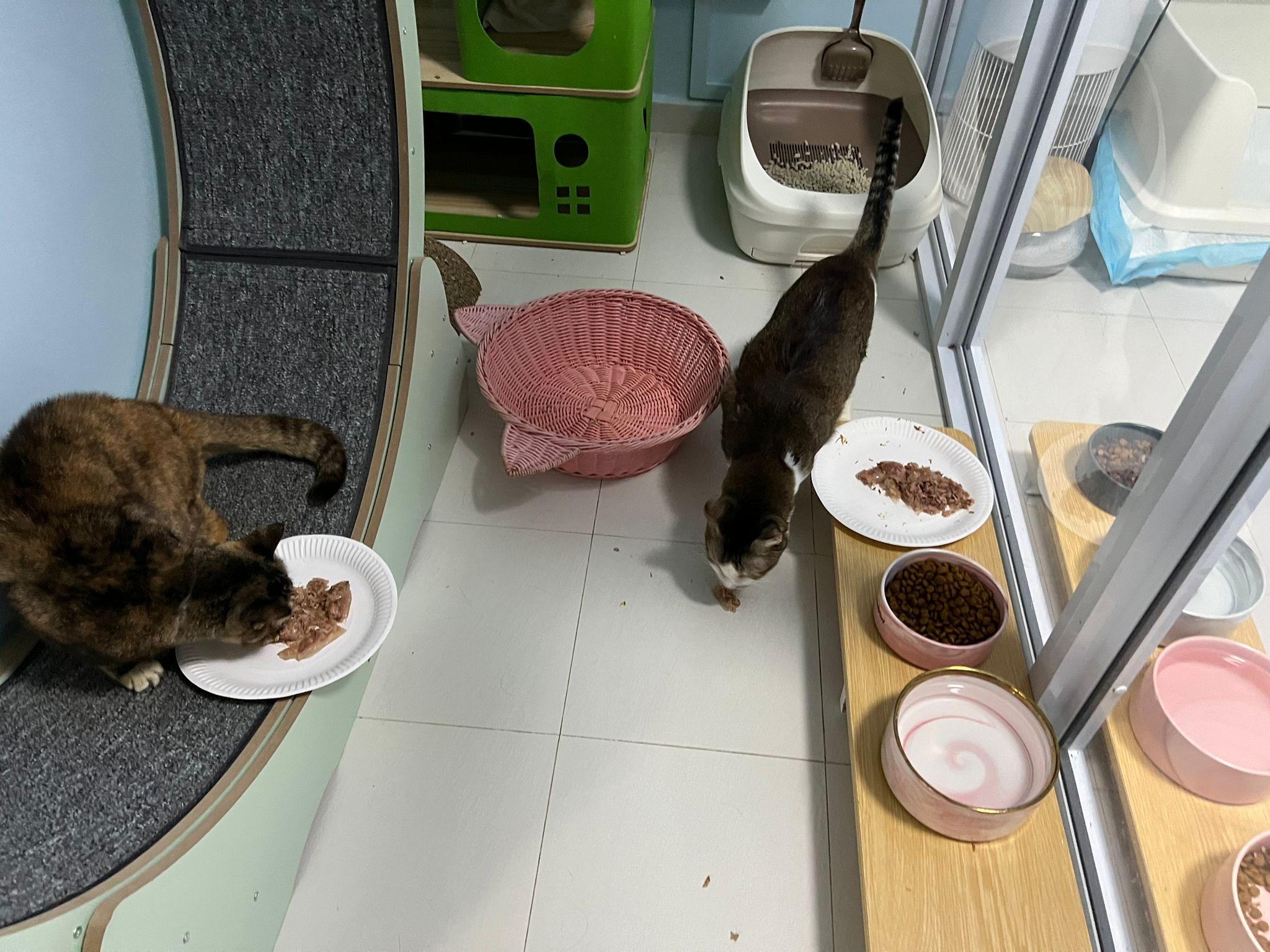 10am+: wa their room 3 plates all quite full, like 2.5 plates left untouched, it’s tuna w pumpkin they don’t like ah.
