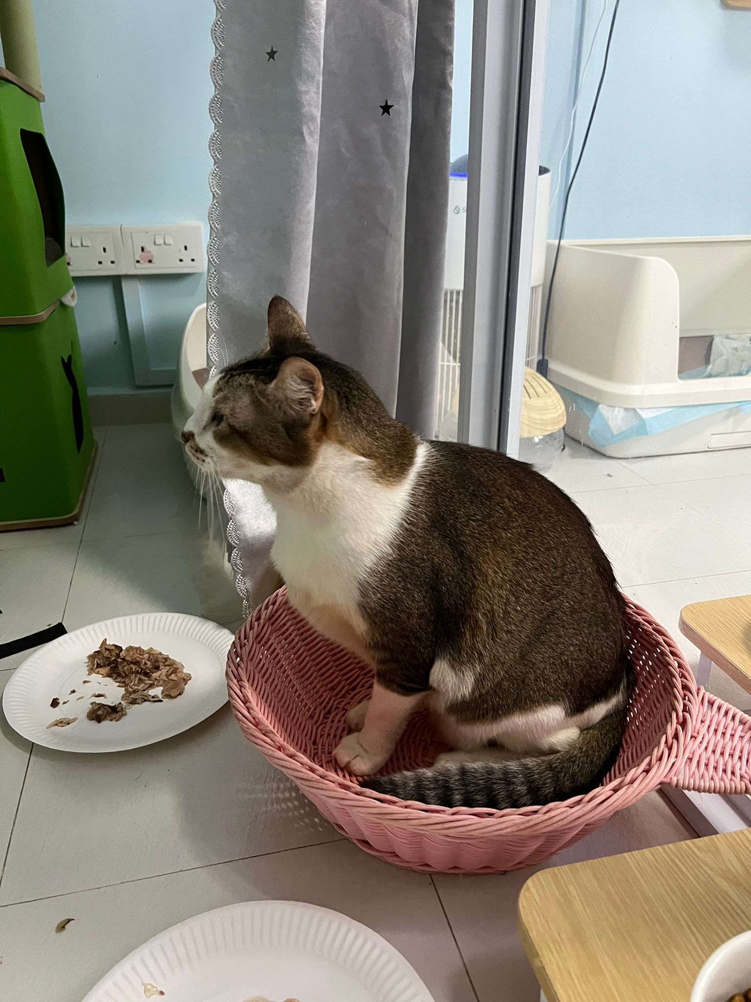 11Am+: weigh him 5.14kg – fr Sept 2024 lose 240g. But this round he eat very well. all so tense on scale, told them going home le, told him next time papa go holiday again they come find me. I do hope by then this room no more means I can cut down 猫房 expenses by one room