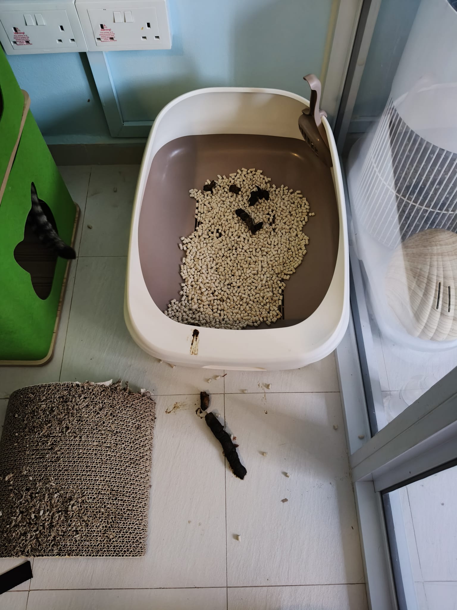 • Benji got come down to walk whenever he thought I left 猫房 alr – he check out the extra 2nd bin I put in their room for them