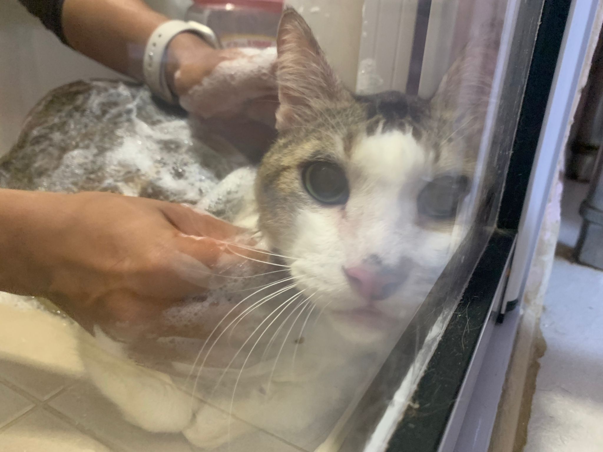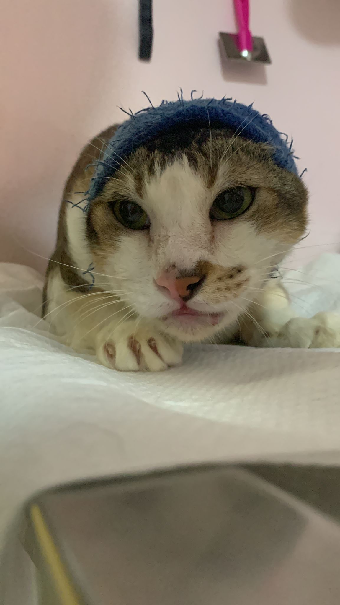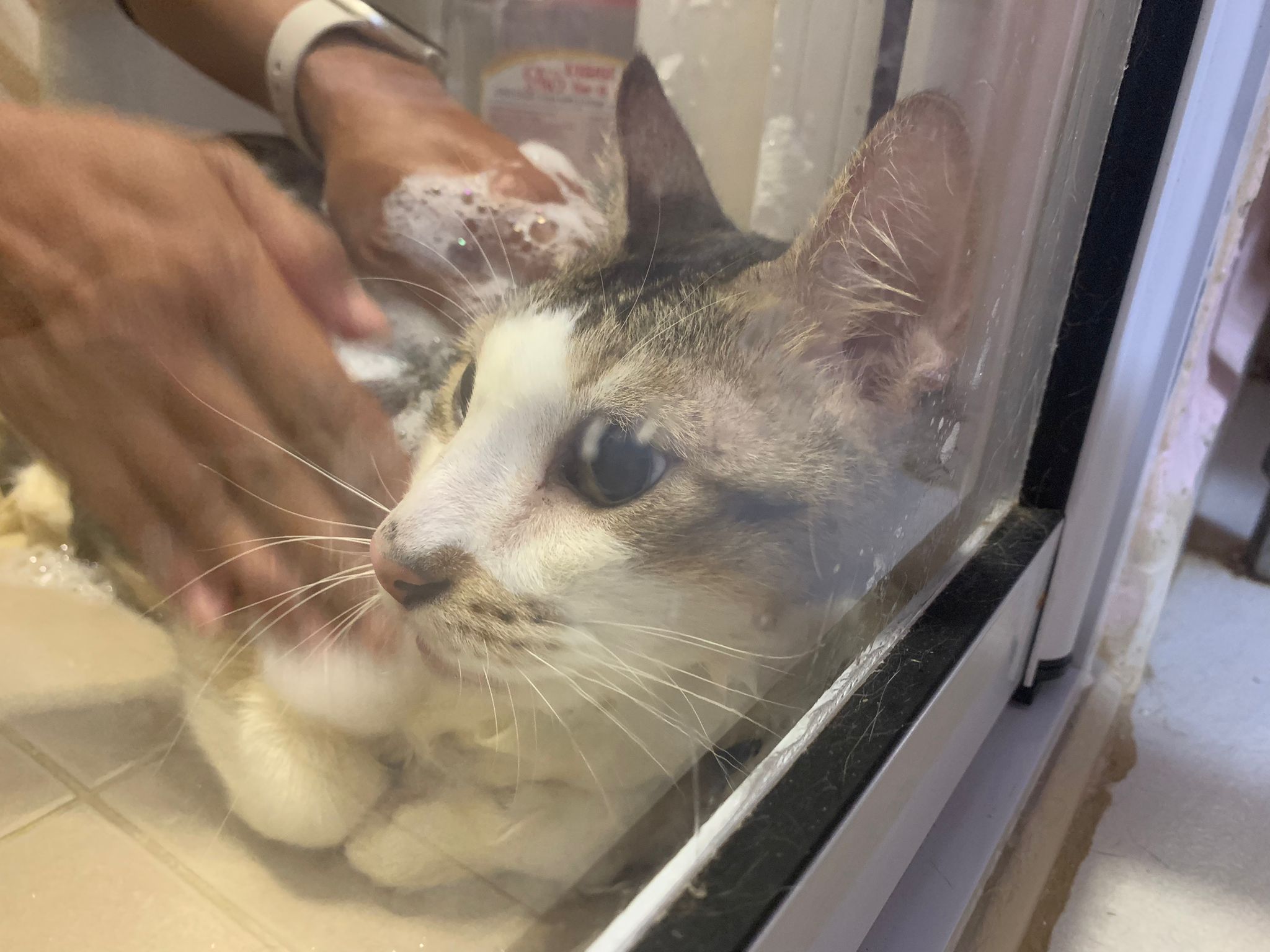 Calm in 猫房 seeing gigi and cherie but no space so let him cut nails and clean ears in their own room first. Ears clean and no ingrowth.