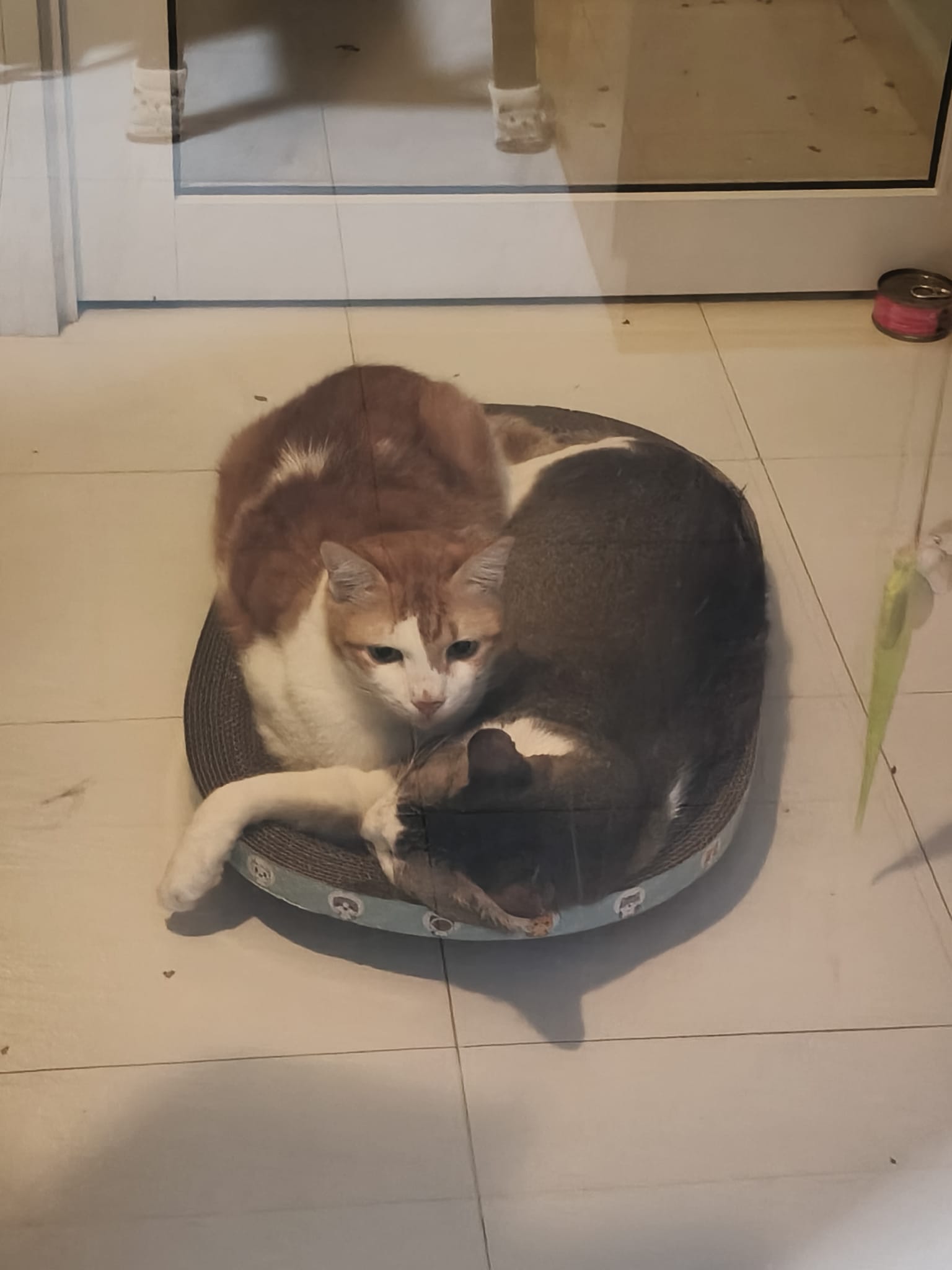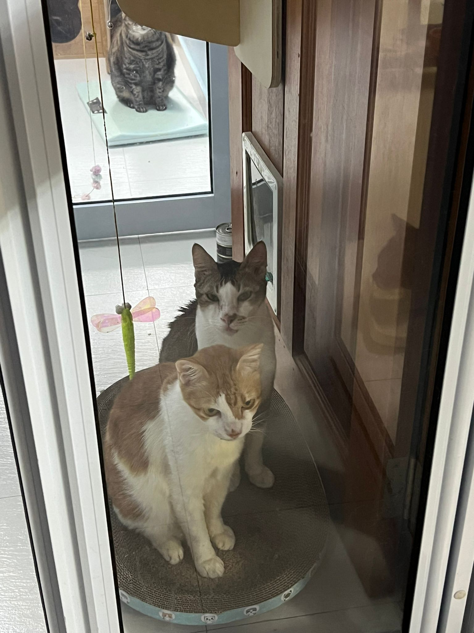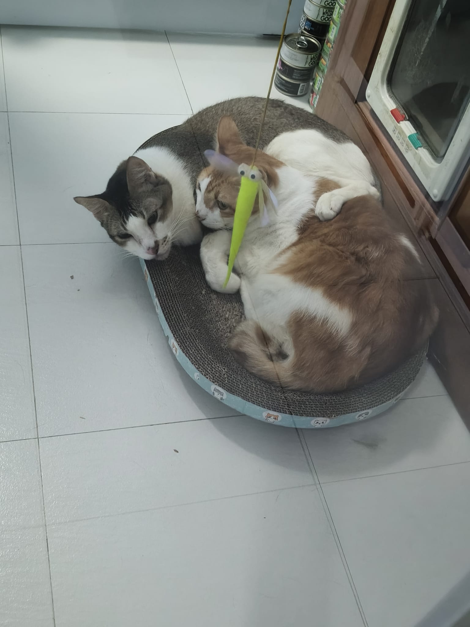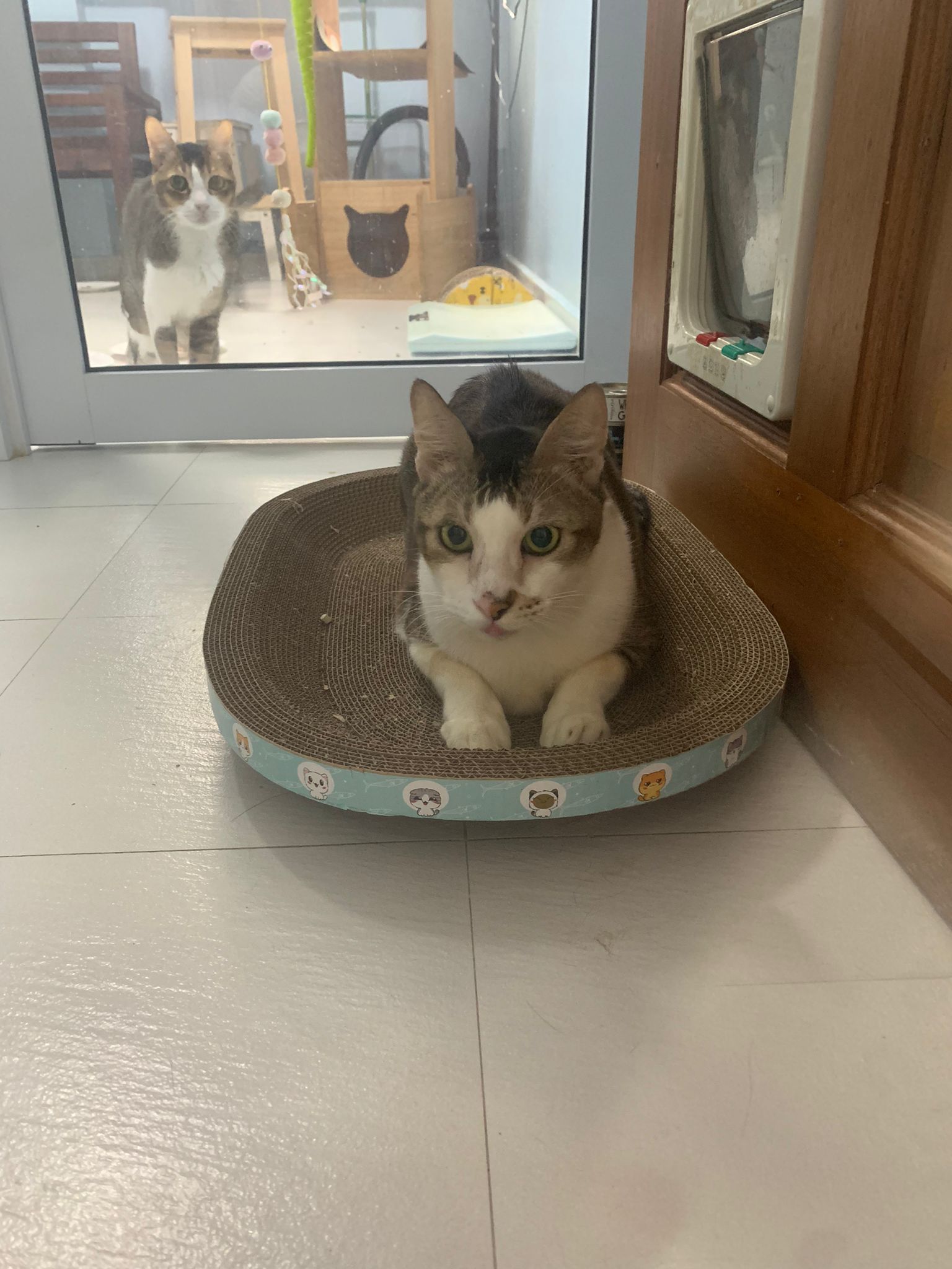 Both are brothers. Their mother gave birth to 3 kittens outside my house. Bought them in and later, adopted the mother and their brother to a family. Both are happy cats and have a sweet temperament. Benji loves to eat and not fussy about food