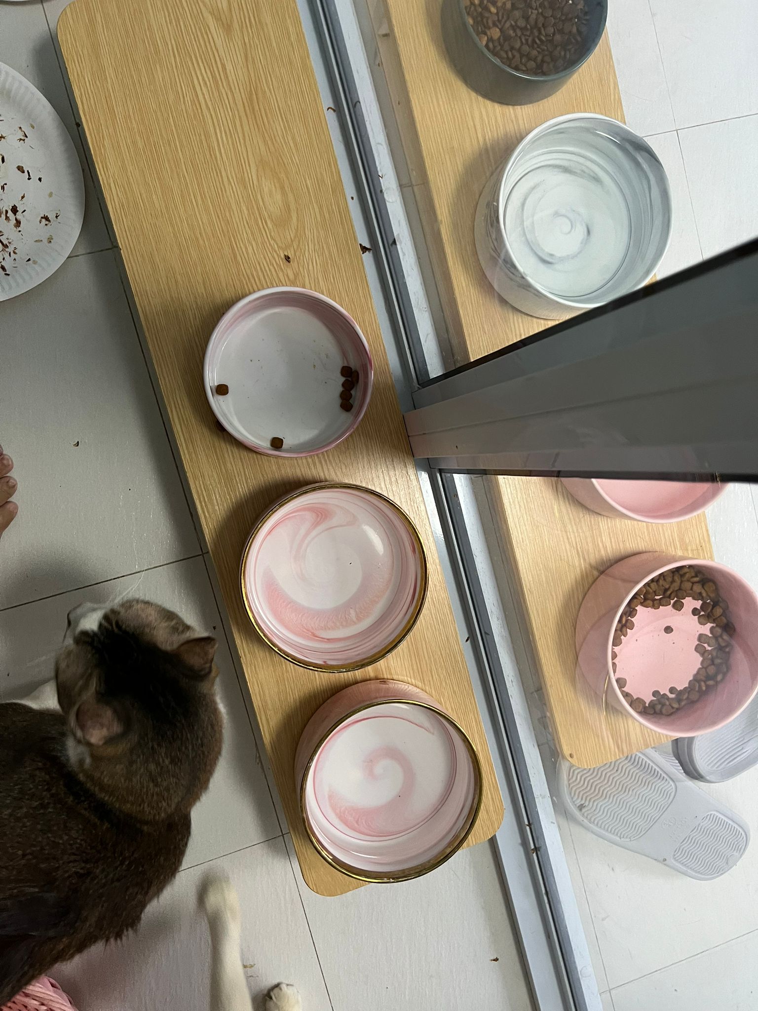 9am+: food almost all clear. Kibble bowl is empty again. They like RC urinary. 2 sets of poo, 4/10. 5/10. all 3 of them eat tgt for breakfast again.