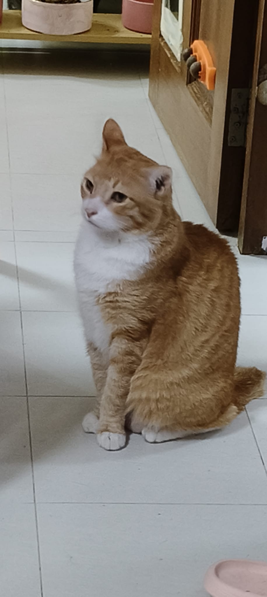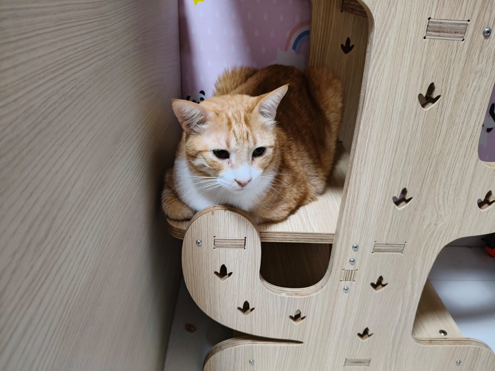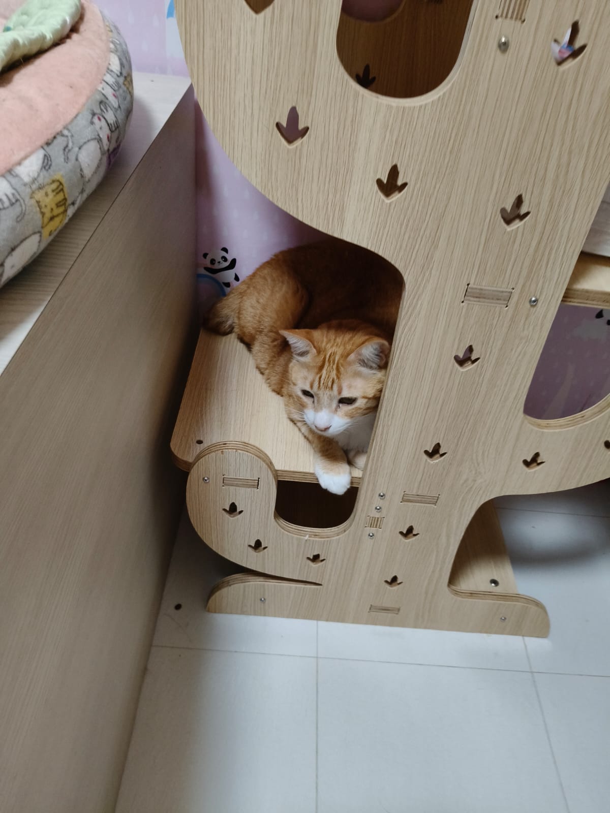 Follow his mummy Amber since young, scare of human, don’t allow touch. He don’t really attack me if I touch him but he will fly away. He is playful, play feather time n laser light he will come. I assume he grow up well in 猫房 – muscular and strong.