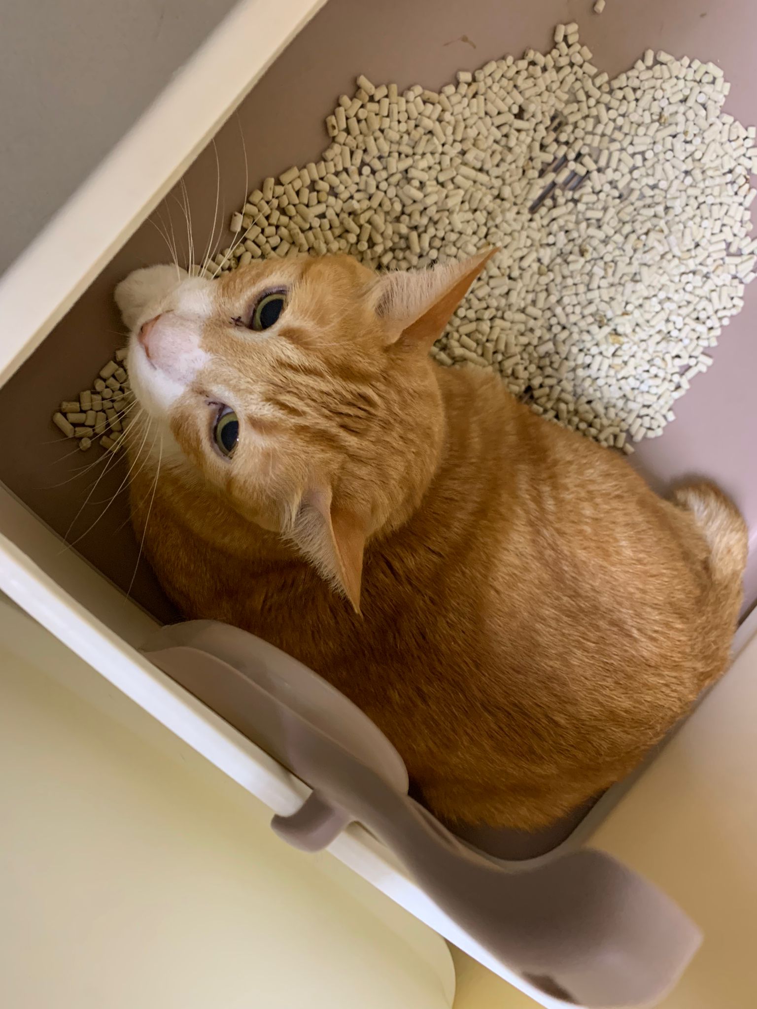 3.40pm: still in bin, I got to scare him out n he go the top. Serve him teabreak