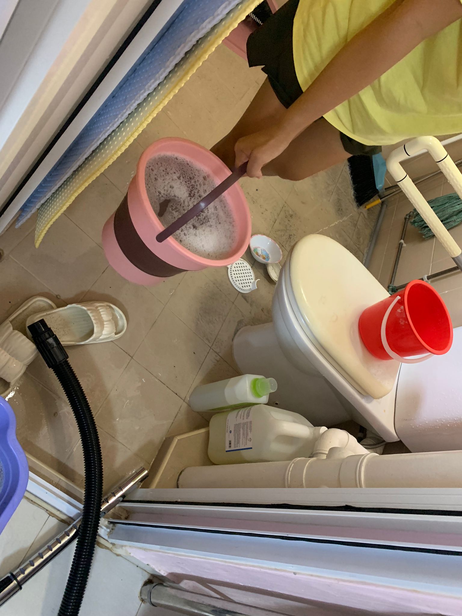 Today major cleaning dAmn tired n long. Cos the toilet clog, use the water vacuum also headache. Use Mr Muscle n mr clean. N baking sofa. Think got to buy something powerful. V irritated phone keep ringing block the number, Duno who. Bz cleaning the toilet up cos lots of stones n etc. tmr can’t come 猫房 le. I’m too tired. Later try to knock out.