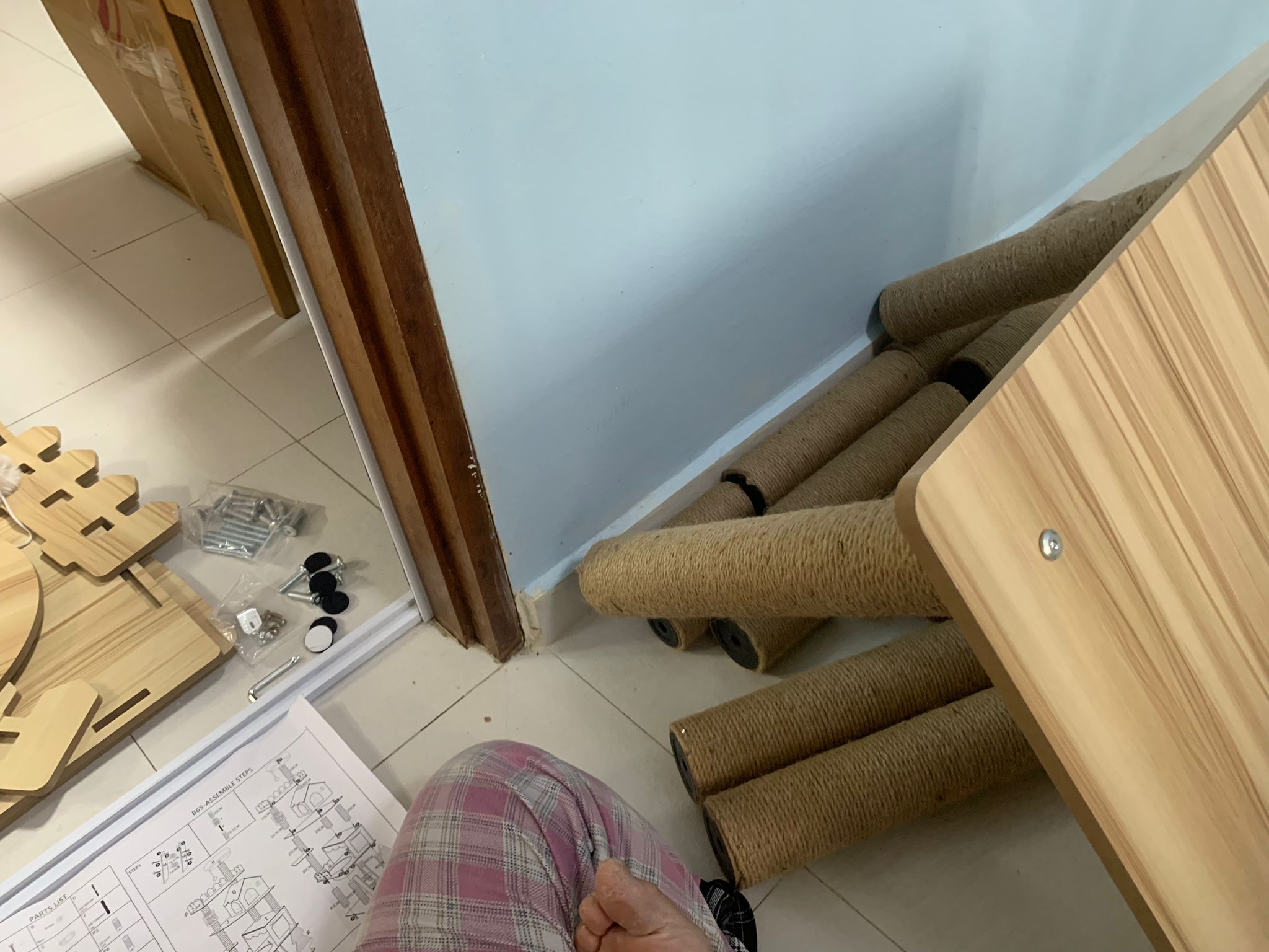 Our big cat tree is here. Super smelly! Omg Duno have to air how many days … off aircon.