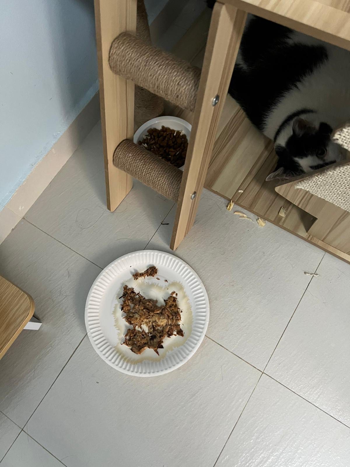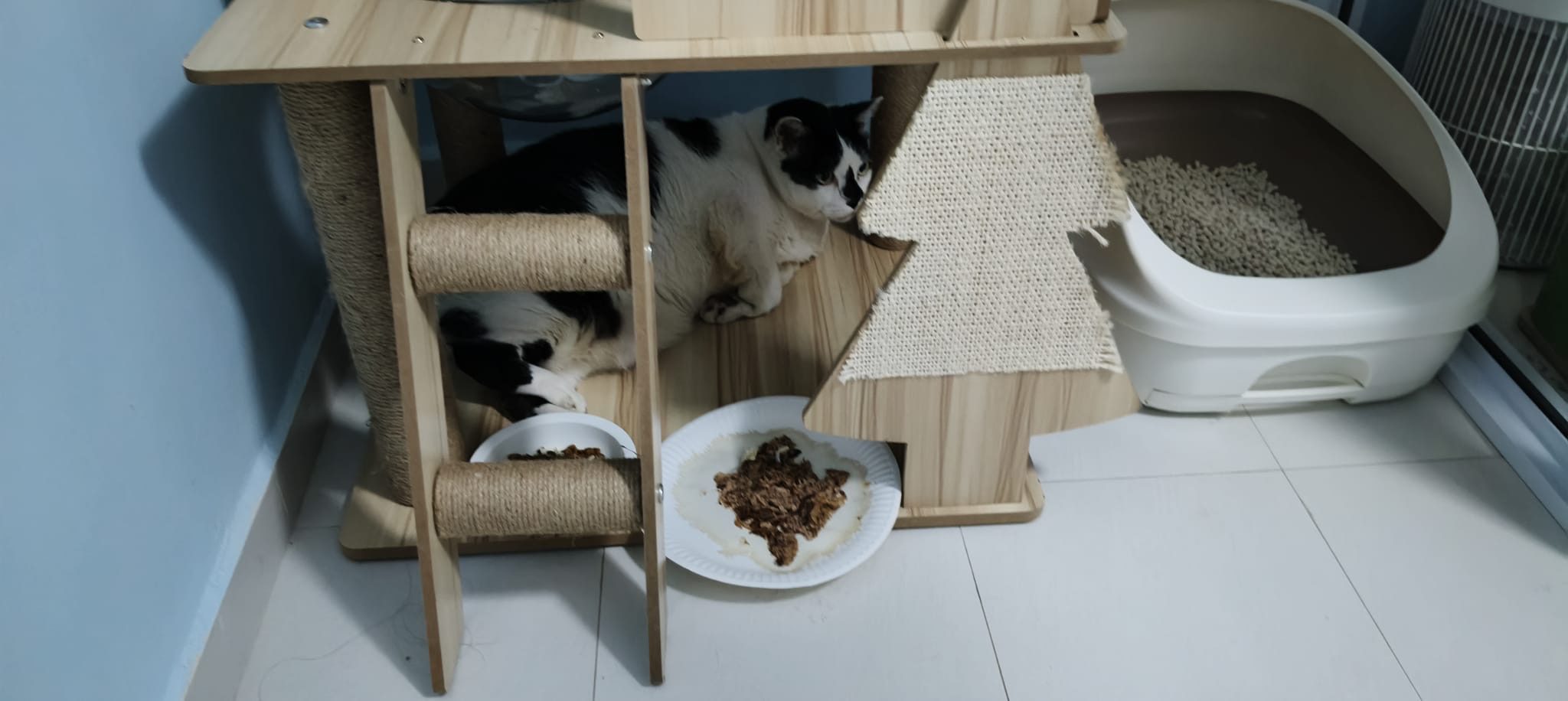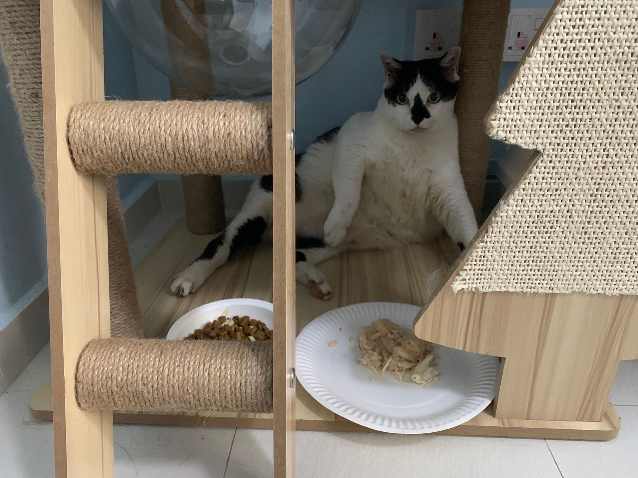 245pm rain almost stop sneak out to go fetch hei Bai sigh, door open I shouted so long n bang the gate and no one ans. Called n yet auntie at hospital. Sigh. Hei Bai is in the house, no way I can catch him at all. Extra info: mouth / jaw seem to be swollen. But nothing I can do. I alr squeeze out scarce time n yet it’s cork up. Sigh. I got to feed the rest early since I run out early. Today 猫房 kids super early dinner. Cancelled appt w dr d alr.