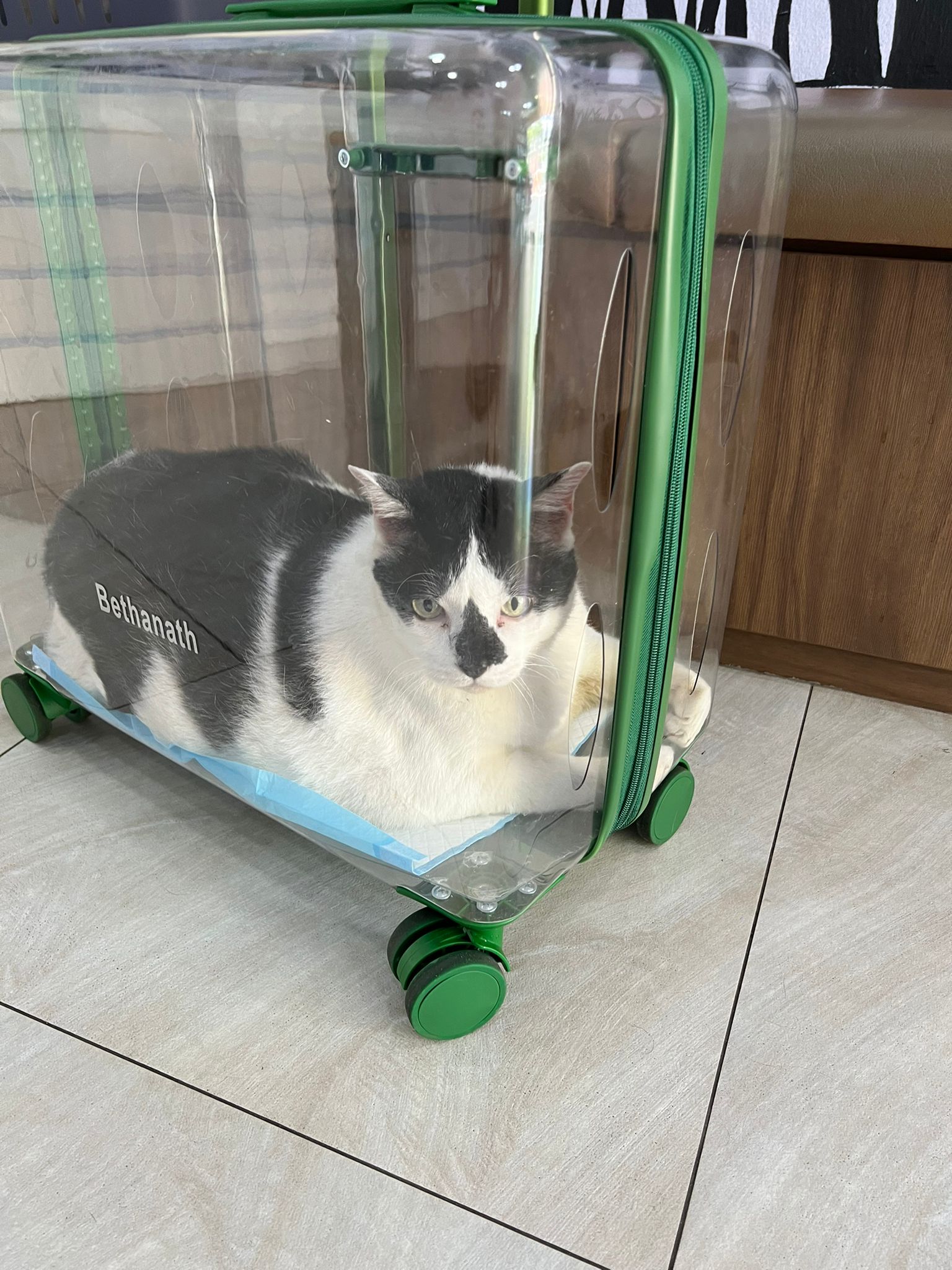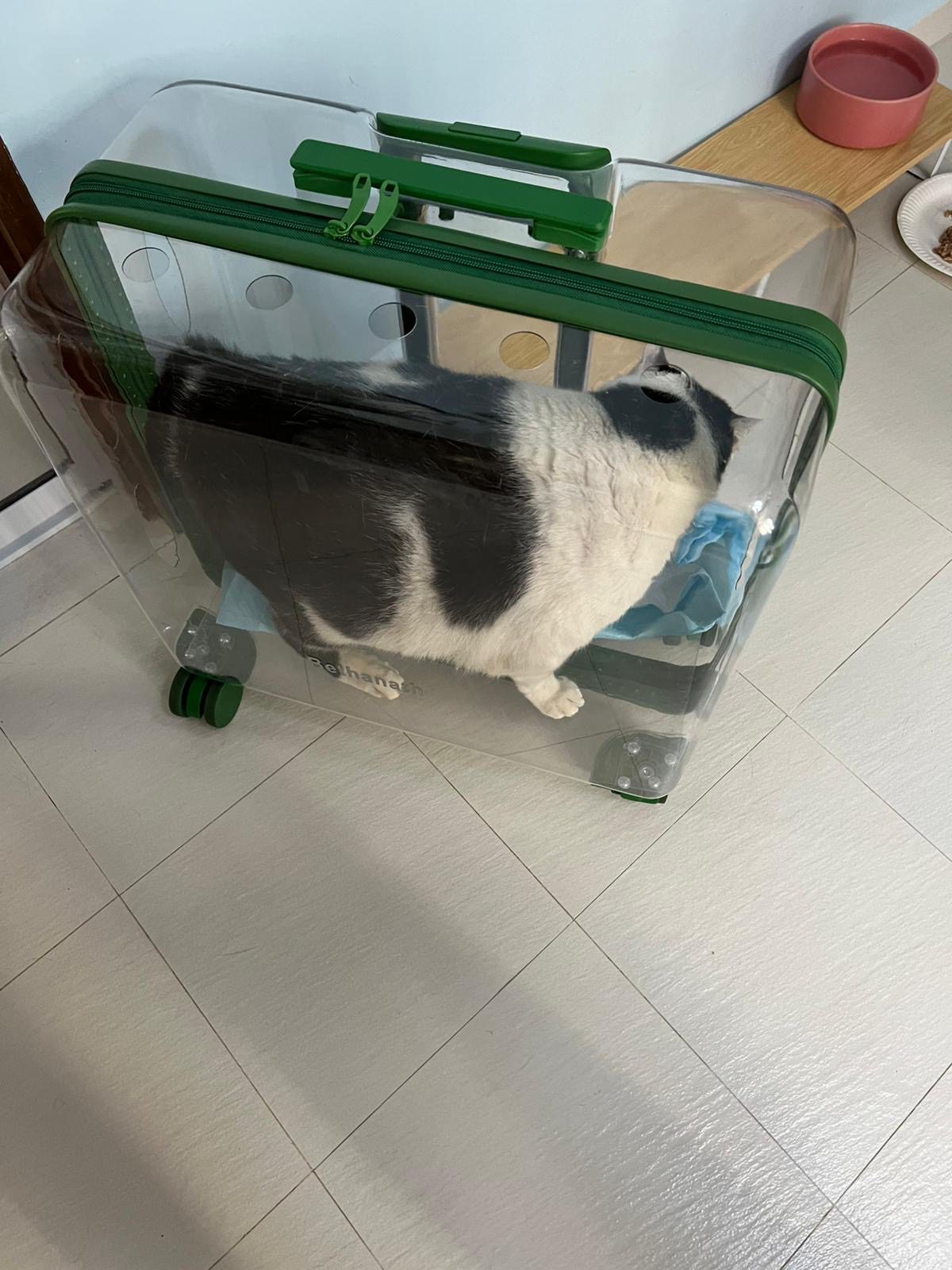Joanna manage to get him into trolley, easier for her if not he so heavy. He gave jo a scratch cos nail sharp, don’t think is intentional: “Hahah I tried to grab him then he struggled”