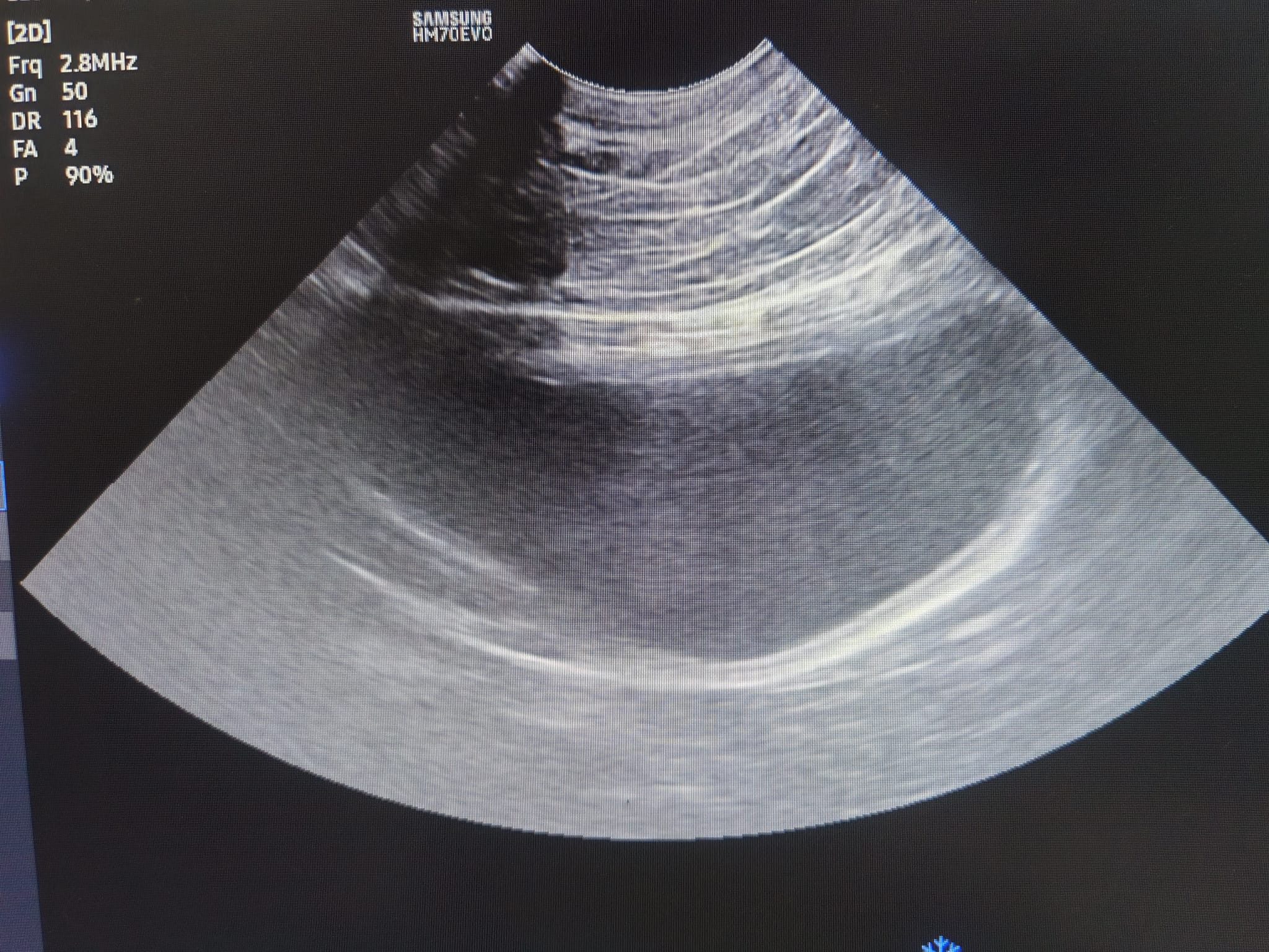 “HeiBai bladder scan – no obvious stones, anechoic lumen, mild lining irregularities.