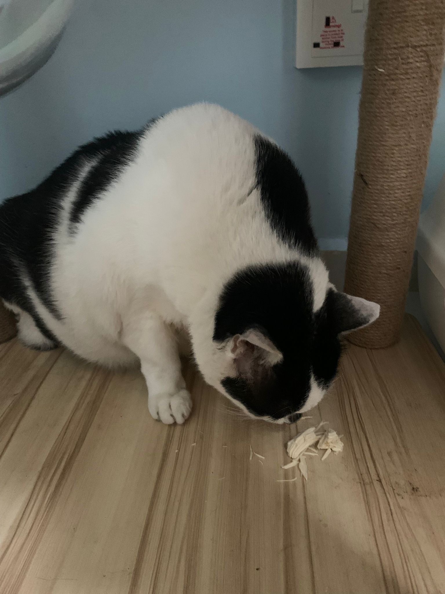 Still love butt rub, I use wet wipes to clean some of his back body and also remove that flattened pc of shit near his butt hole.
