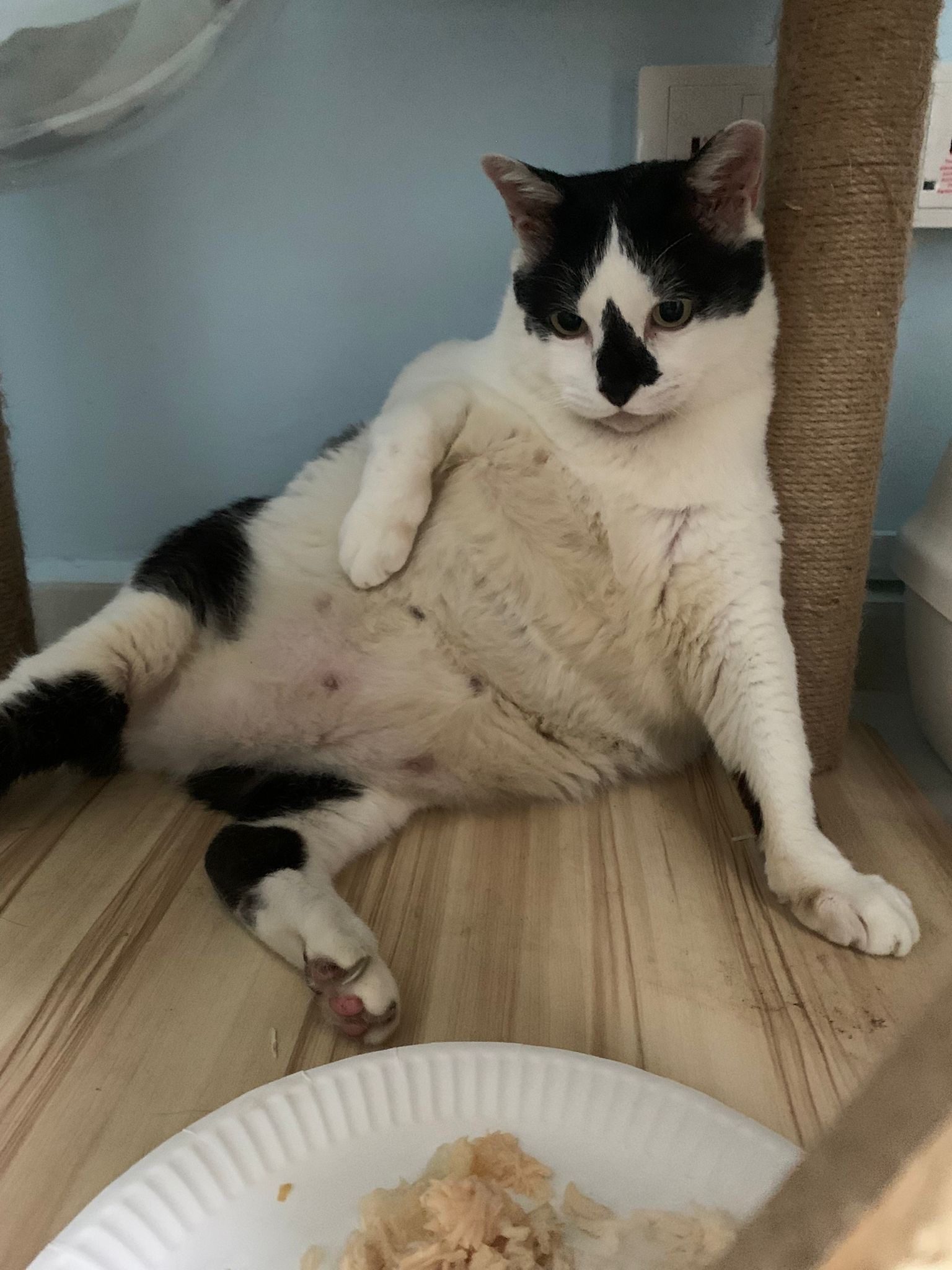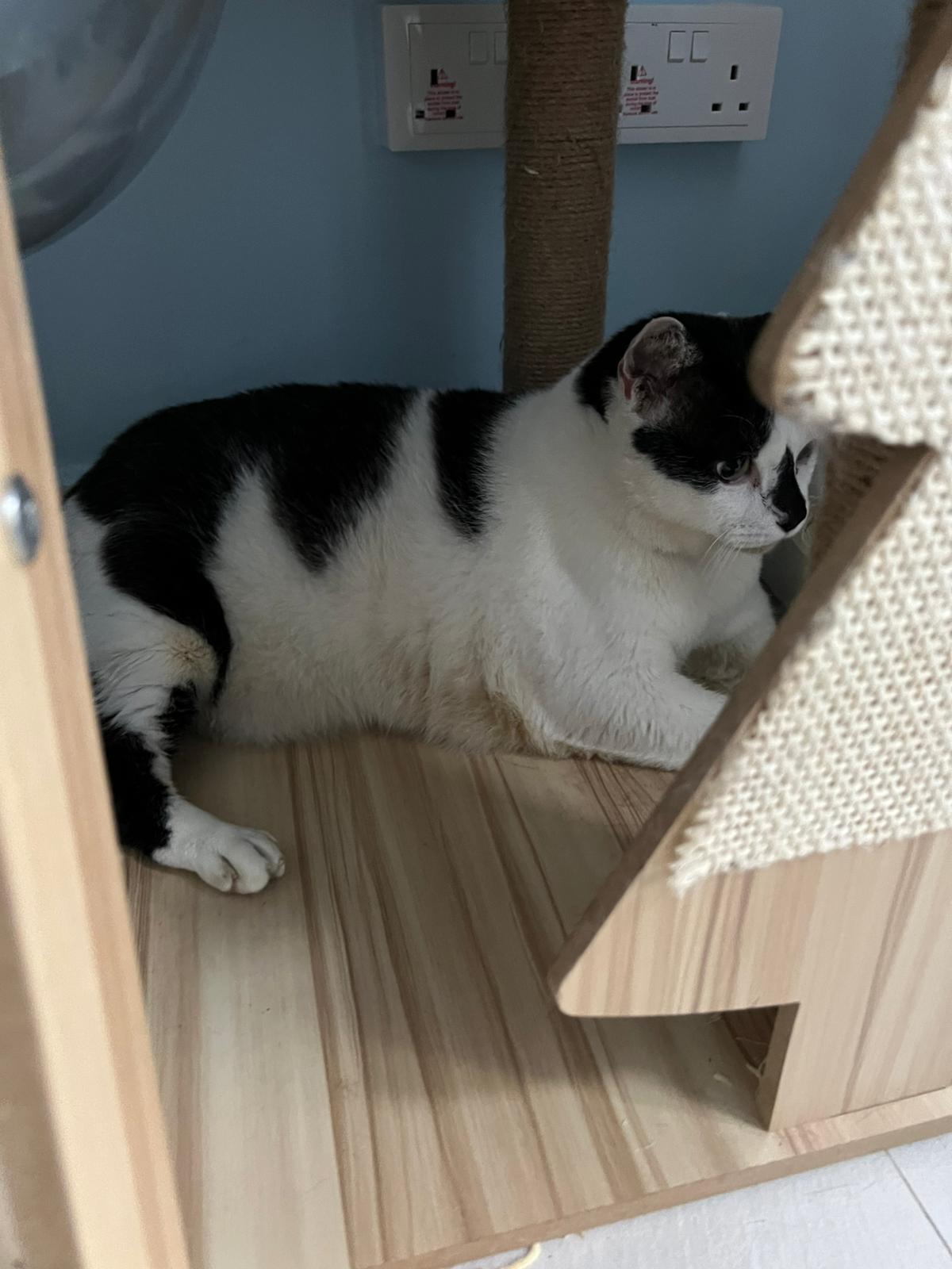 lungs no abnormal sounds/purring, heart sounds too muffled as overweight but brief ausc no gallop rhythm” – reject sdma the rest do, cos I’m quite certain hei bai no kidney issue. He is microchipped under me, and I got his sterilisation cert done also, in case he needs to retired from the old hood le. now the only considerating factor is whether he gonna be a fighter in 猫房, or he wanna retired here painless. Ha nails long next round the groomer here faint this fatter than Rufus my overweight cat charge I sure broke.