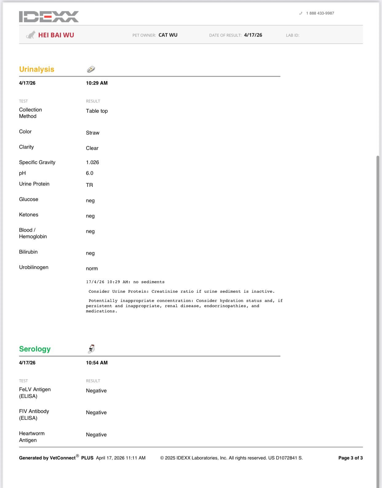 Then he pee on cardboard, then it can be hb got reasons not to go to his usual spot to pee (she then say XBDD always stalk him there). Then the fact that she can smell the pee smell, means hb kidbey urine concentration aren’t that bad yet. So conclusion, if today go vet either vet also Duno what to test, if not will be anyhow everything also test. Cbc chem15 lytes, fiv/felv, urine analysis UA UC. Blood n urine smear. Will see how today n tmr.