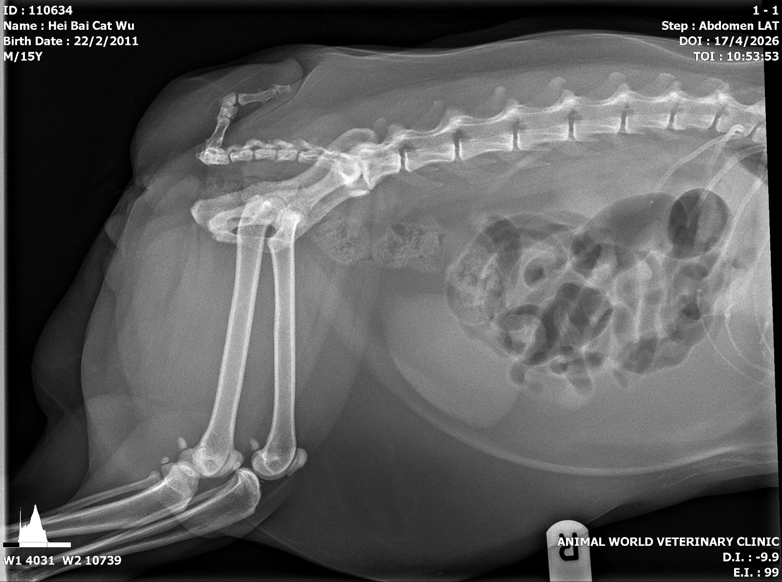 11.3kg. dr mention the word “abuse” le for hei bai weight n size, so fat. He is extreme agitated can’t draw blood from neck, can only draw from hind leg (n only a bit less then 0.4ml) – so only can manage to take Cbc n fiv felv.