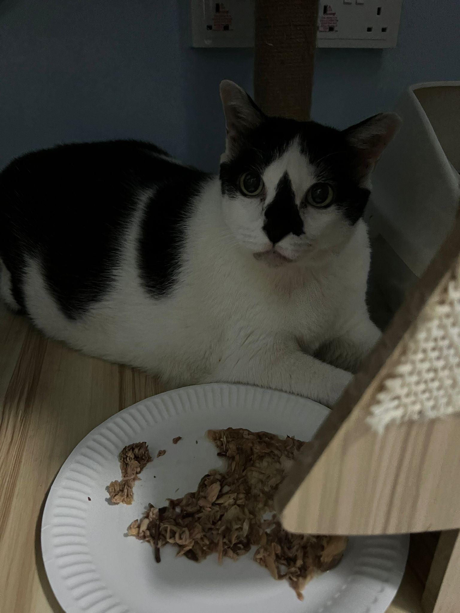 Morning: go sayang him b4 I go 猫房 cos past 2 days I walk pass him after I’m back I only call him but can’t touch him.