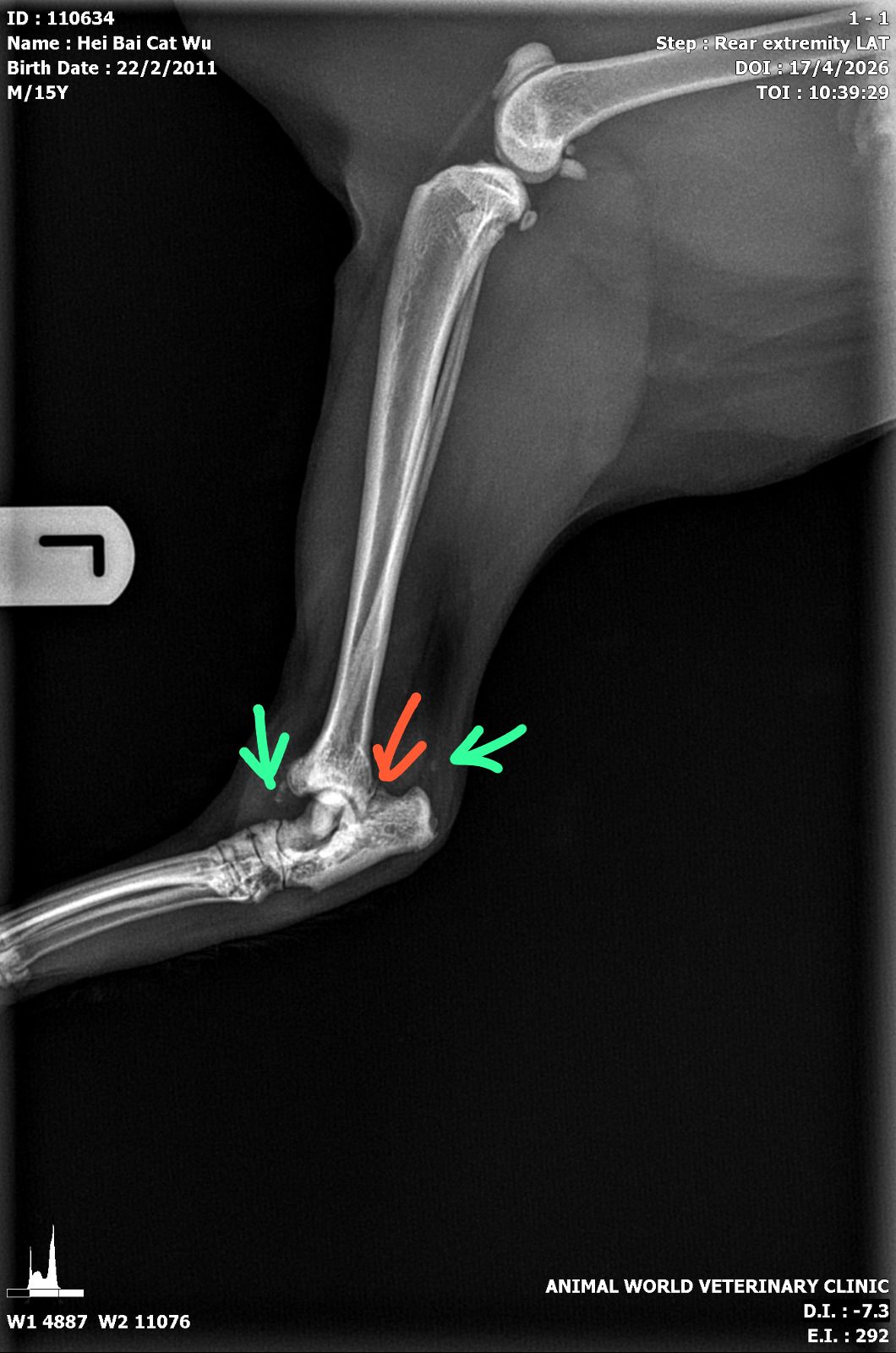 – xrays L and R hock all have evidence of marked arthritis and there is suspected fracture at the hinge of the hock (both left and right) so suspect is obesity related