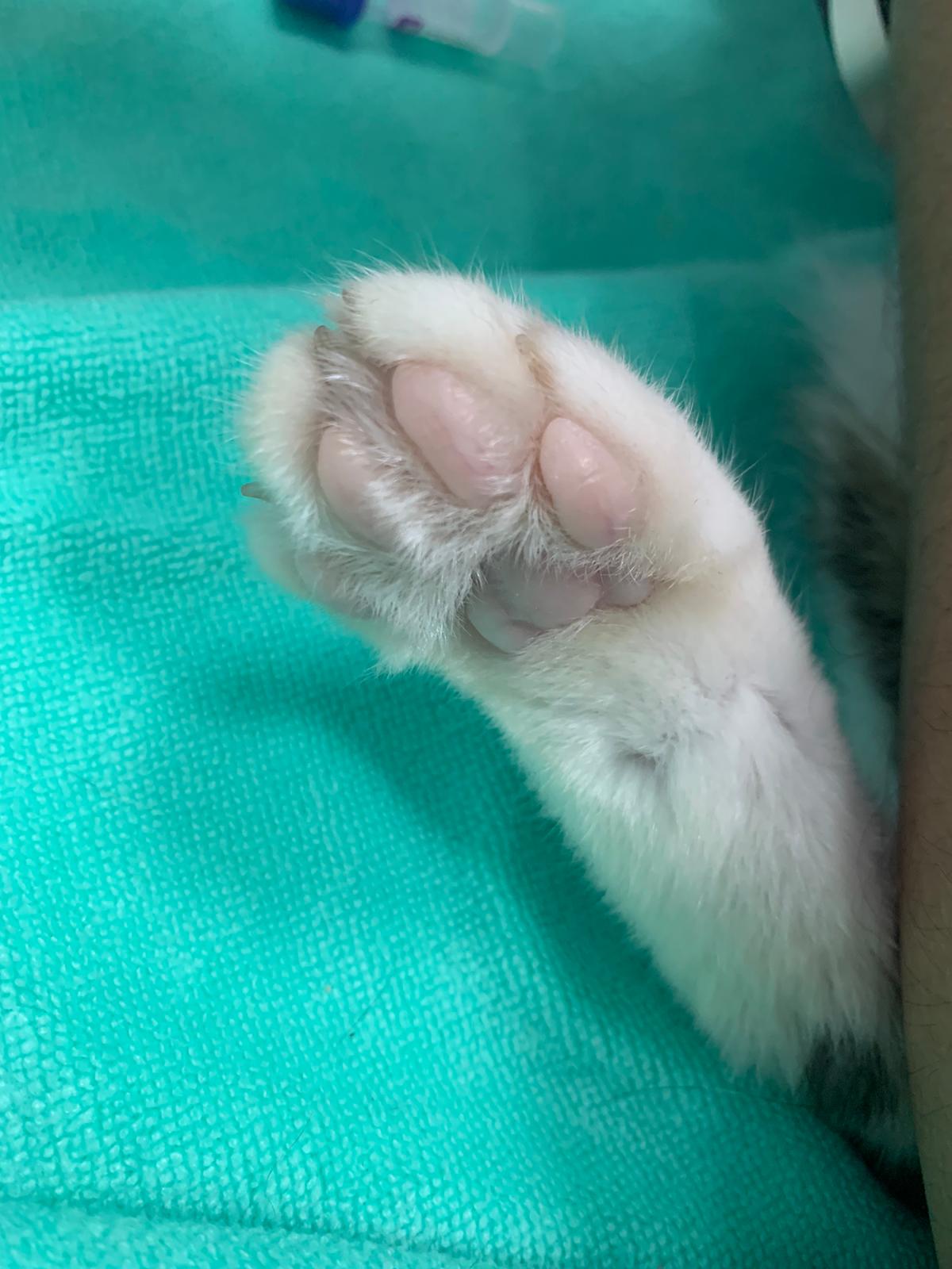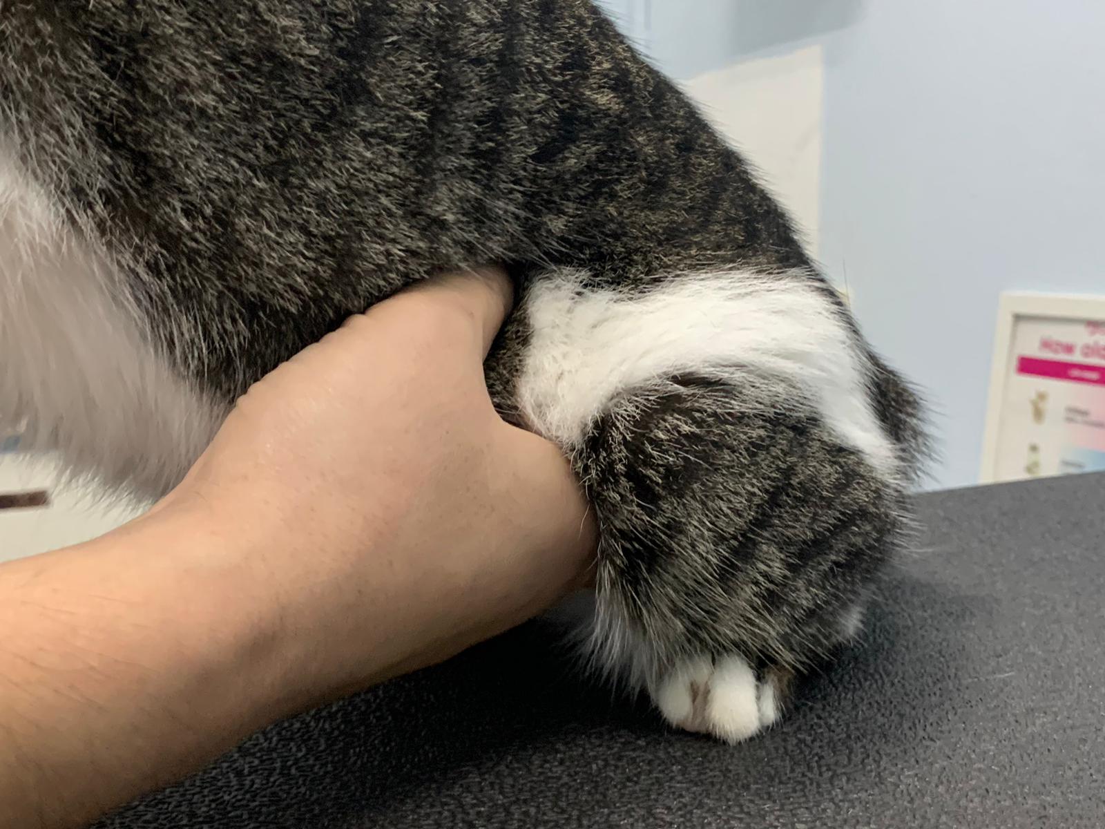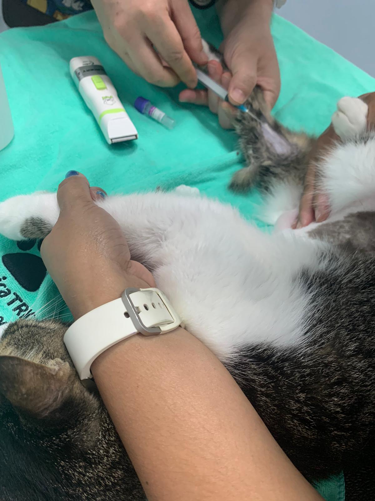 His toe looks so pale, can’t draw blood from jacular cos he keep moving; his left hind leg blood pressure so low that blood flow aren’t that good. Have to shave to draw again.