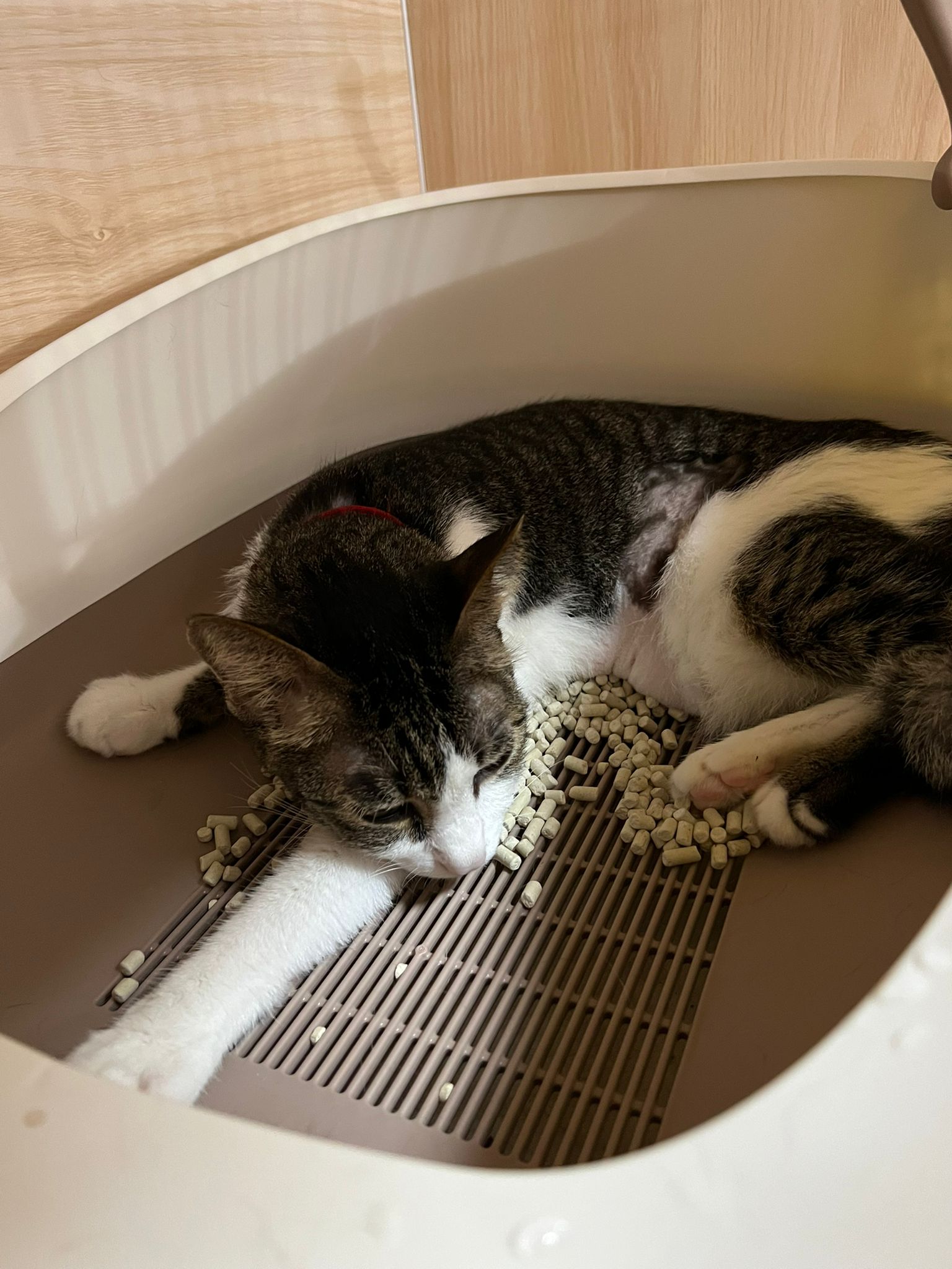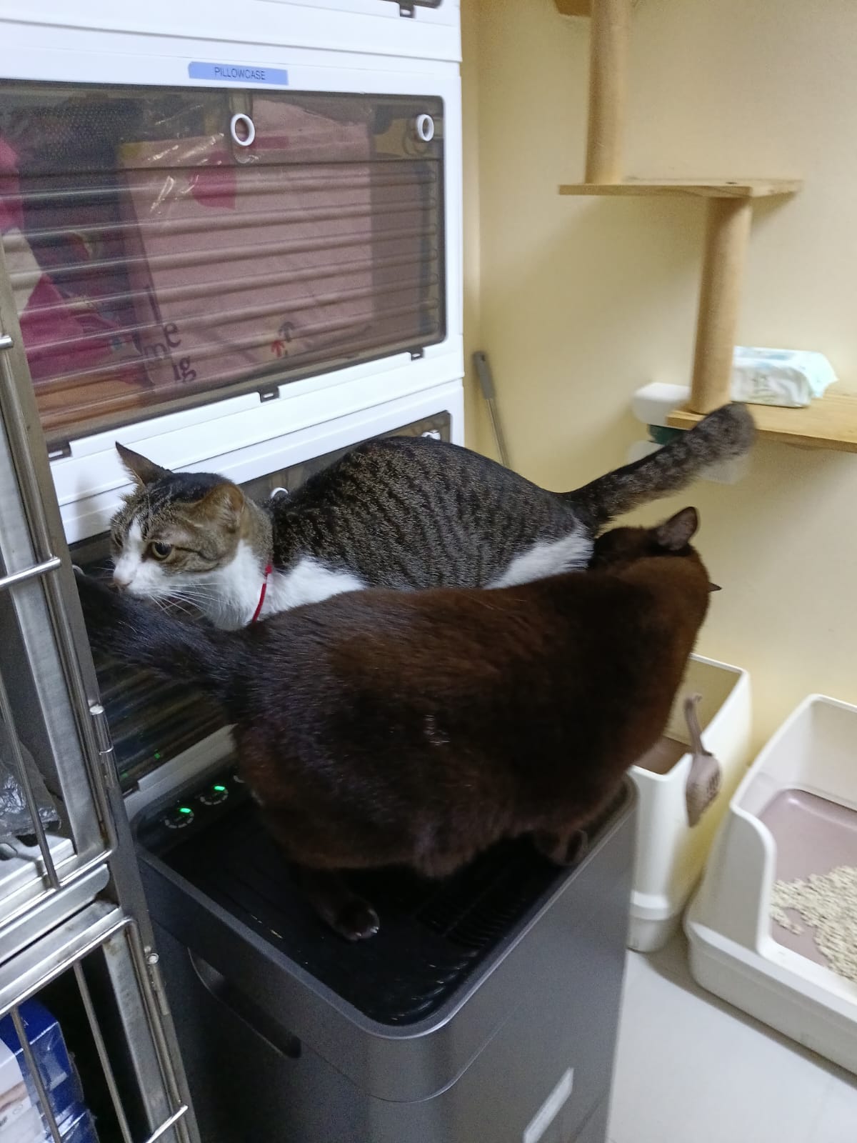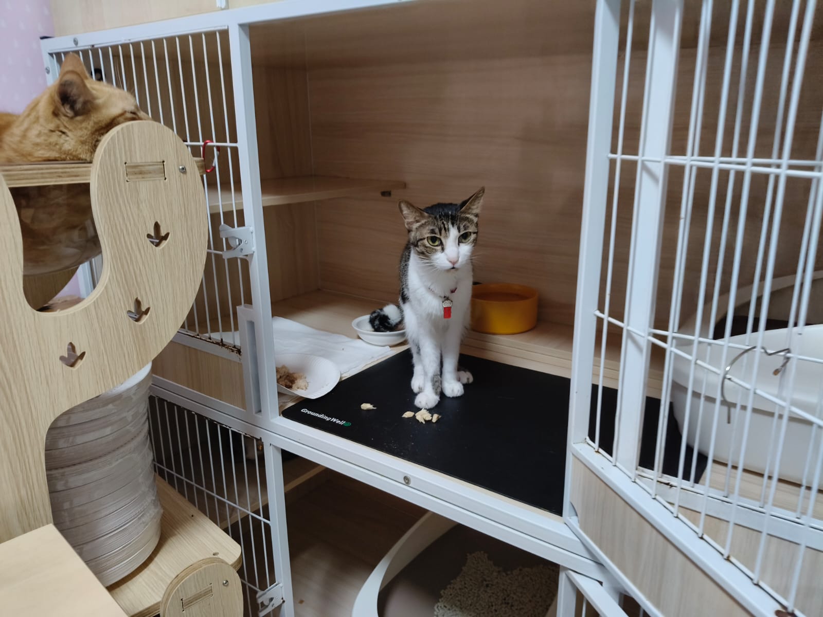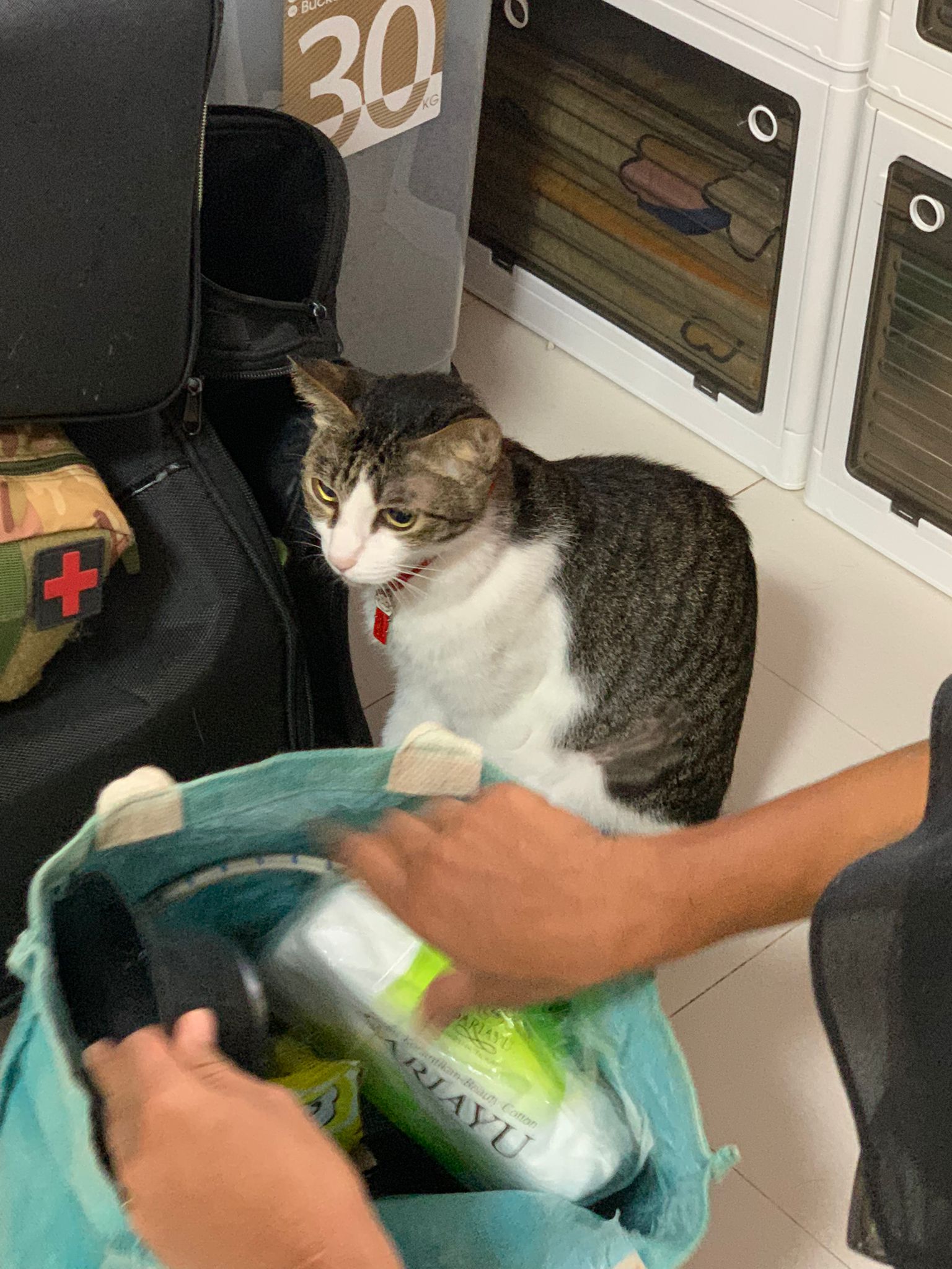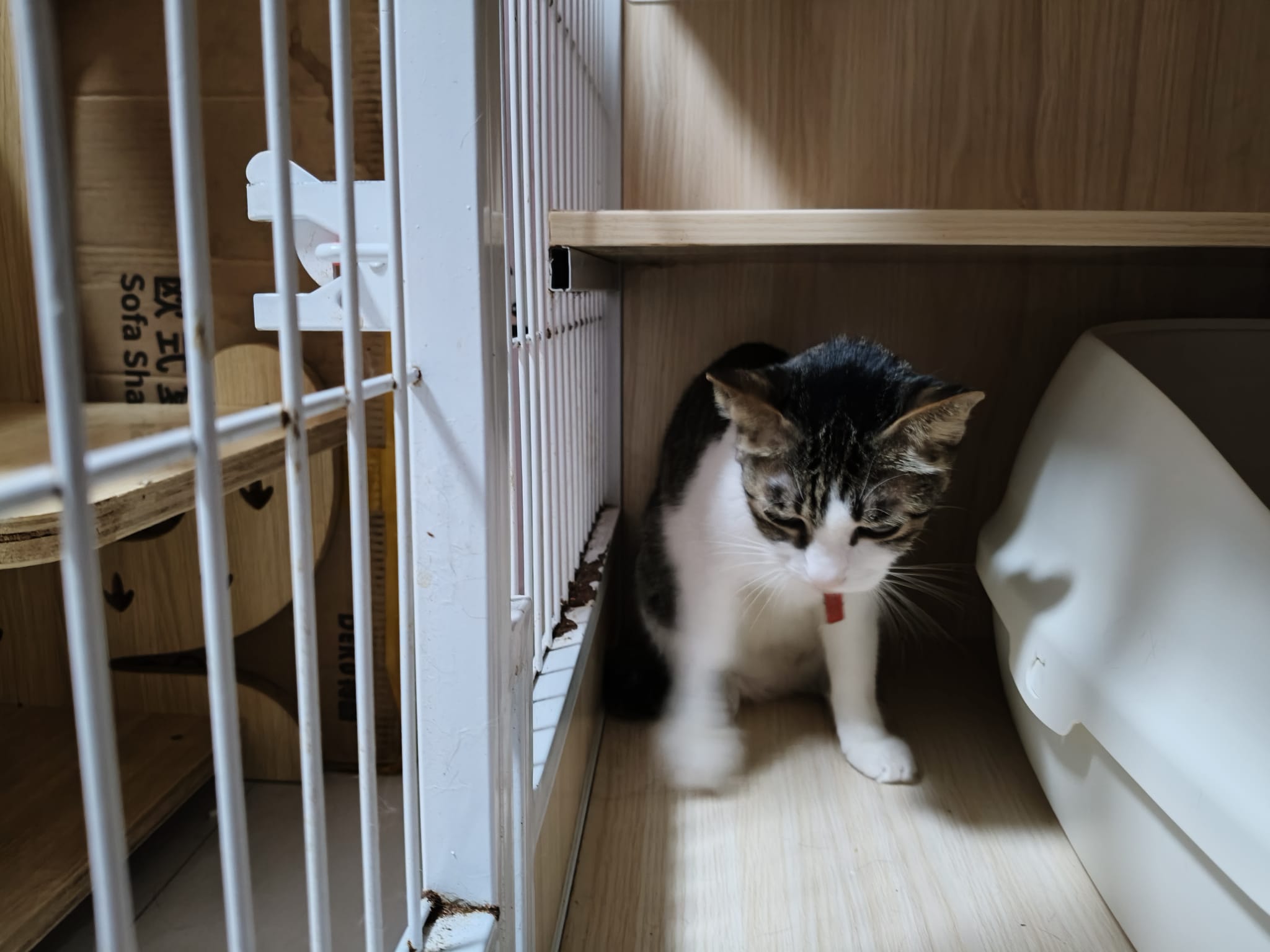 3.30pm+: i added new teabreak slot for the cats so that the critical one someone is there to check latest status and sayang. Jo photo show Peepad in cage i ask her why:”Coz he keep laying in the bin so I put pee pad for him to rest there” – then the video seem like ah boy got a tape on his tummy? Did they try to tap him just now?