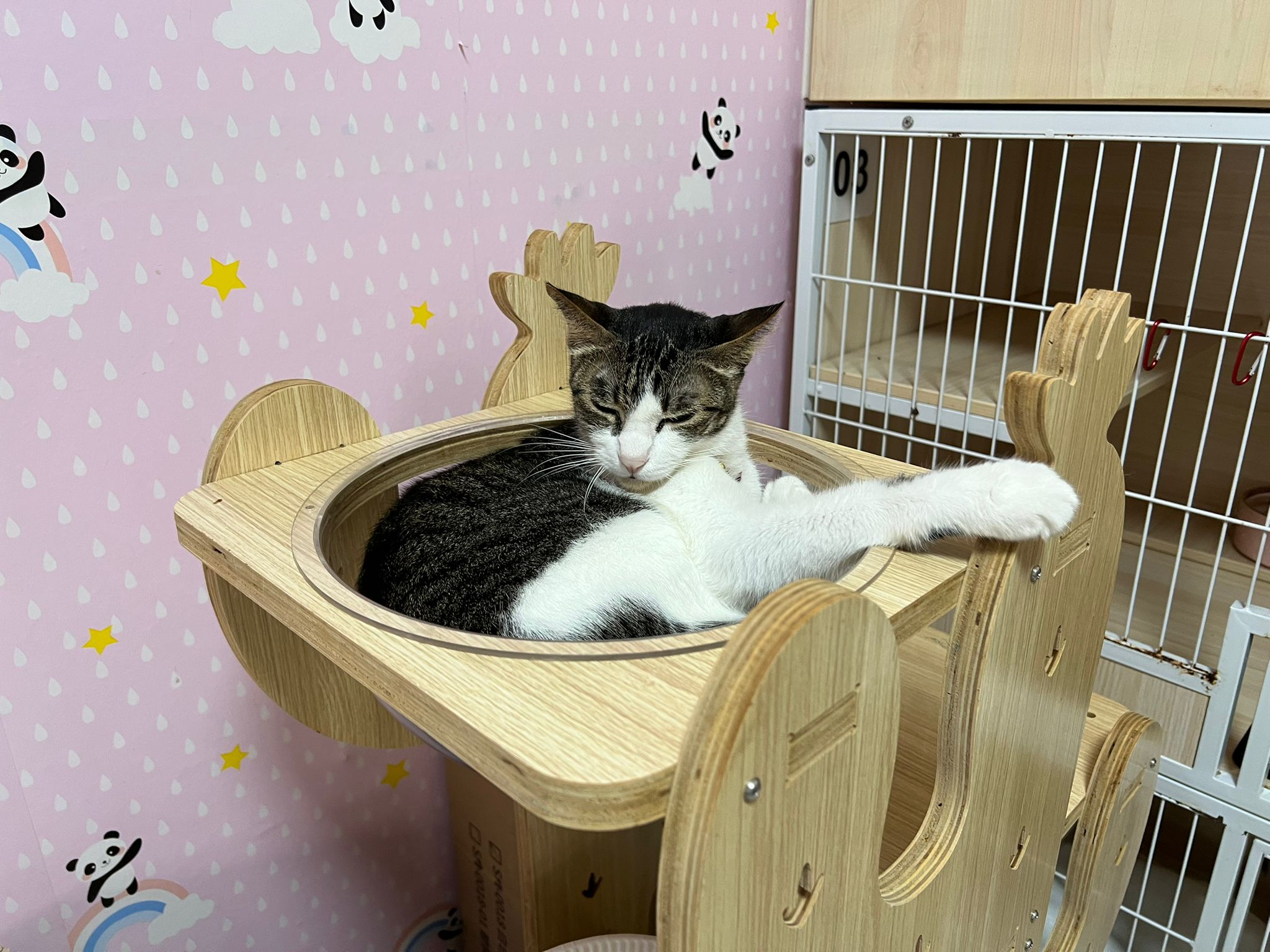 Back to 猫房. Everyone welcome him. Even Bessie go kiss him. So many kisses sure HCT go up. Given bupre Clav YNBY and doxy.