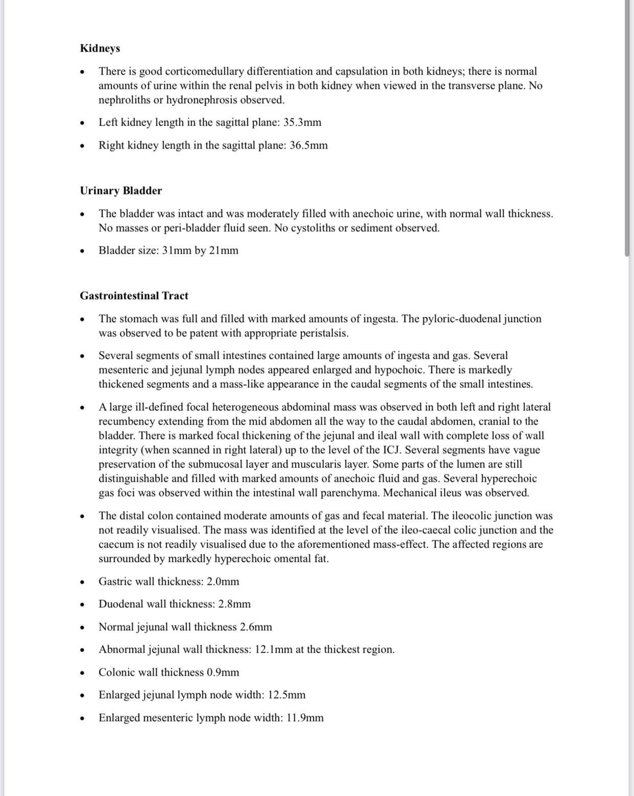 Just gather factual info while still waiting for report: “there is no free fluid in the abdomen, but there is a fluid accumulation with in the mass.”