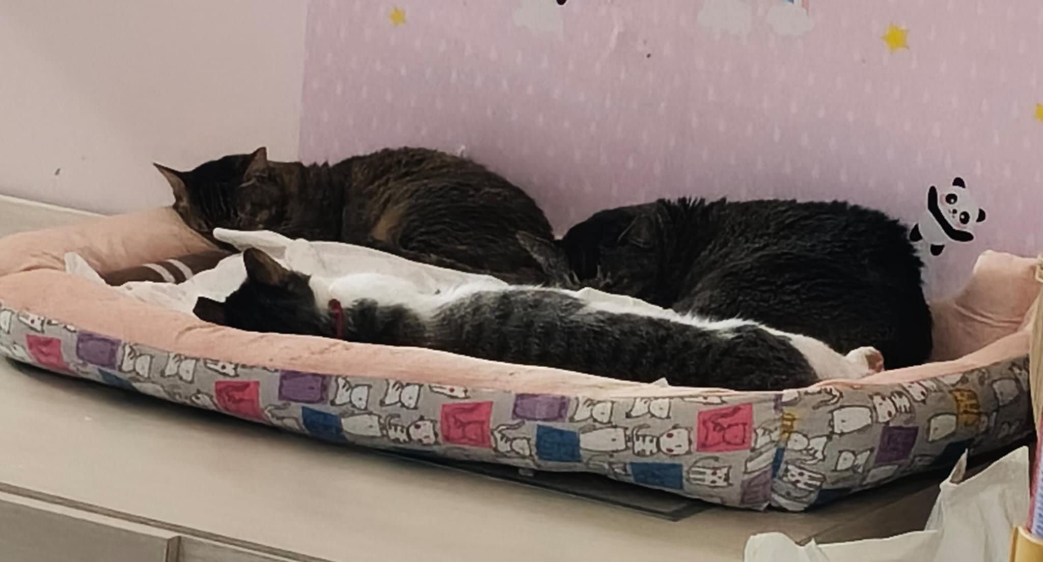 Backlog yesterday I had given ah boy fercosang jab. Play safe in case. Fri check his Cbc. 11.06pm; ah boy sleeping flatly w sena N Jack in pink bed.