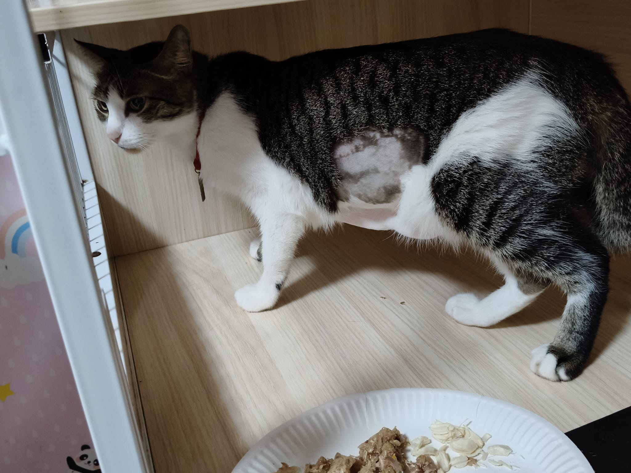 Morning: conserving his energy. Will come out when I distributing chicken treats. 3.28kg – gain 80g in 4 days. told him slow and steady smart boy. Given bupre Clav, doxy and YNBY. Still think maybe should get a tcm opinion. Sigh dr Pauline don’t even reply. Fine. I can’t anyhow start stasis breaker on boy, but I can start weiqi booster on him. Will add on that for him Tmr.