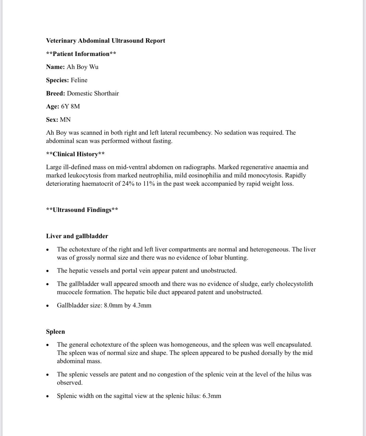 10am+: otw to hs for tcm Opinion: dr d reply after seeing the u/s report: “I still don’t really see an explanation for the low hct, unless his poo been black and loosing through stools?