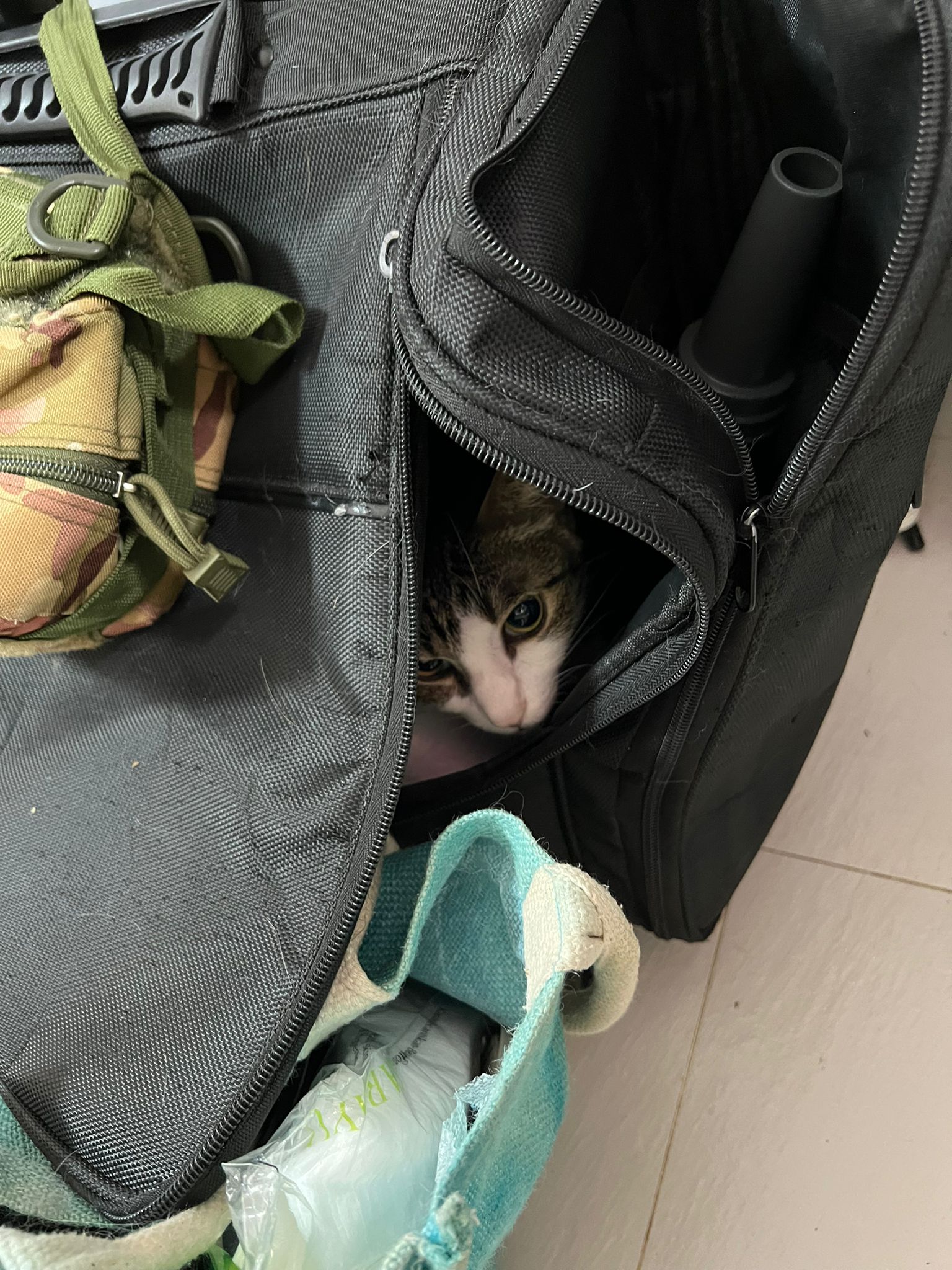 3.20pm: go n rest and hide in groomer bag. Let him be