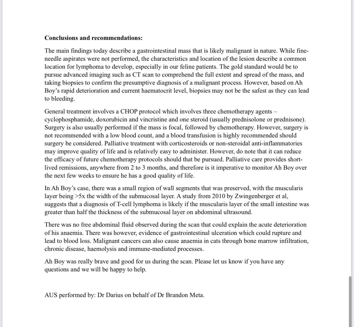 12.15pm: info change. Shave more of his left fur and now say can find his left kidney, shape look good n normal. Says is lymphoma. Most prob it started in the intestine, n spread out and surround it. It – aka the connecting part of small and large intestine. N his blood loss is into the mass itself. Now it become operable.