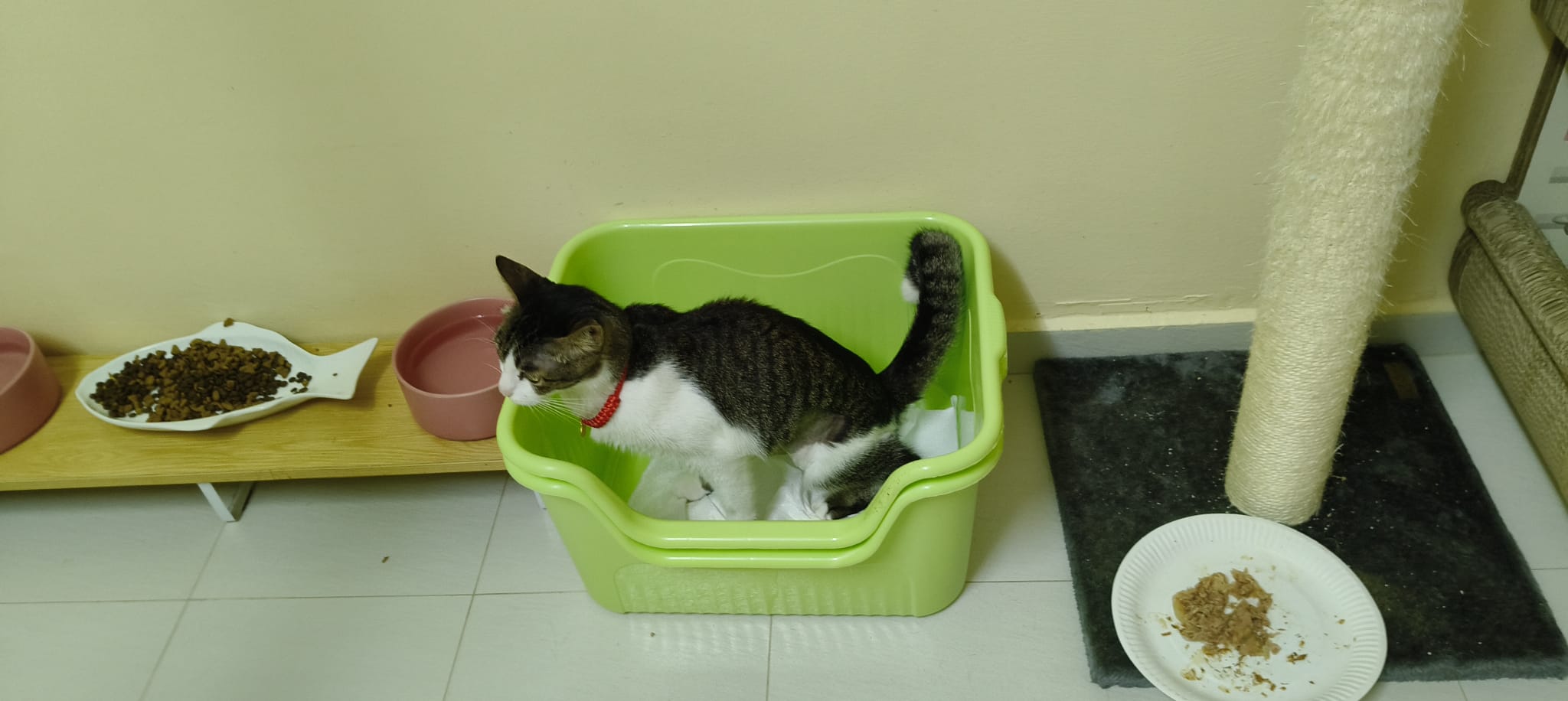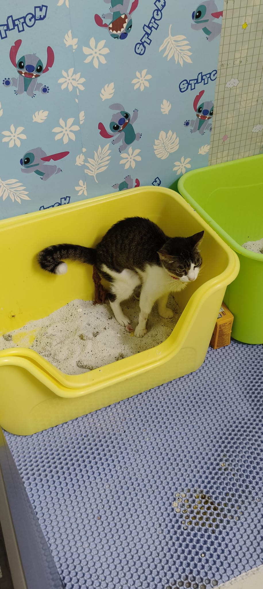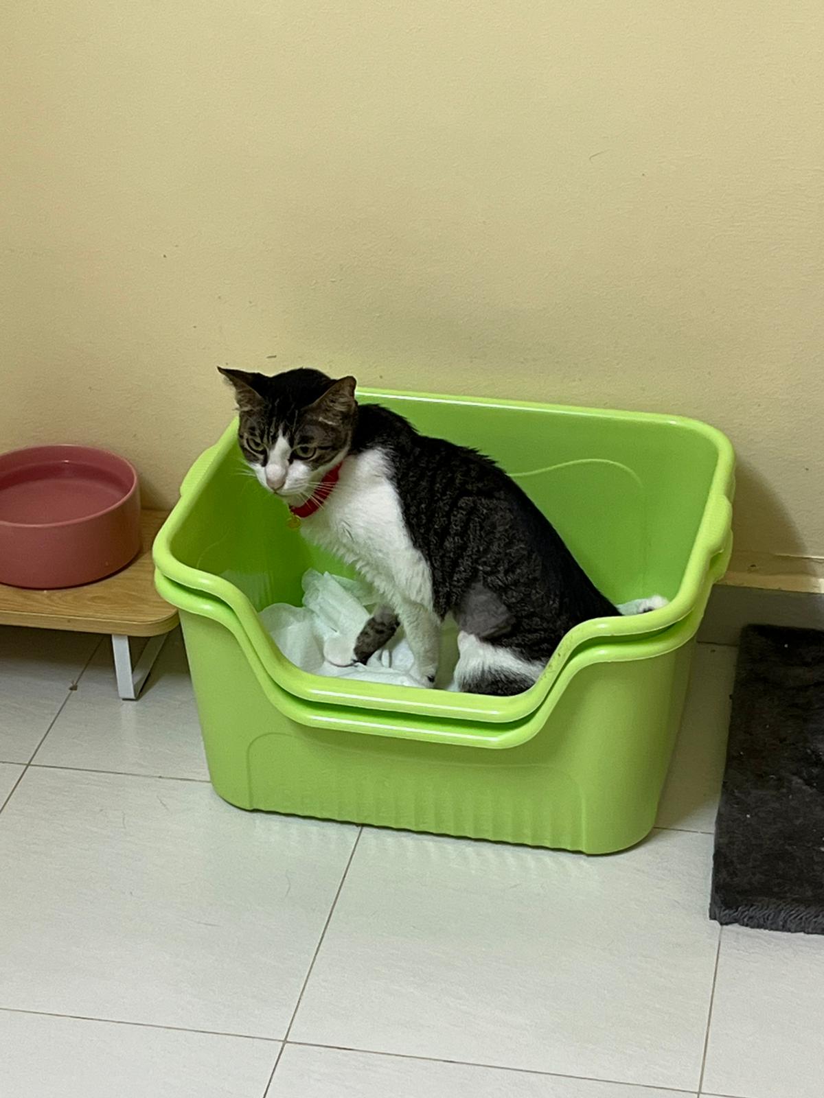 Morning: 2.77kg – lose 200g in 3 days. Didn’t see him eat cos today major cleaning. He just go multiple bins to pee blood. I set up the sb lounge and sena love that all along, and she test w ah boy. Staff nurse help to take care of him.