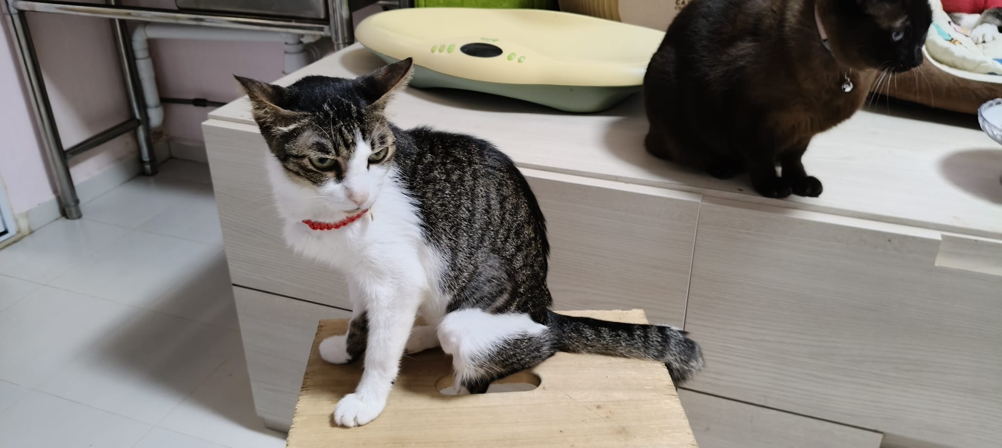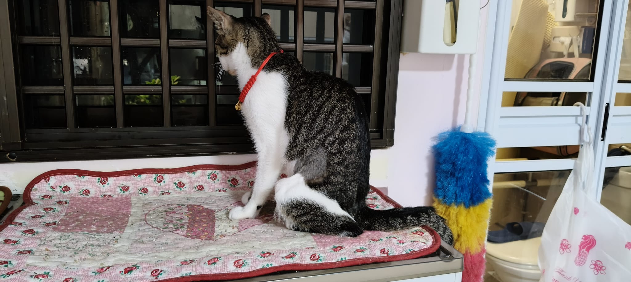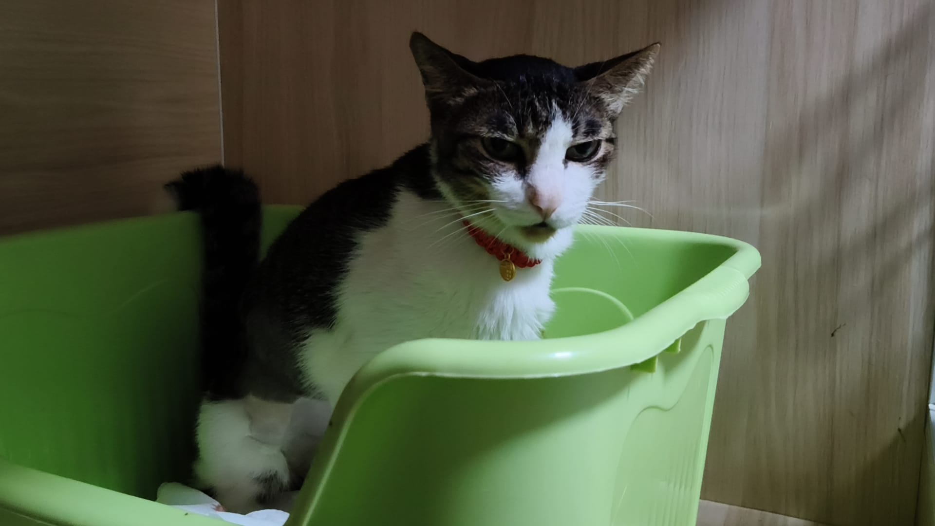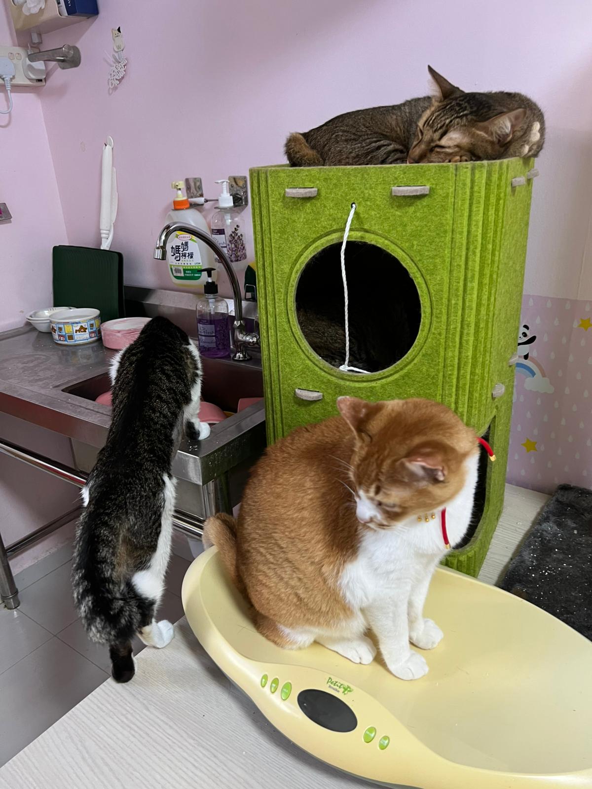 Morning: 2.77kg – lose 200g in 3 days. Didn’t see him eat cos today major cleaning. He just go multiple bins to pee blood. I set up the sb lounge and sena love that all along, and she test w ah boy. Staff nurse help to take care of him.