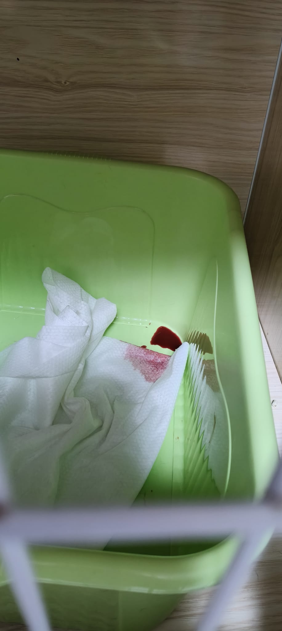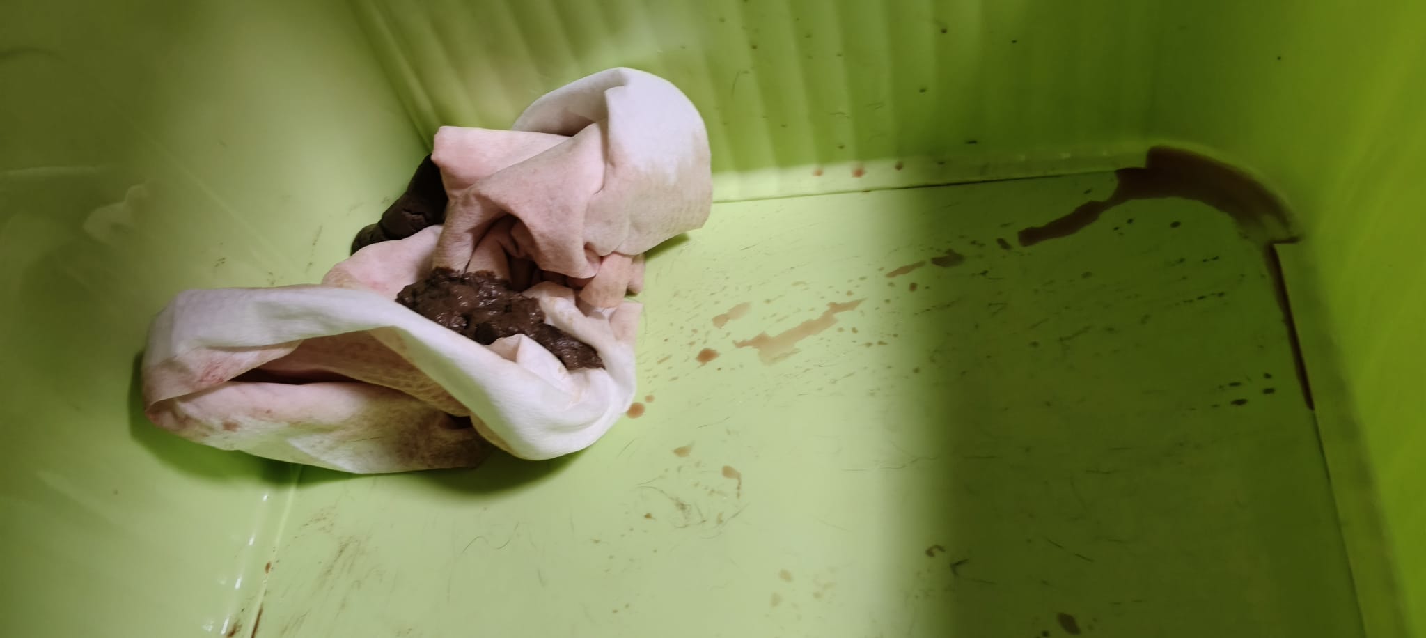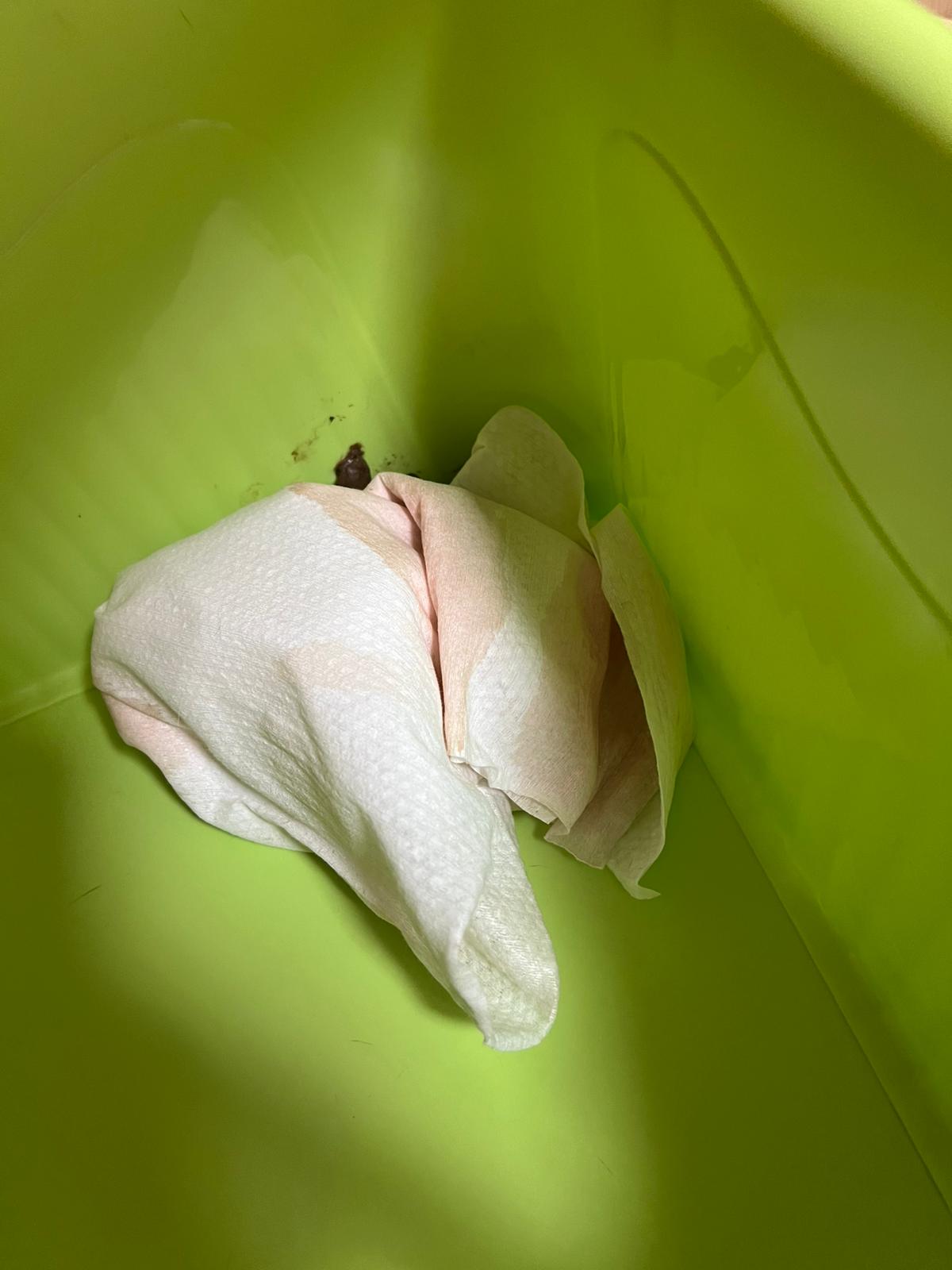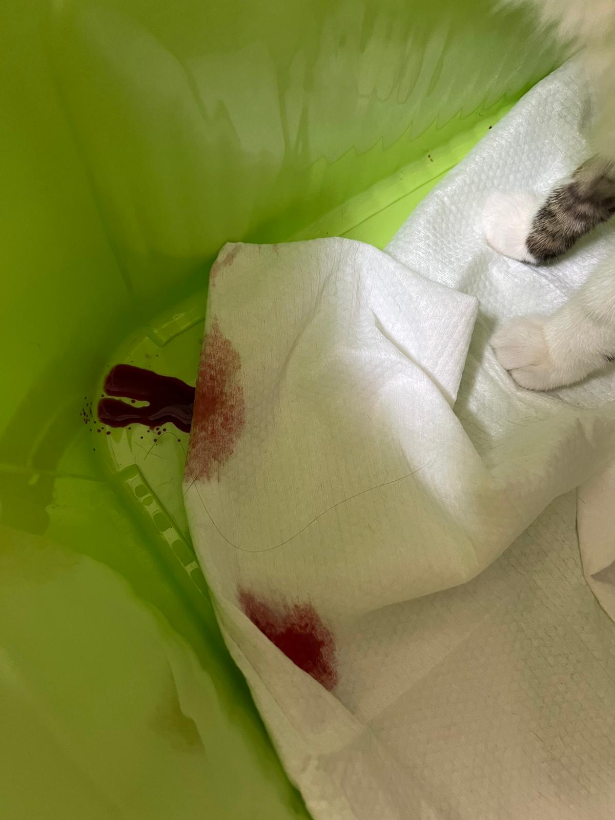 10am: I’m in and let ah boy roam alr saw him in a lot of bins. After jo left, I confirm that he go into 4-6 bins w towel and all with bloods. Fresh bloods. Urine in blood.