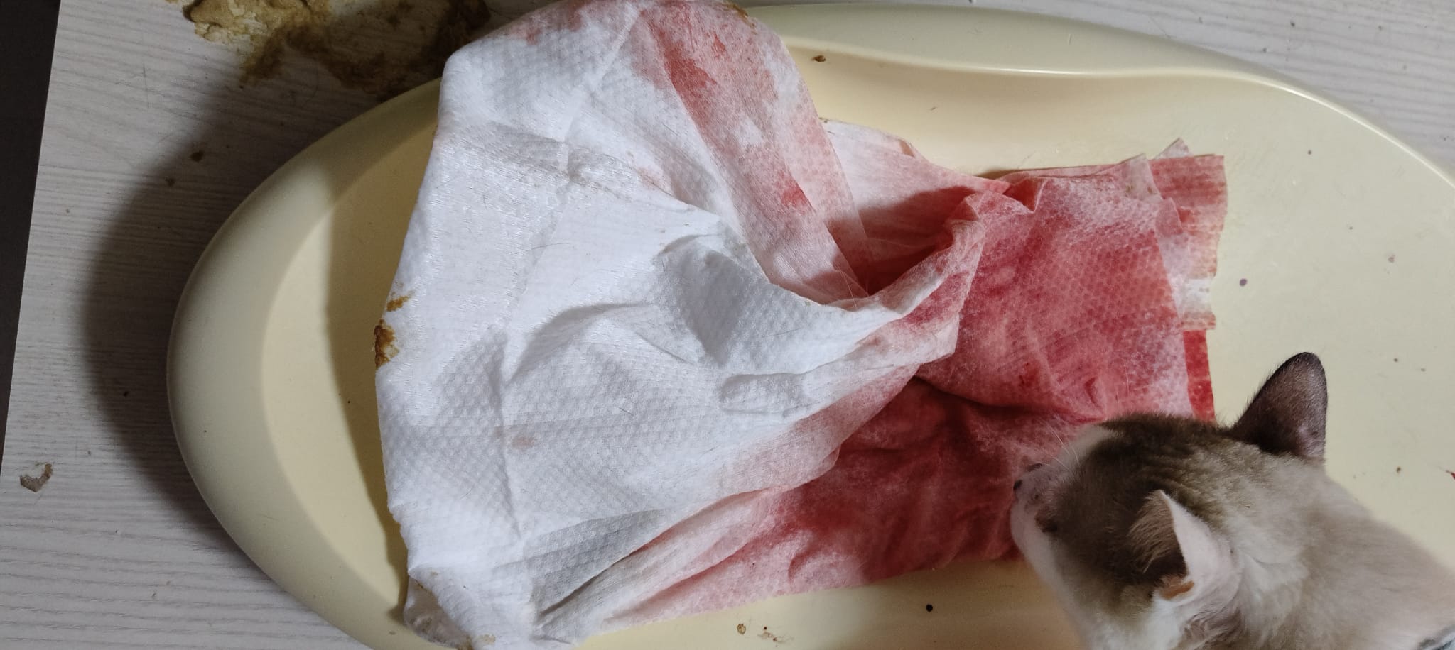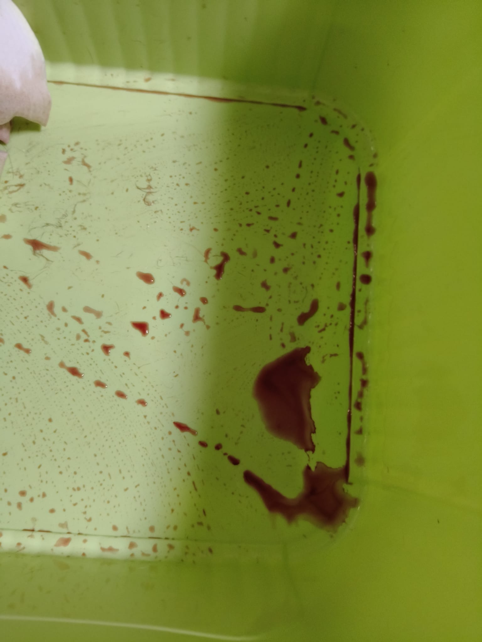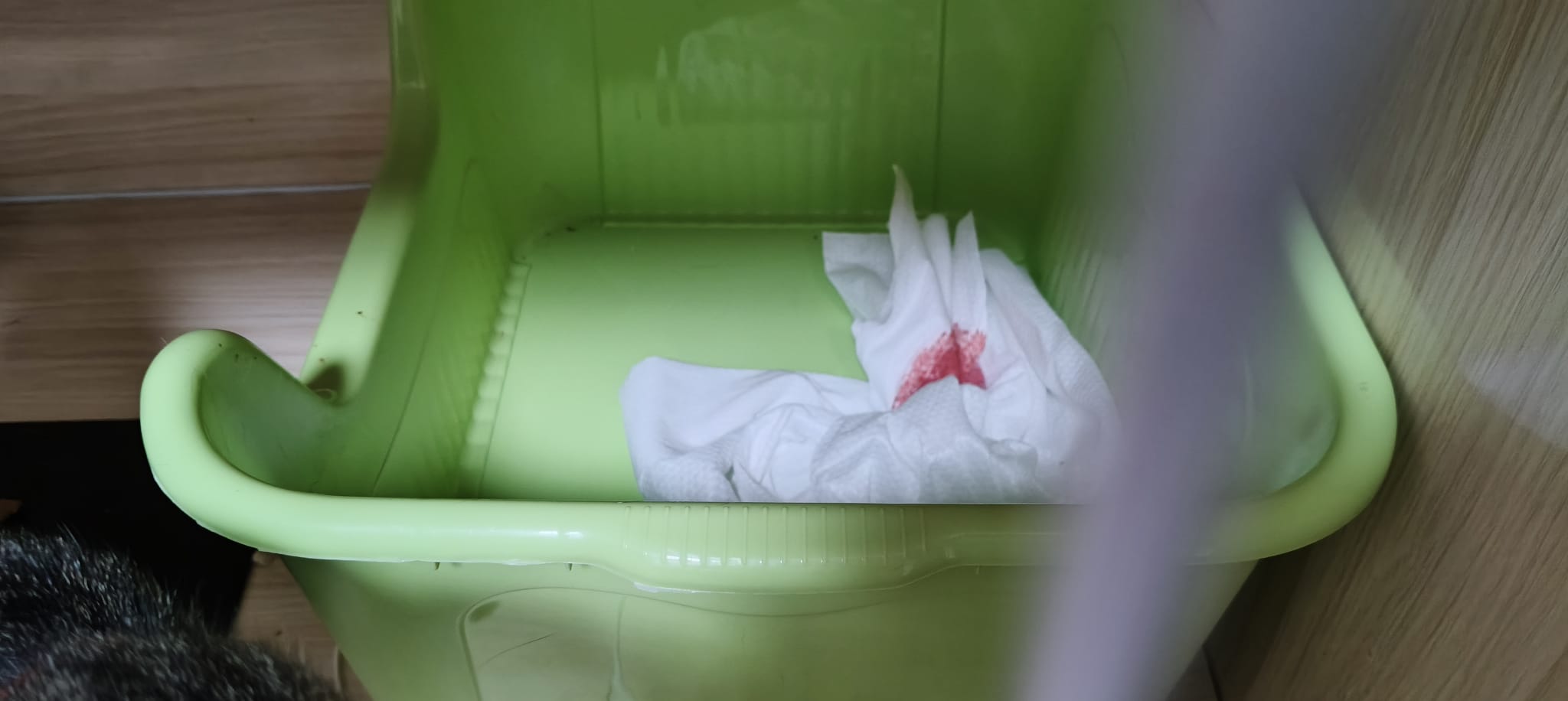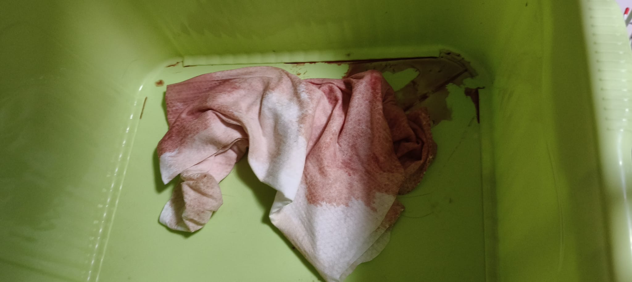 10am: I’m in and let ah boy roam alr saw him in a lot of bins. After jo left, I confirm that he go into 4-6 bins w towel and all with bloods. Fresh bloods. Urine in blood.