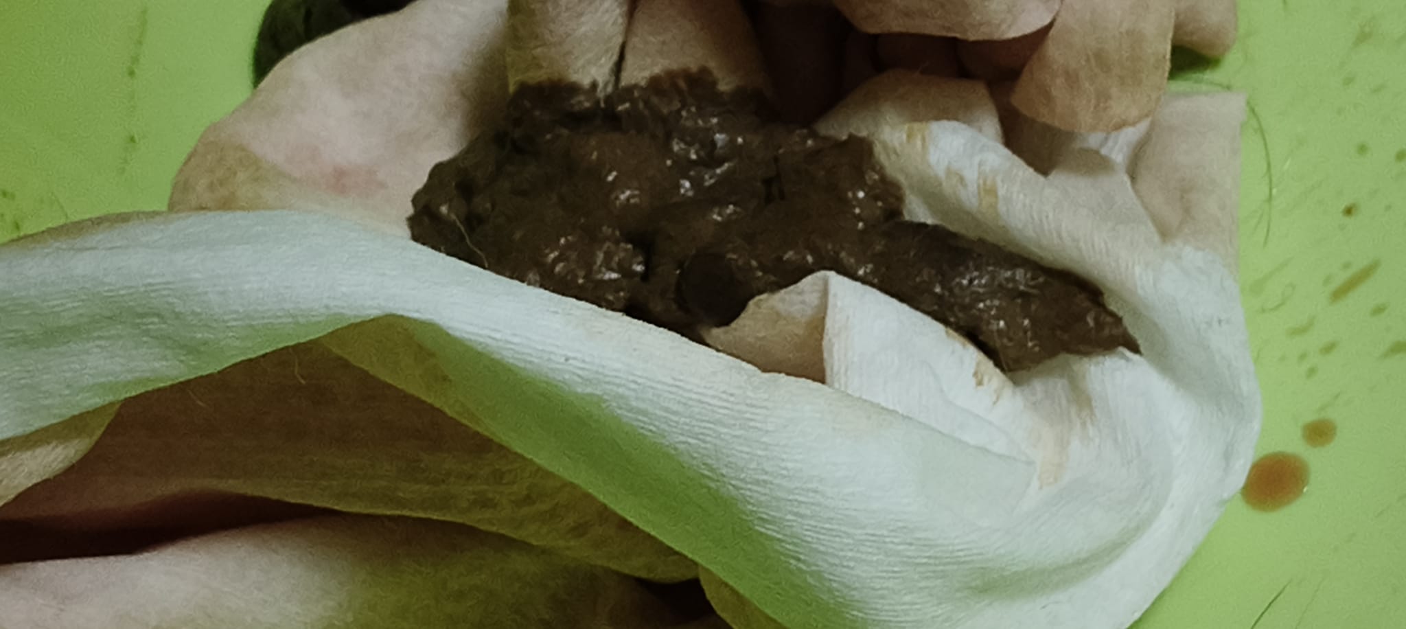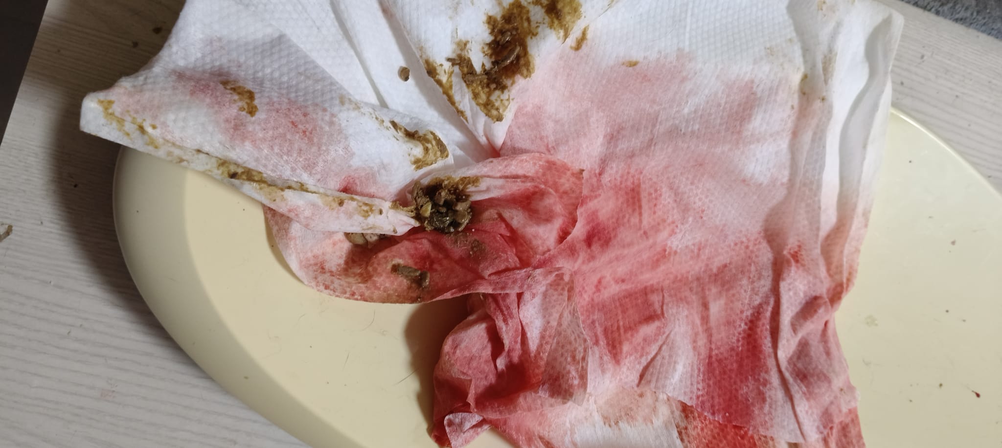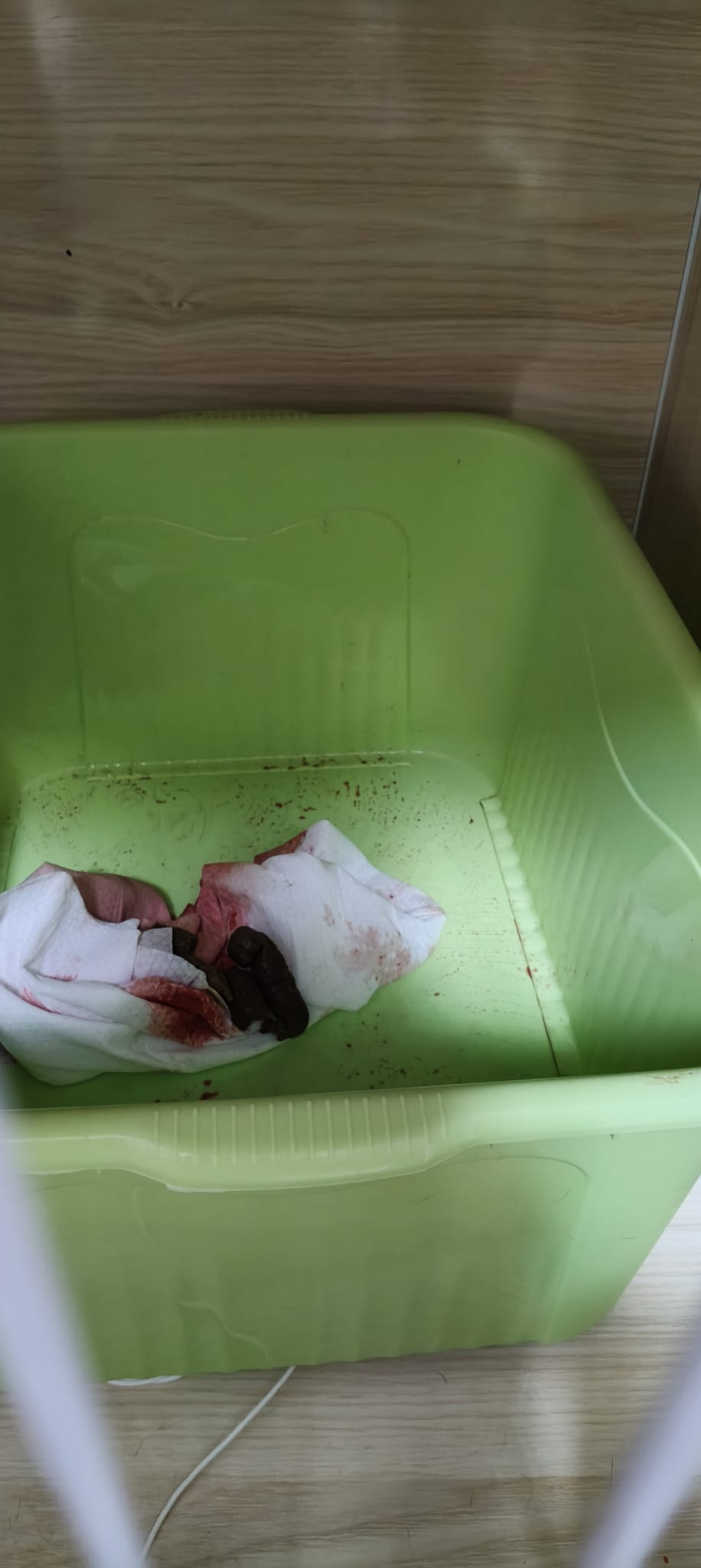 9.50pm: towel lots of pee w bleed, more diluted blood. Poo 2.75/10 + 5/10