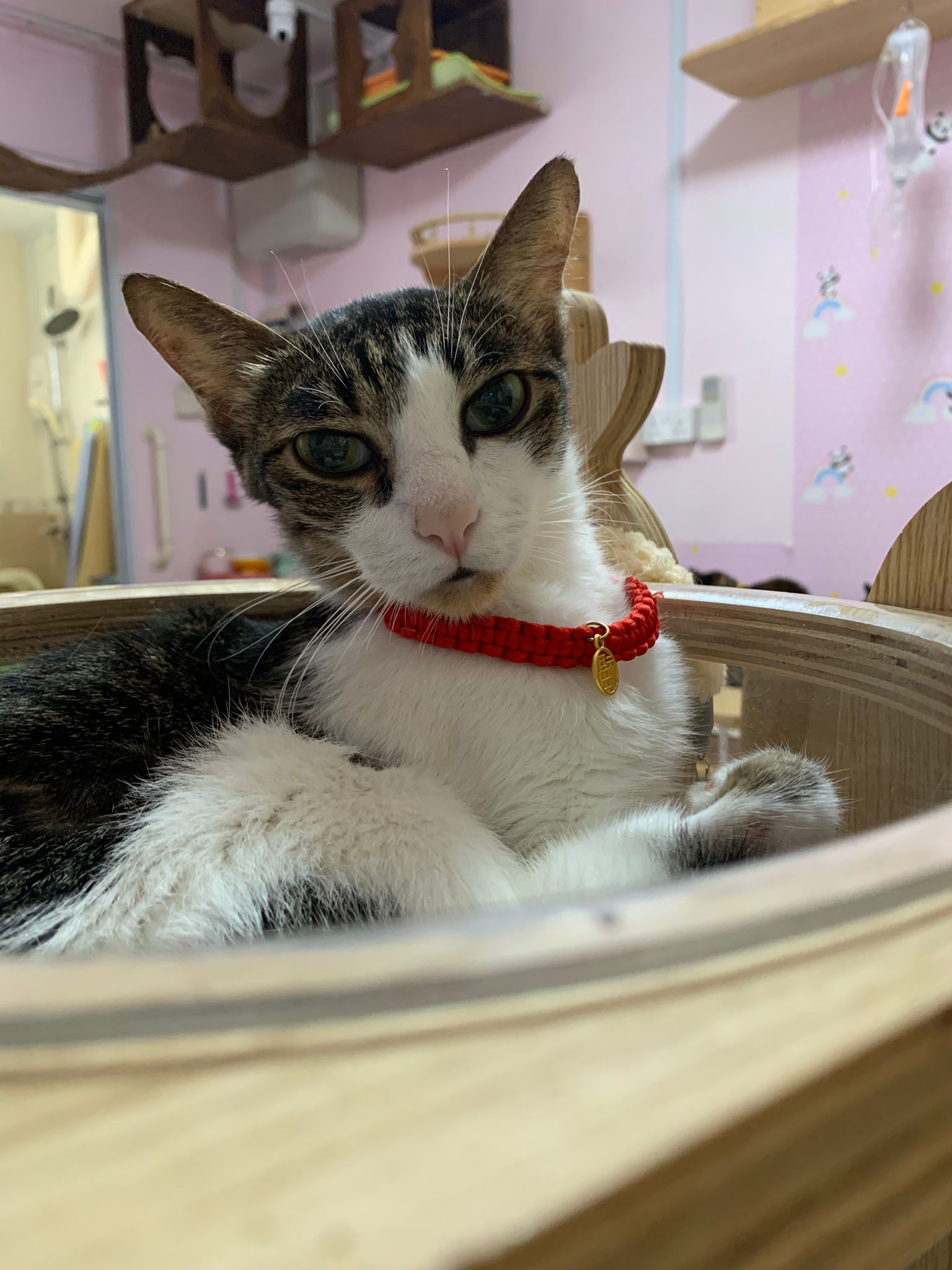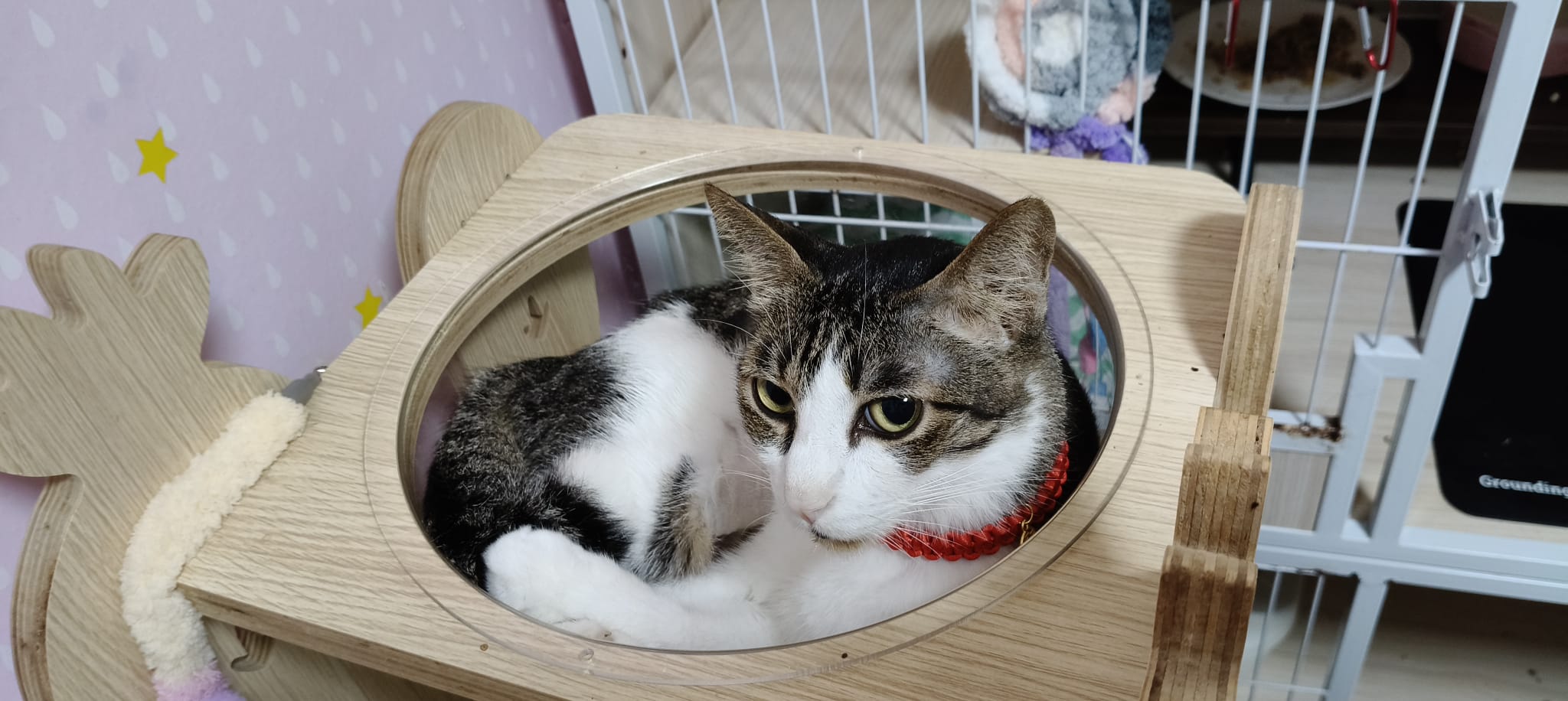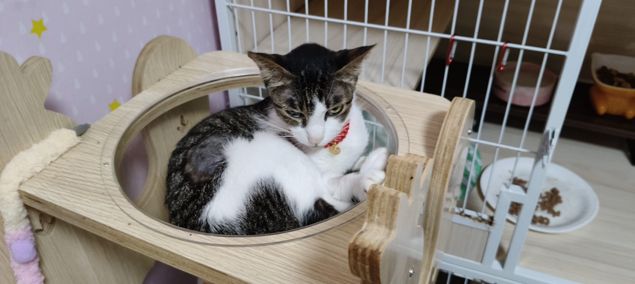 • merge well w 猫房 cats – a lot of bro like him … know how to stay calm in front of non interested sisters