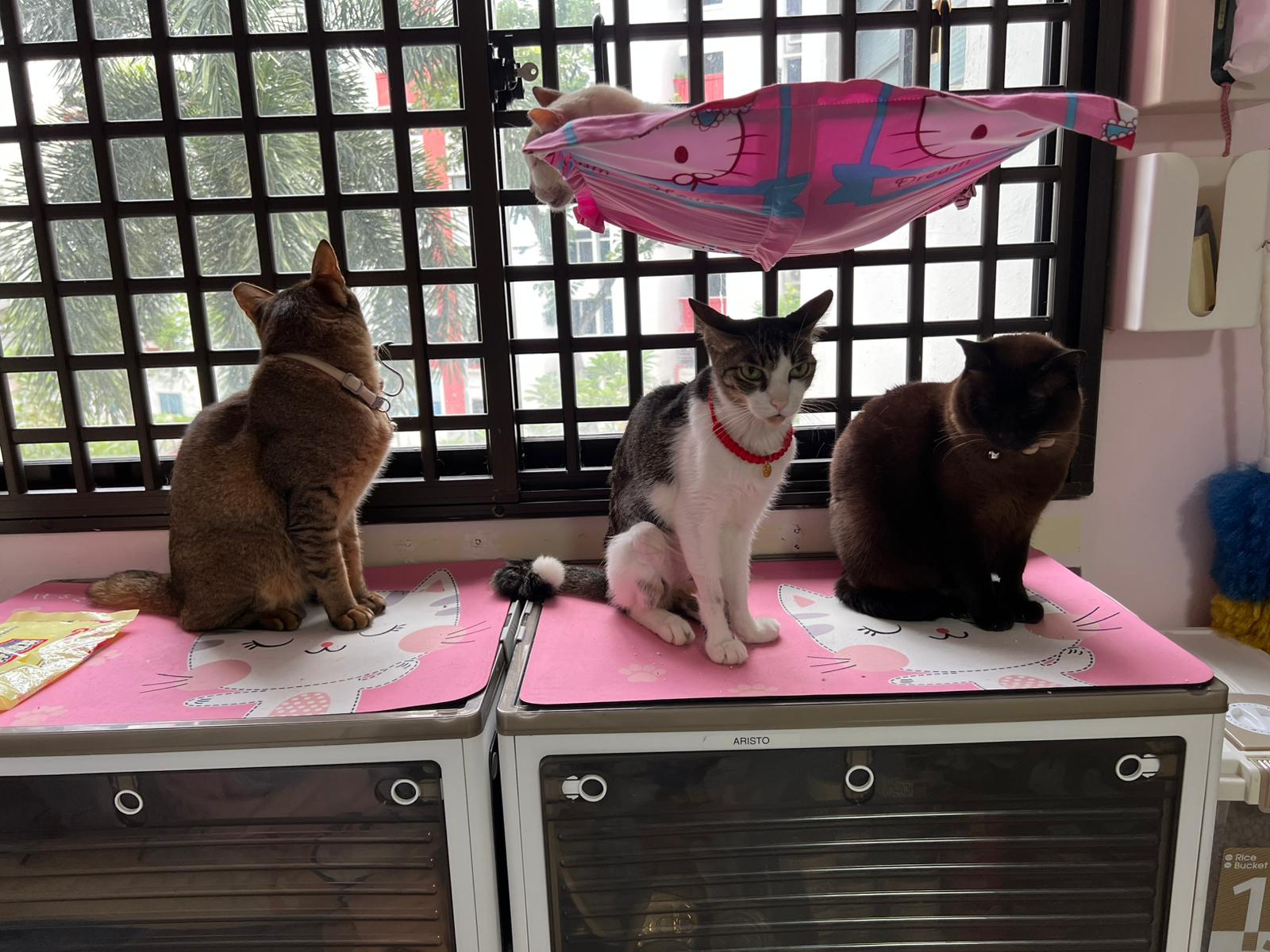 “bring to AD on26. Im otw to james tan to vacc and fiv felv. Two n half months. Rescurer thought is girl, so called mei mei on vaccination card, he is called ah boy now. Deworm done. Only Revo do later. They just give kibble. Adult kibble. Yes he ate some of their adult cat kibbles last night. Last time he ate was 6+am in the morning, in total he ate about 1 big scoop of food. I believe the current kibble we’re on is snappy Tom (my cat loves the little anchovies) Then nv pee or poo yet. Did not eat much. Last night so active also this am in cage”