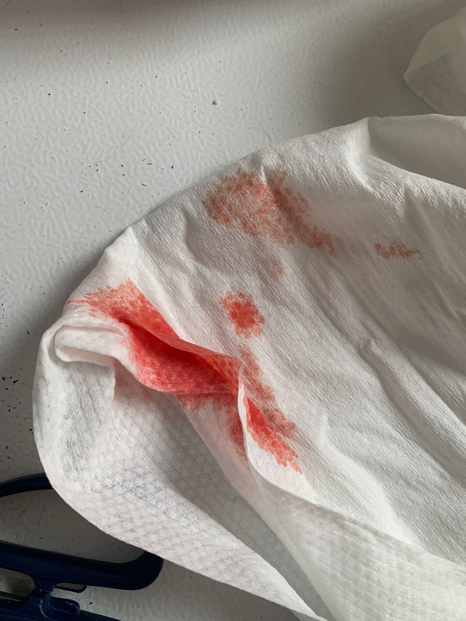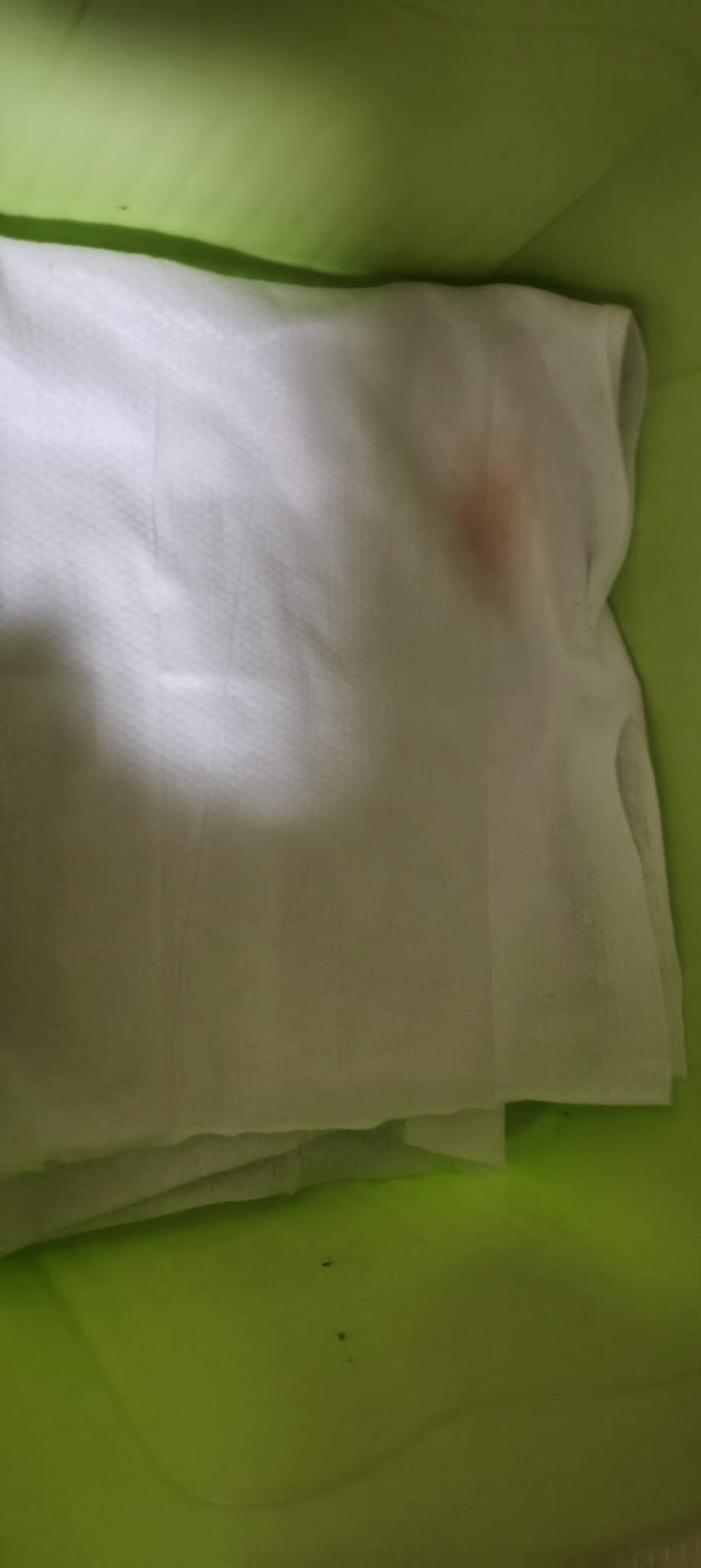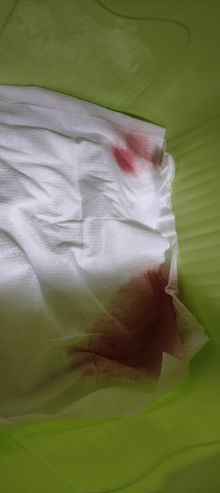 9.46pm; mmm:”This size. Every bin also have. Plus drop on floor” – blood lose confirm is smaller but still bleeding daily la.