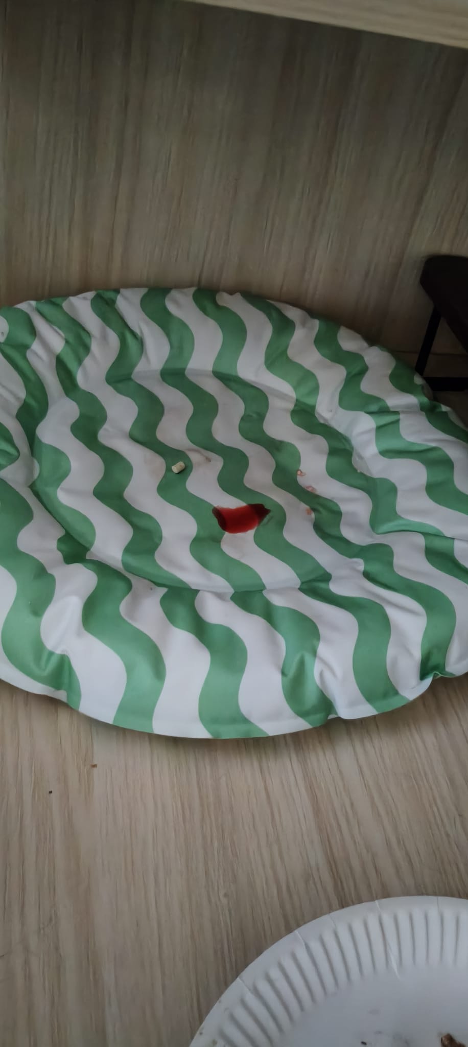 10.01am: jo photo: got poo, and got watermelon water towel. Got finish food