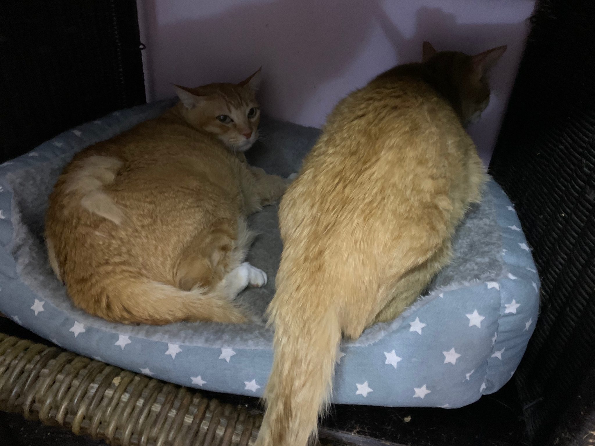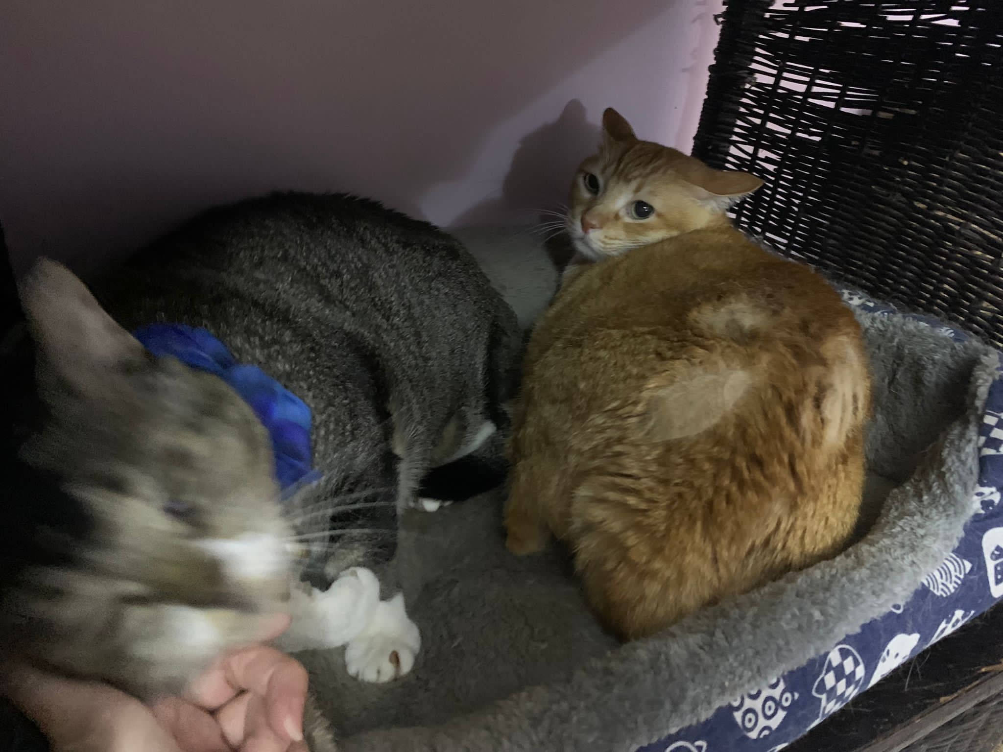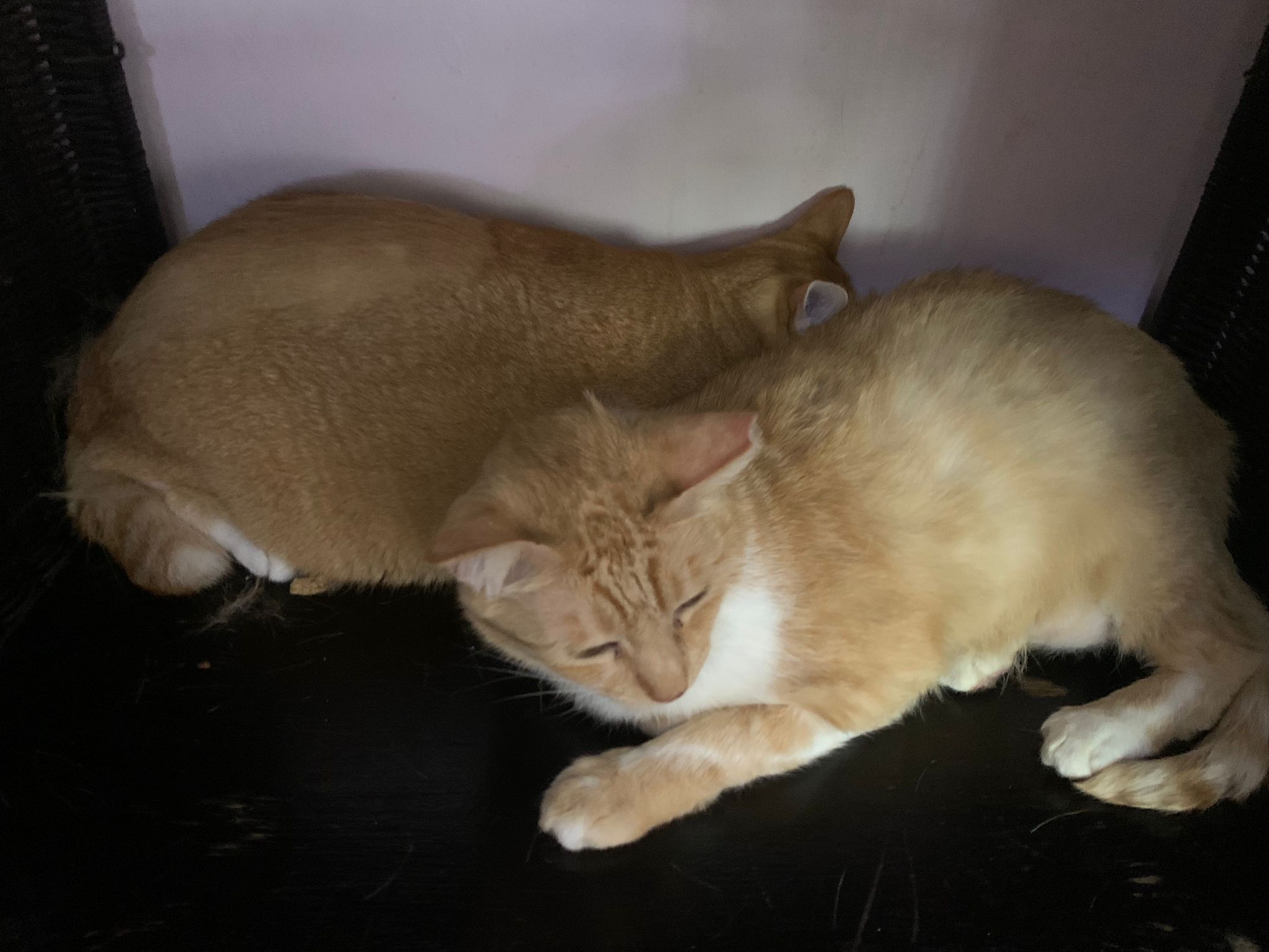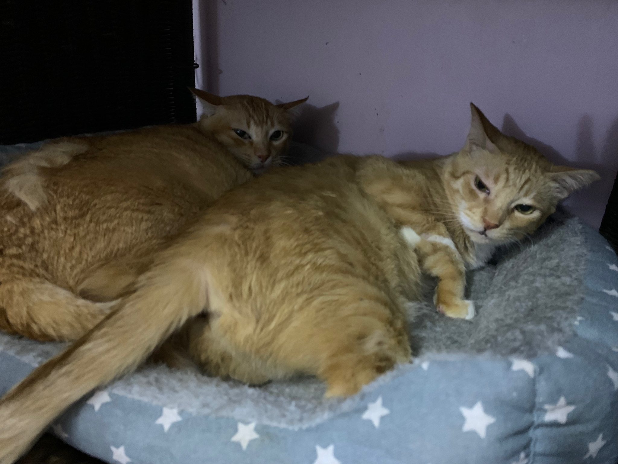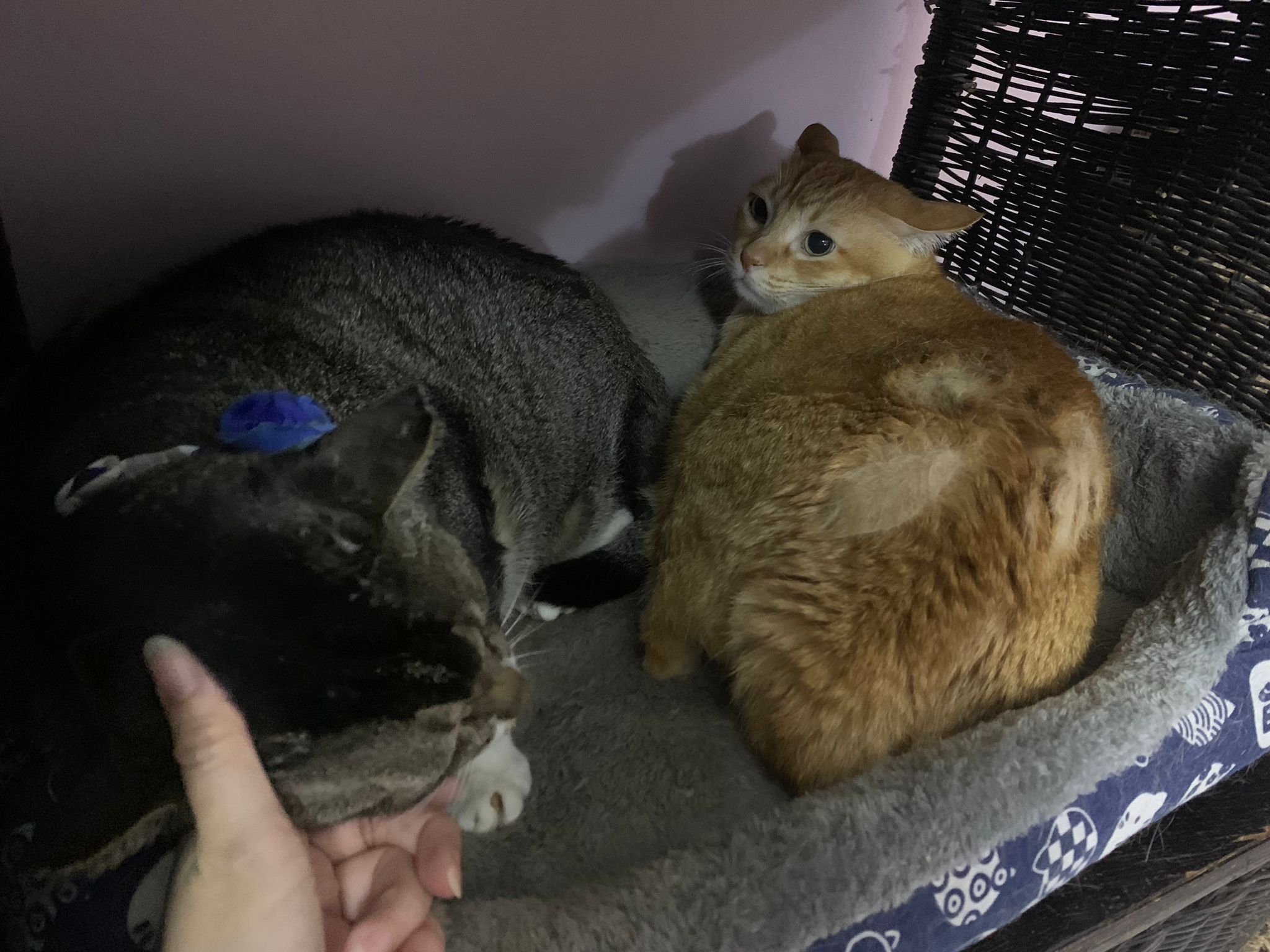 12pm+: ah bee say can come so let him come, amber and #猫房renny sit tgt cos of aircon servicing … take the Chance to sayang both tgt, hope they learn the good stuff from each other – Amber ok w sayang head, I sayang her under chin b4 but rare.