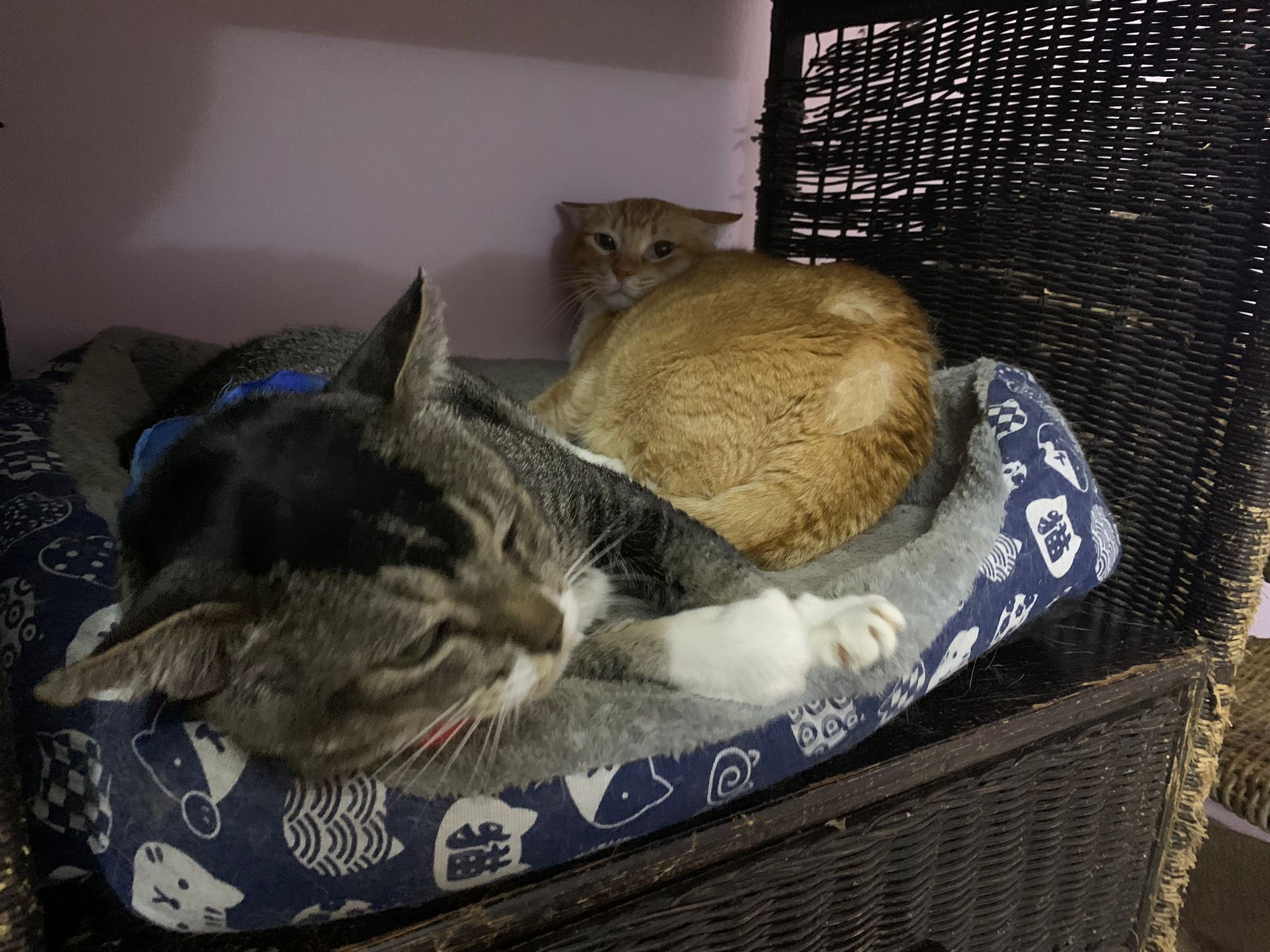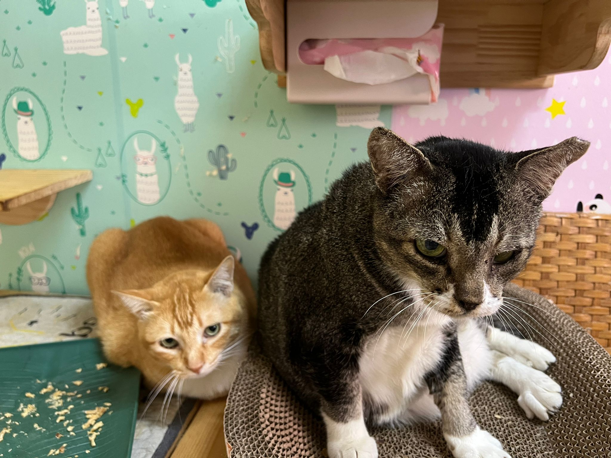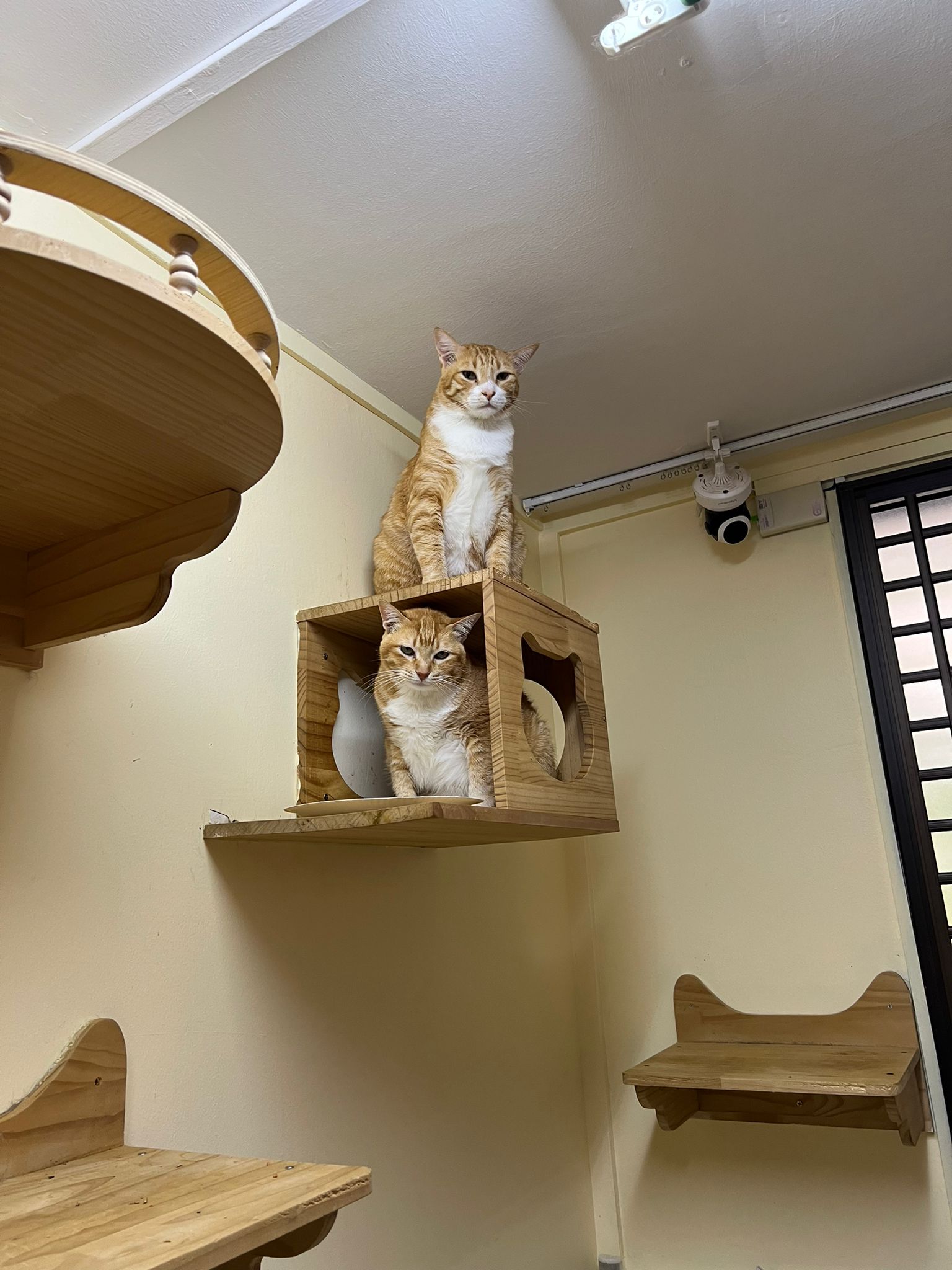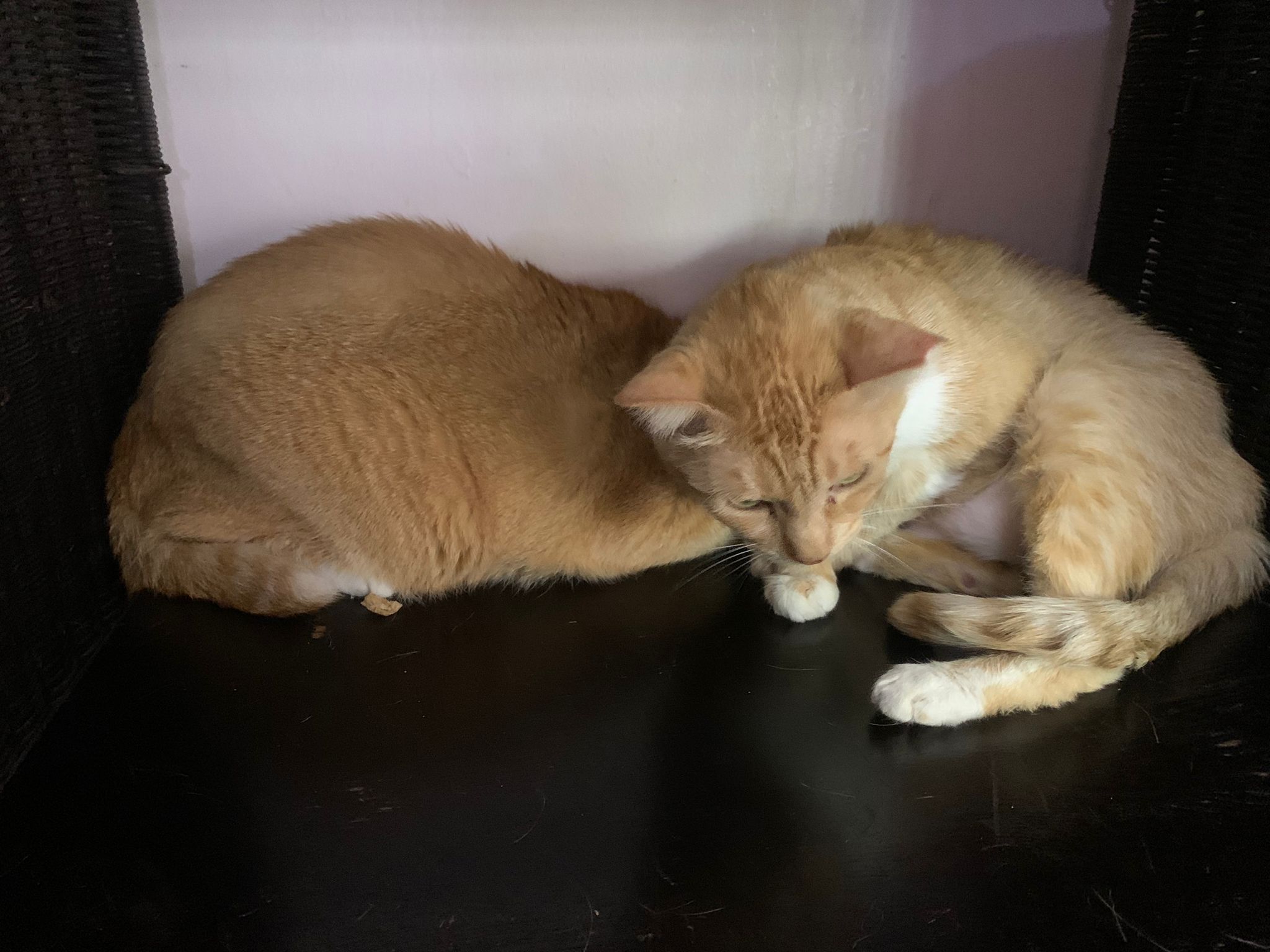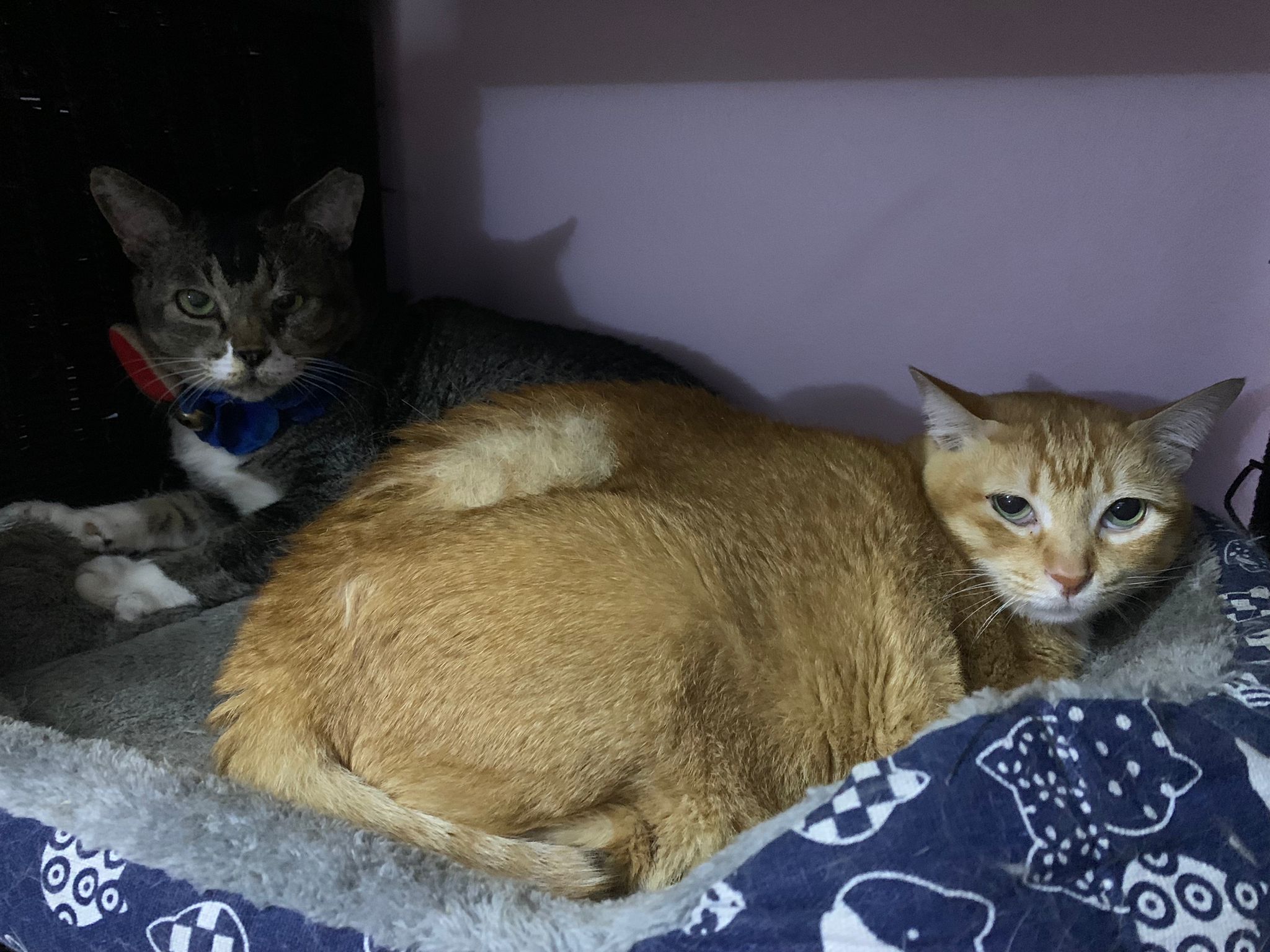 12pm+: ah bee say can come so let him come, amber and #猫房renny sit tgt cos of aircon servicing … take the Chance to sayang both tgt, hope they learn the good stuff from each other – Amber ok w sayang head, I sayang her under chin b4 but rare.