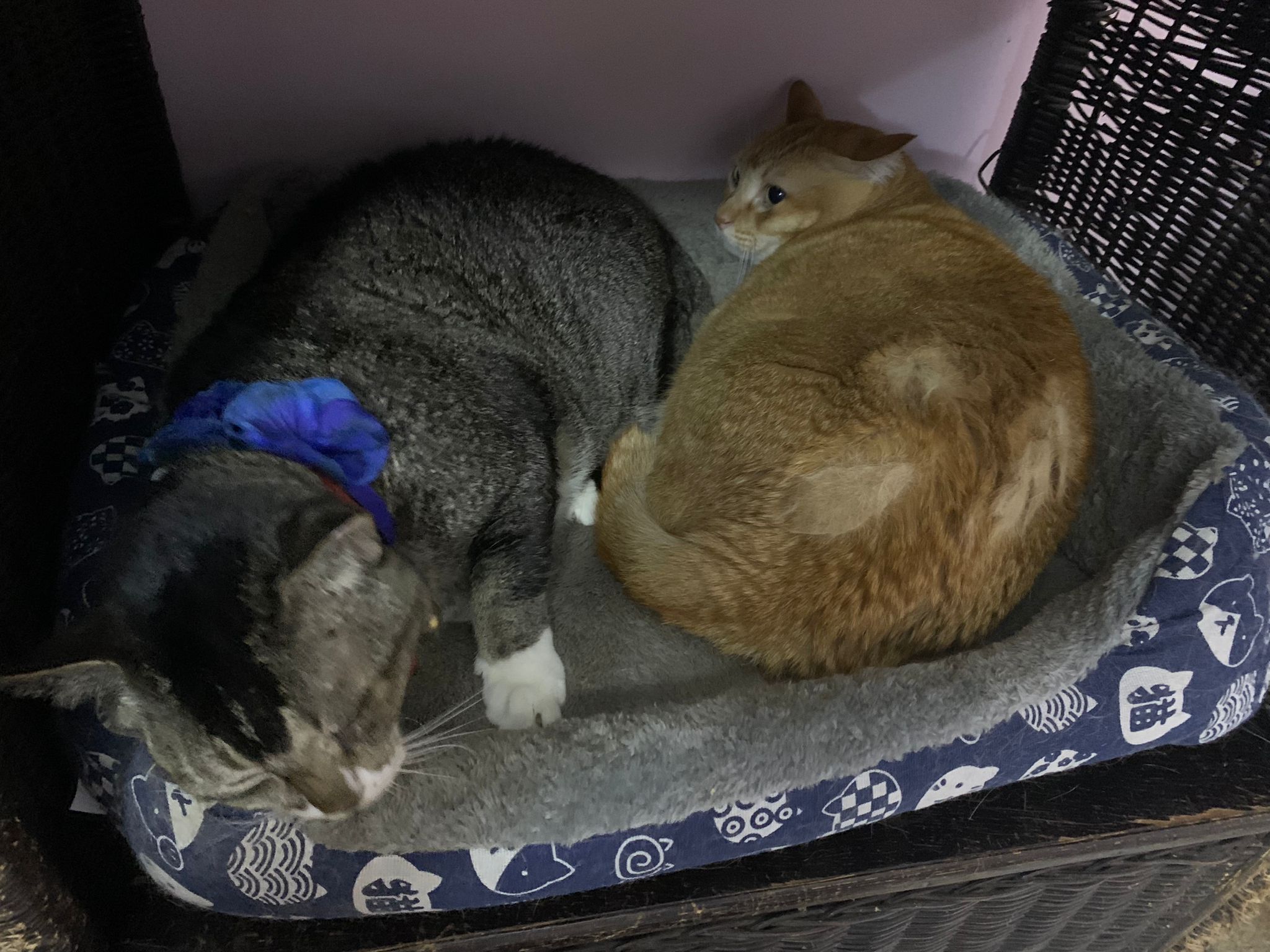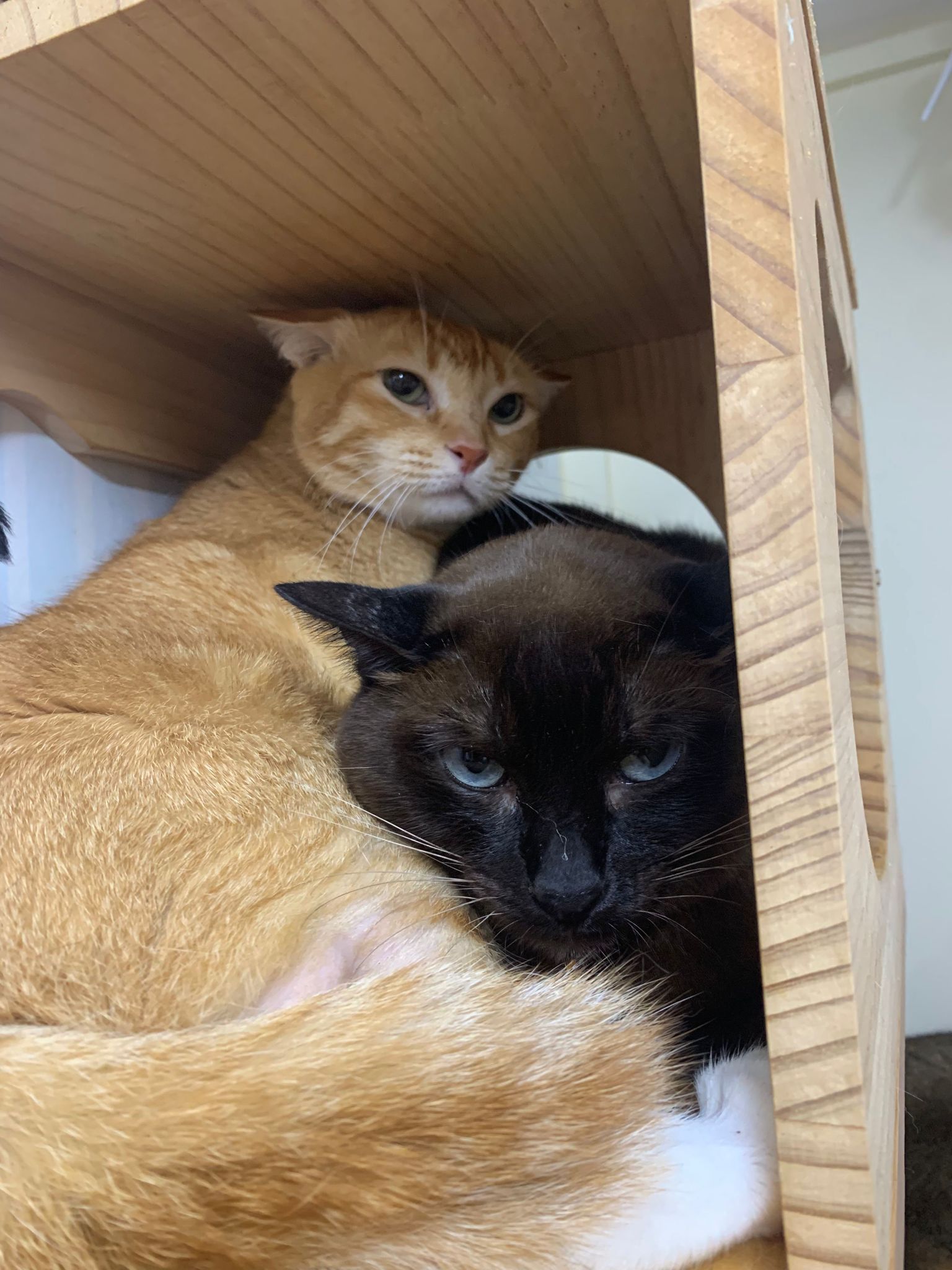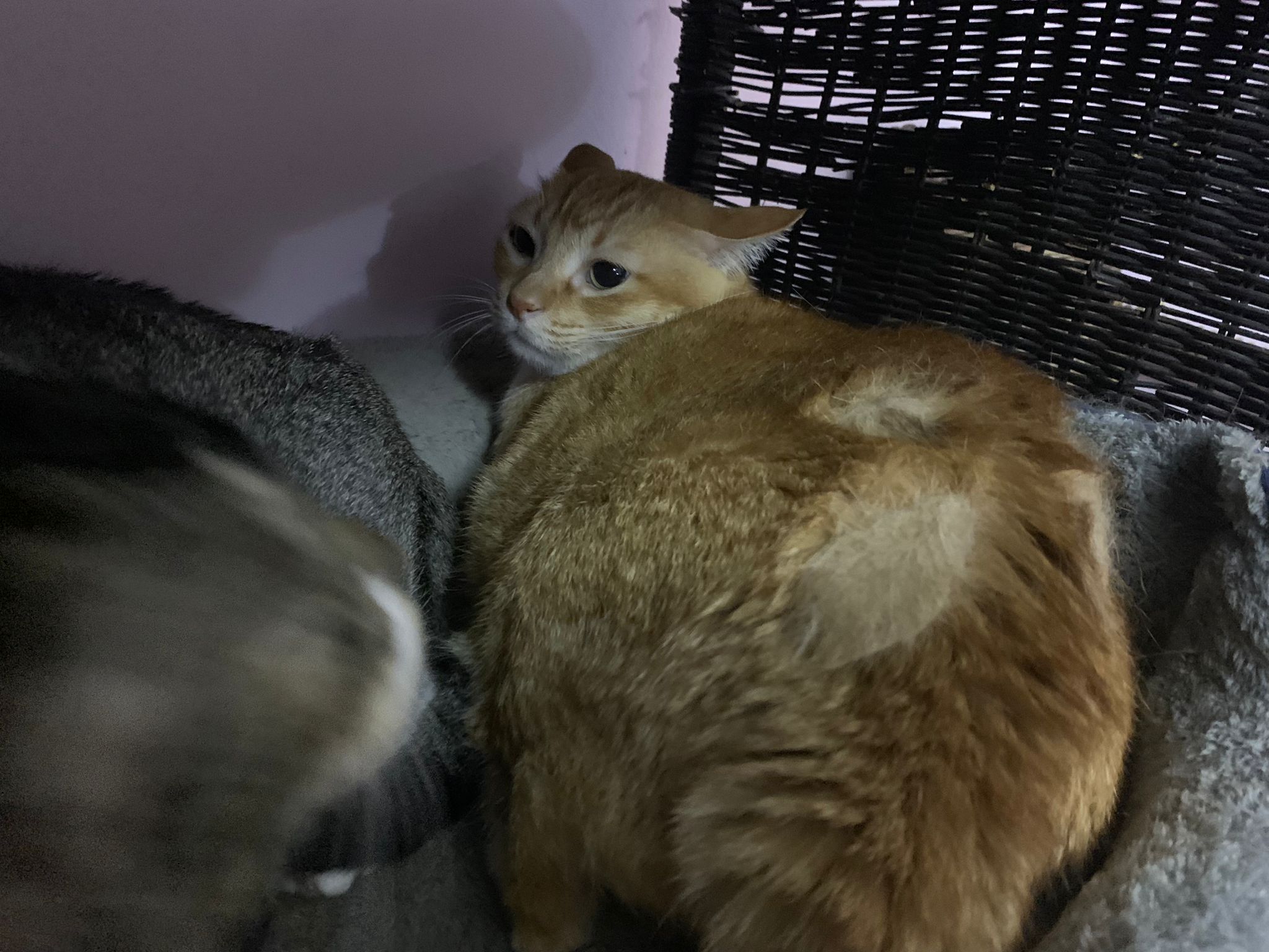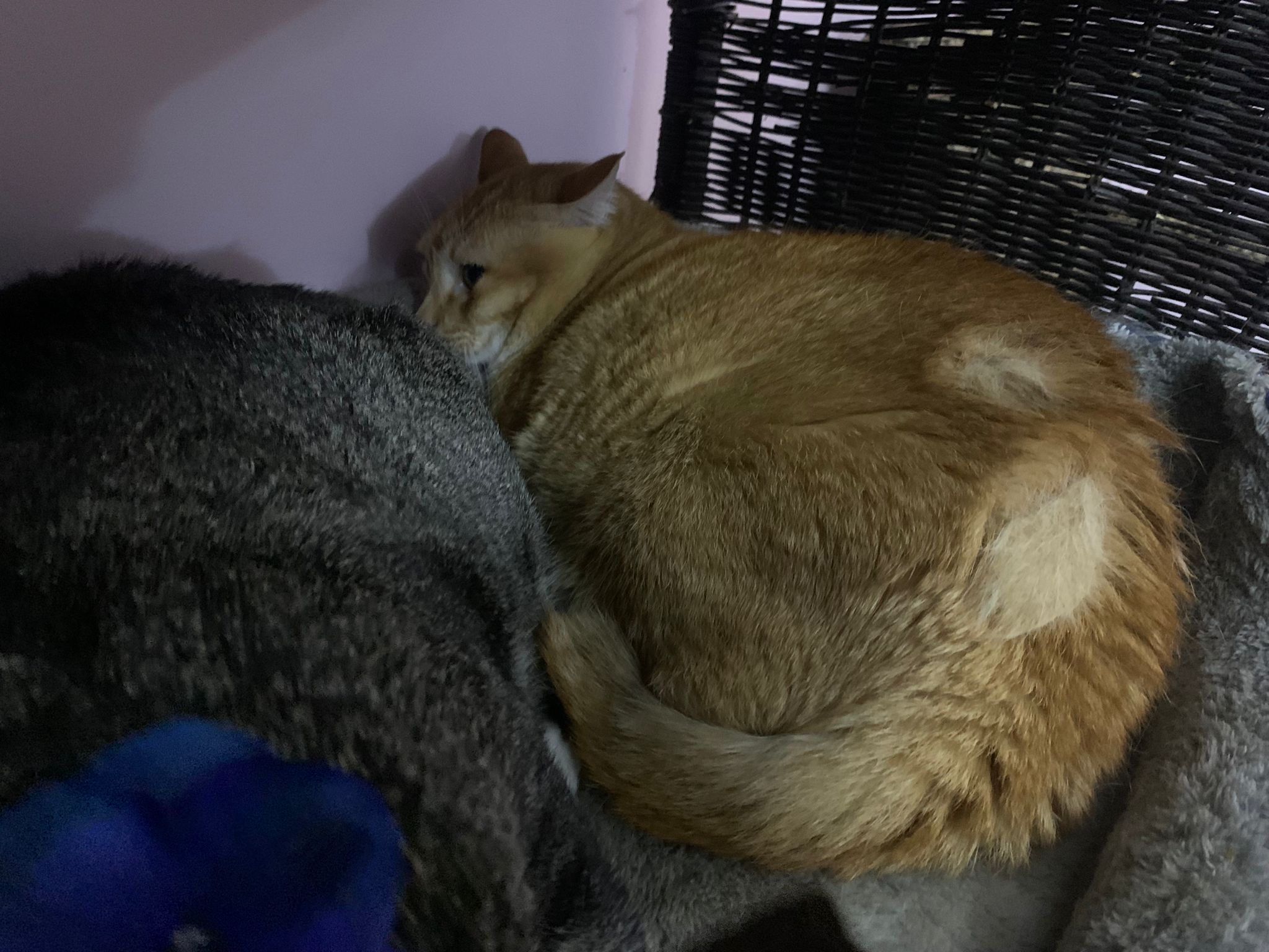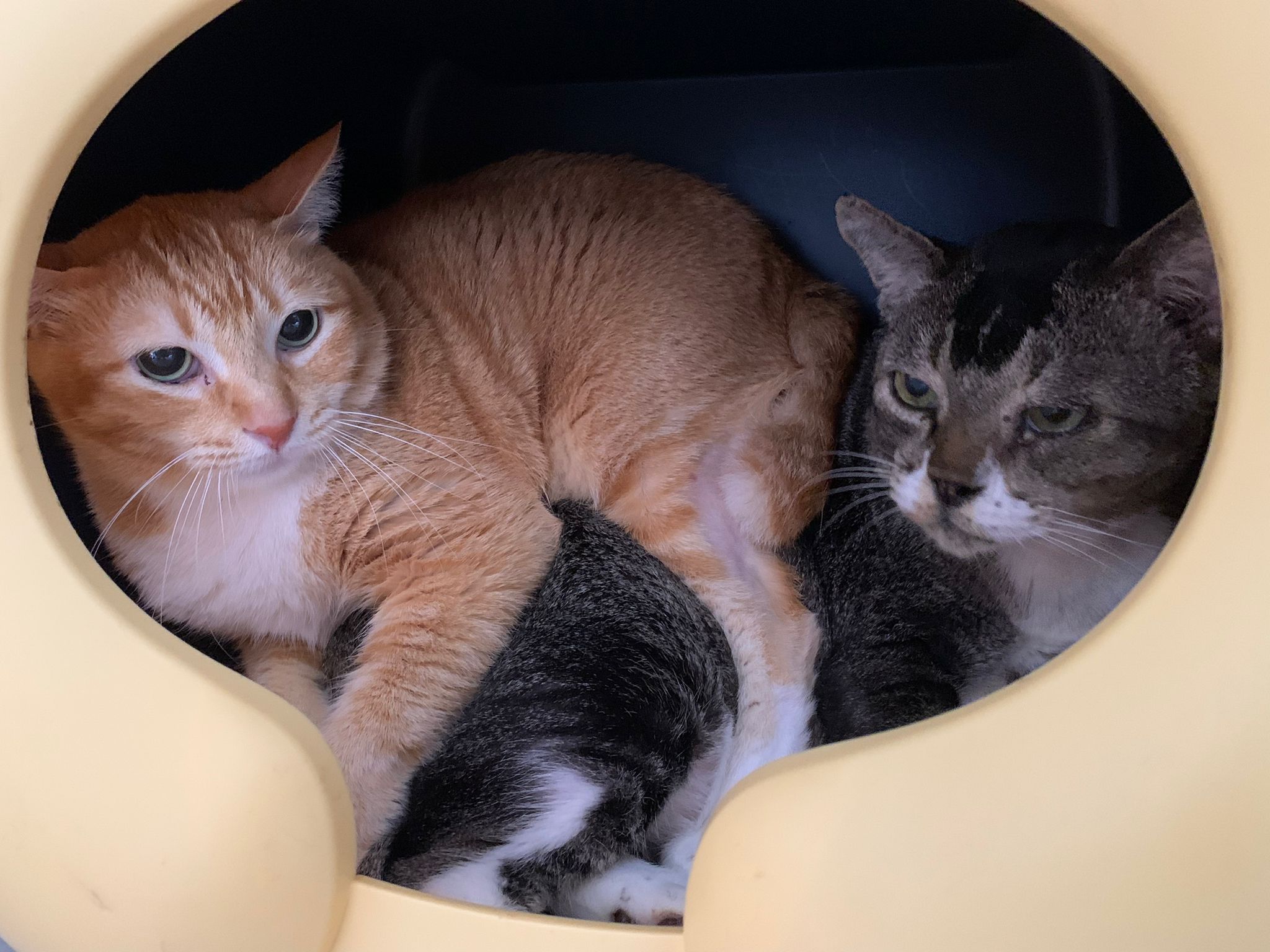 12pm+: ah bee say can come so let him come, amber and #猫房renny sit tgt cos of aircon servicing … take the Chance to sayang both tgt, hope they learn the good stuff from each other – Amber ok w sayang head, I sayang her under chin b4 but rare.