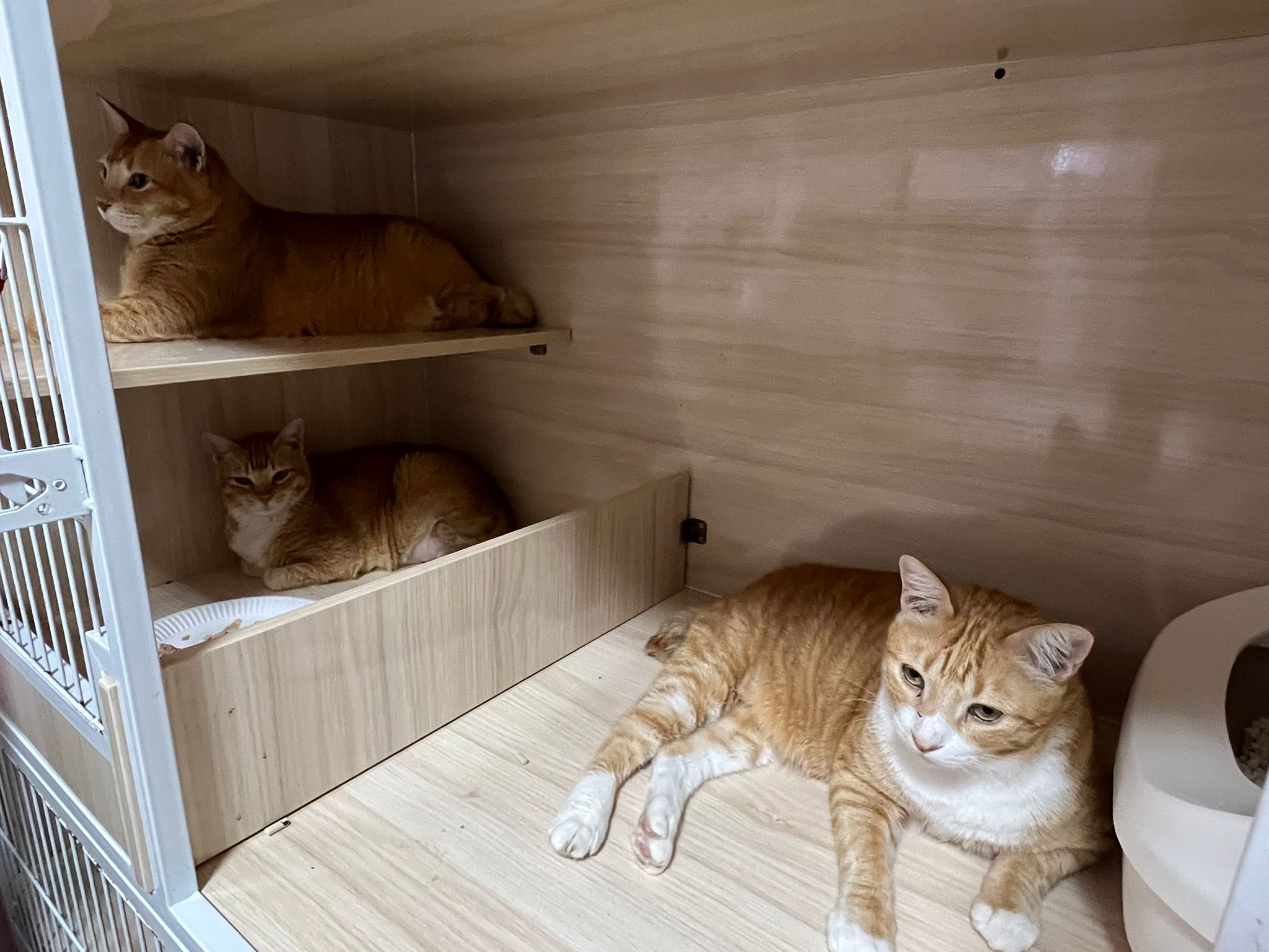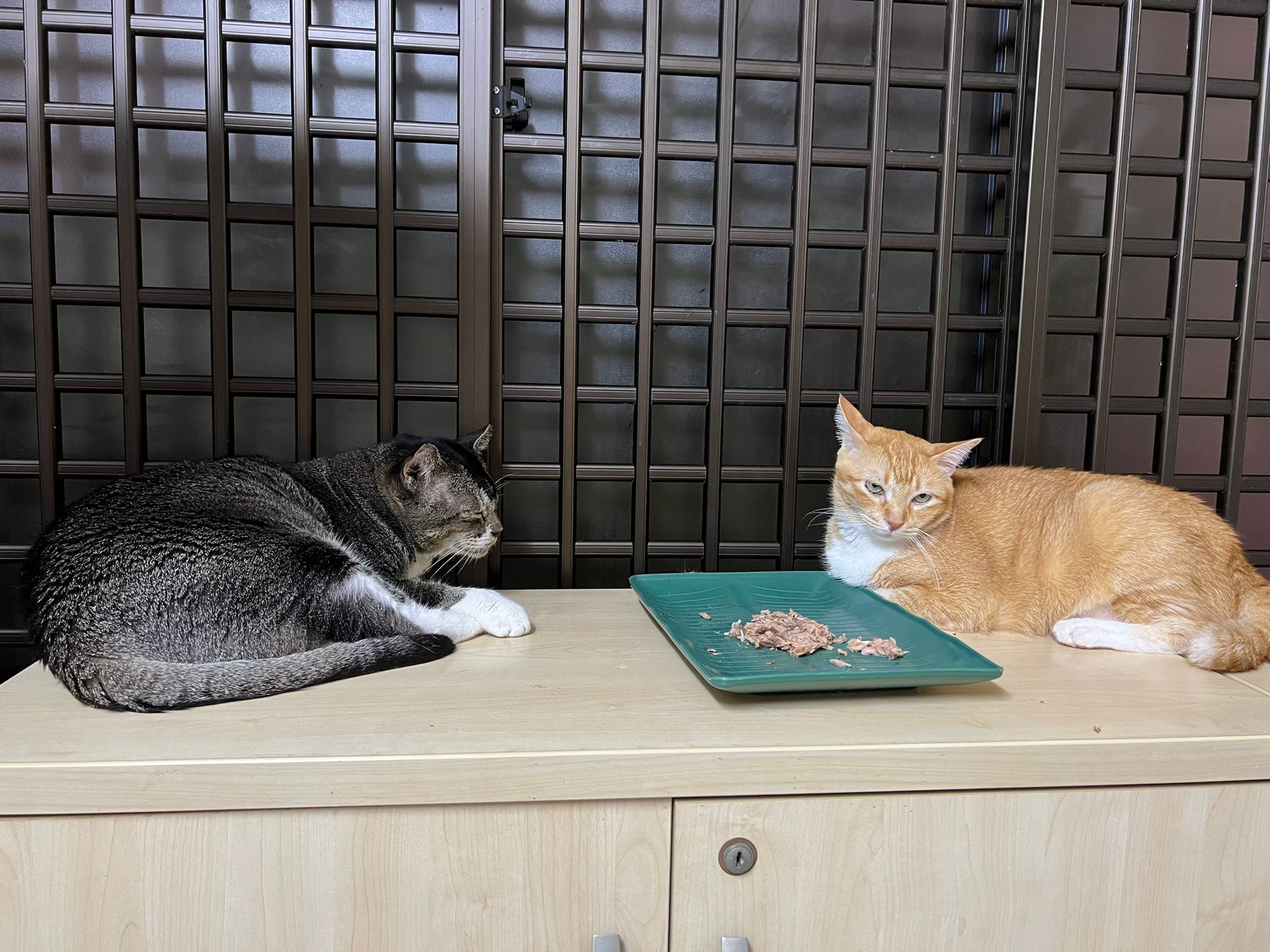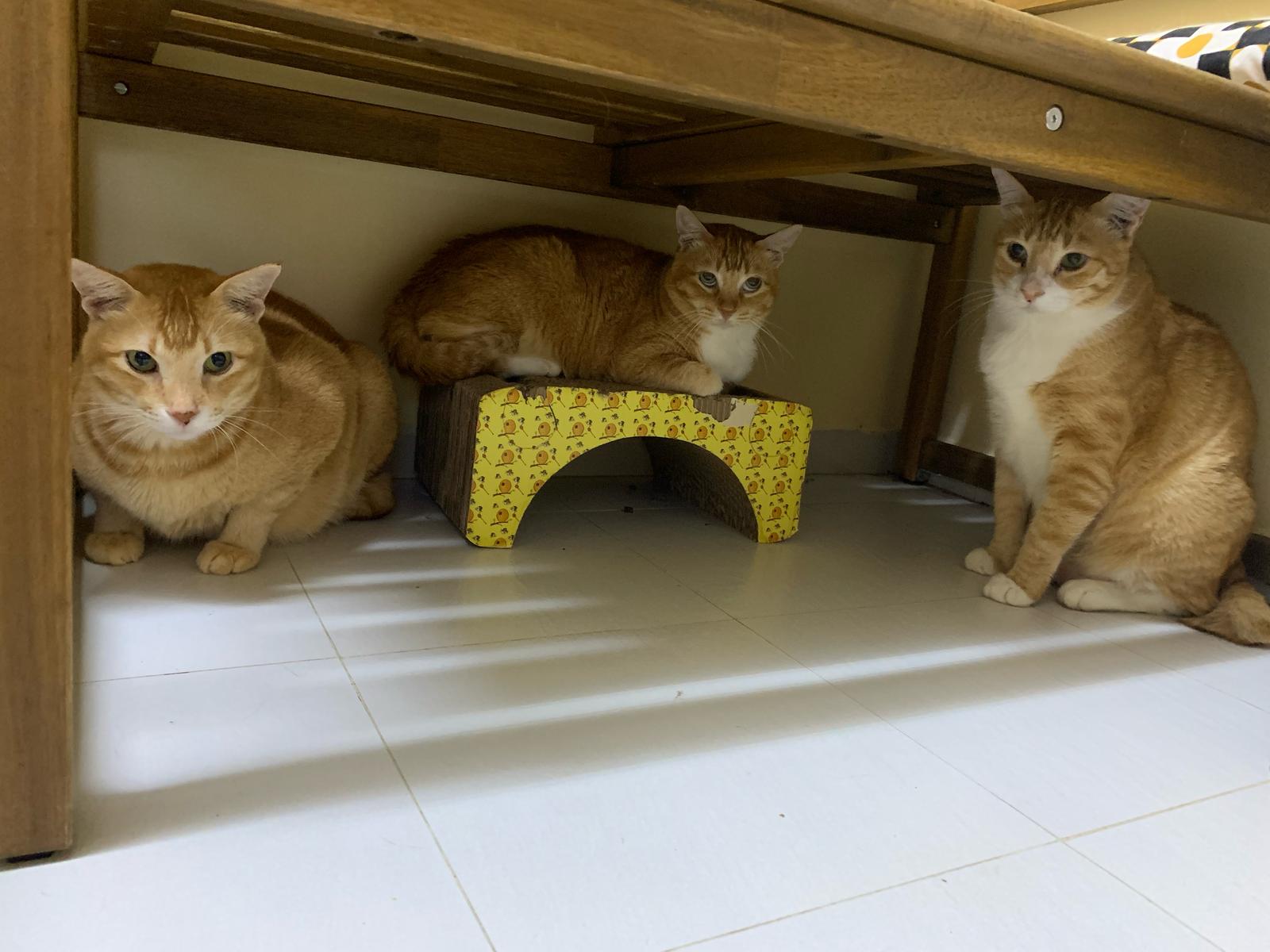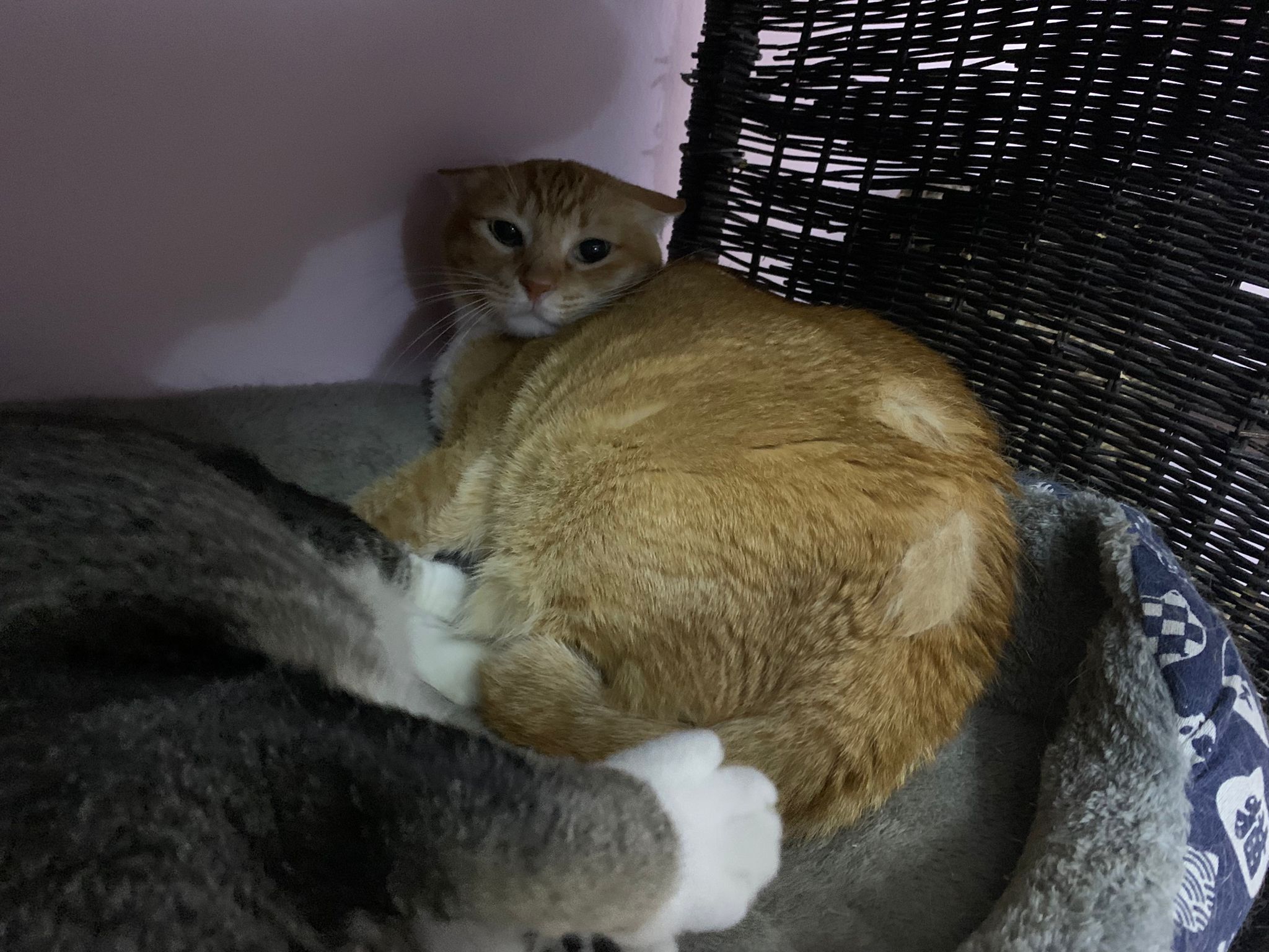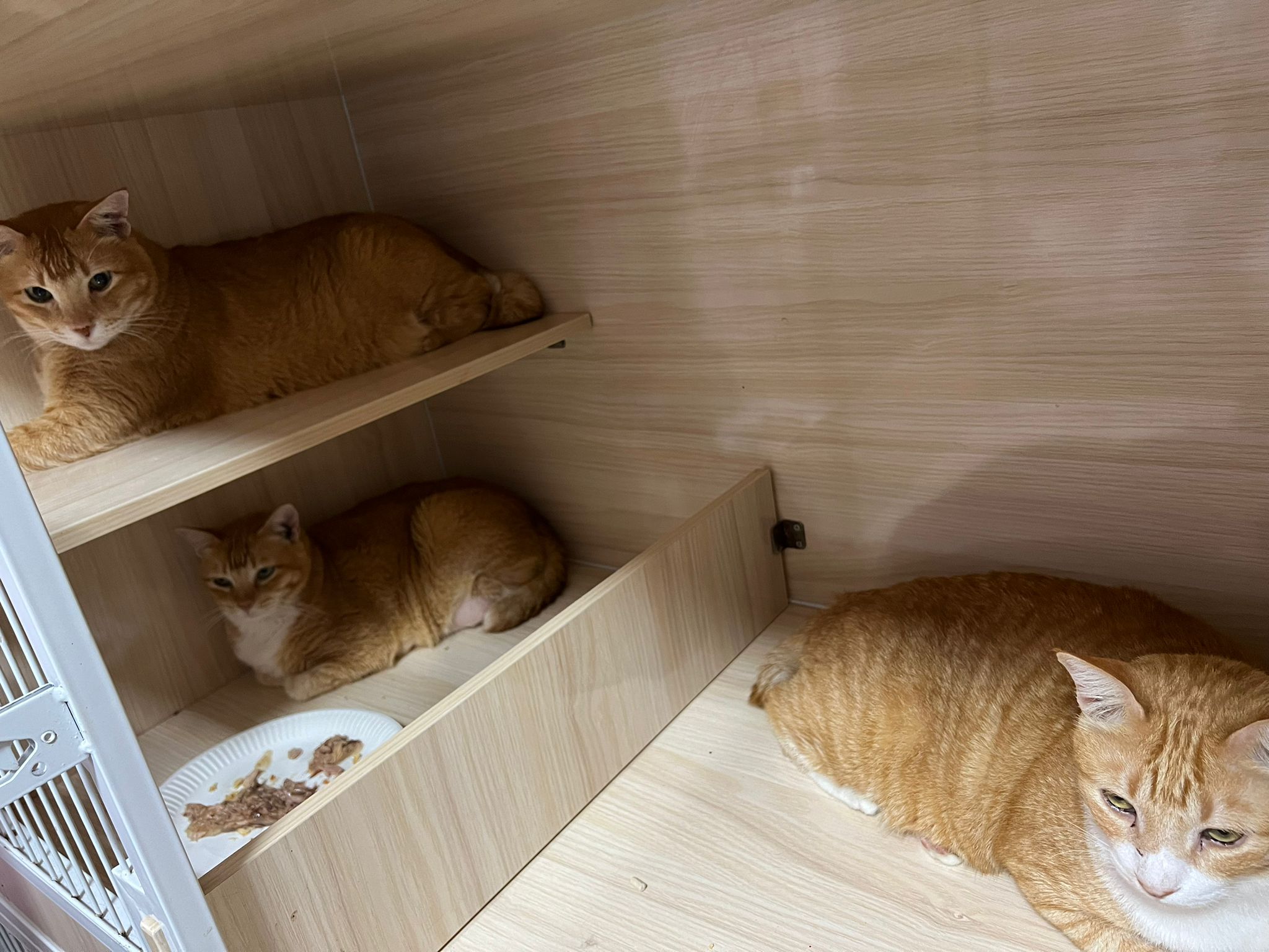 12pm+: ah bee say can come so let him come, amber and #猫房renny sit tgt cos of aircon servicing … take the Chance to sayang both tgt, hope they learn the good stuff from each other – Amber ok w sayang head, I sayang her under chin b4 but rare.