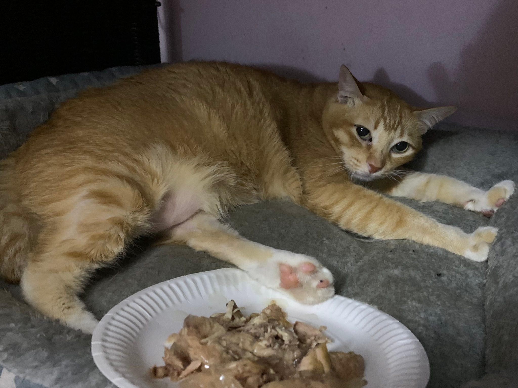 A mummy cat that I rescued 6 years ago, I spayed her and kept her till today waiting for a home. Animal communicator says she can’t accept me cos i spay her? :,( I hope she can open up if she get adopted. So this case needs lots of patience and love. She loves selar fish 🙂