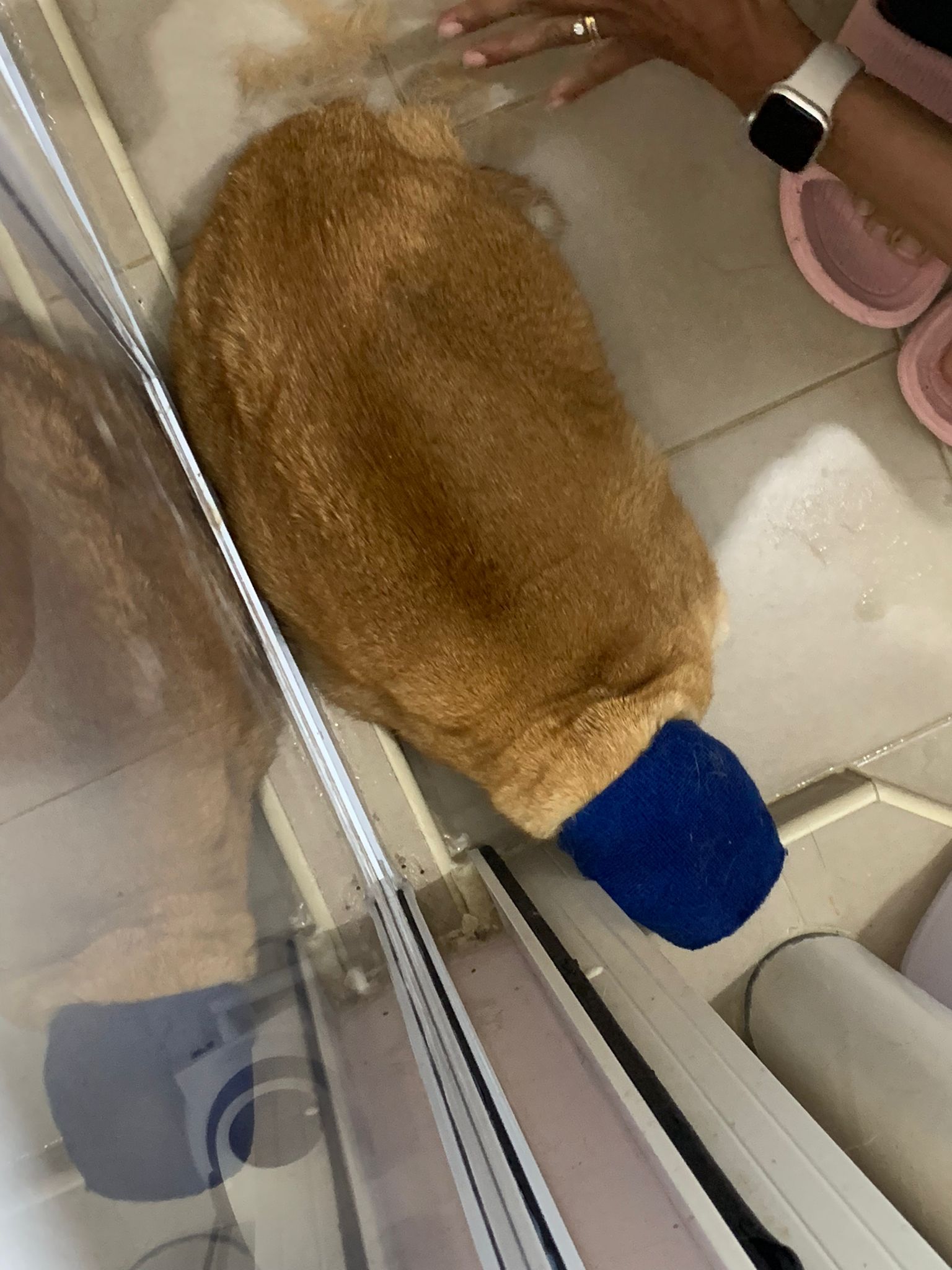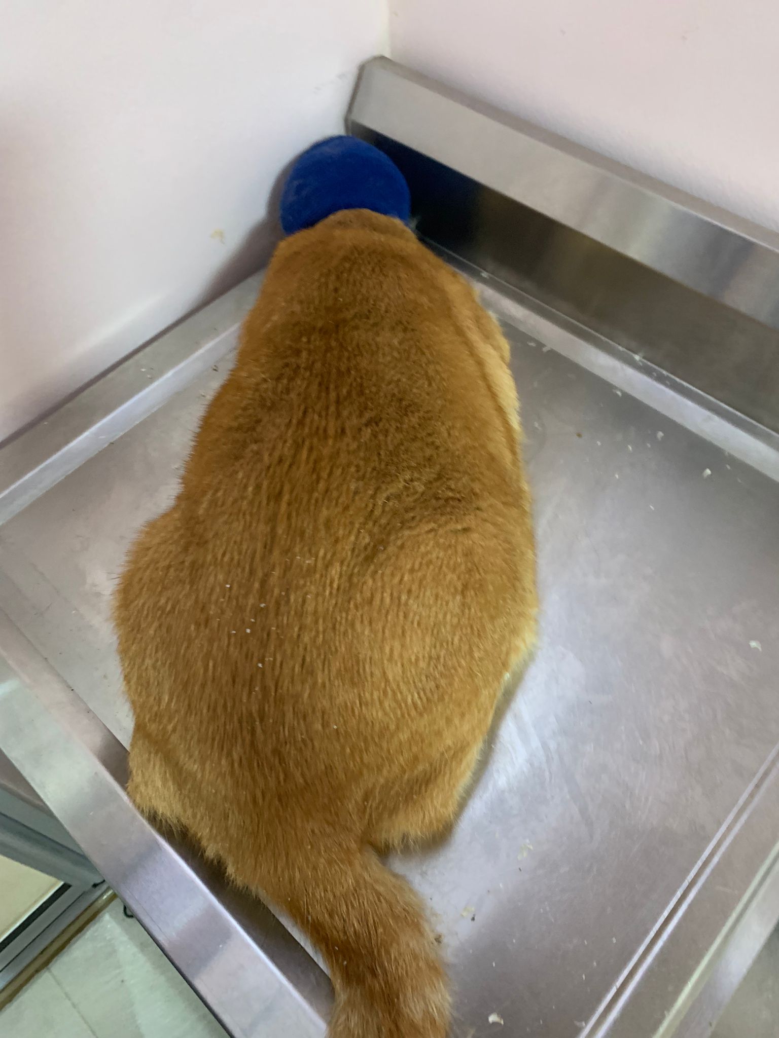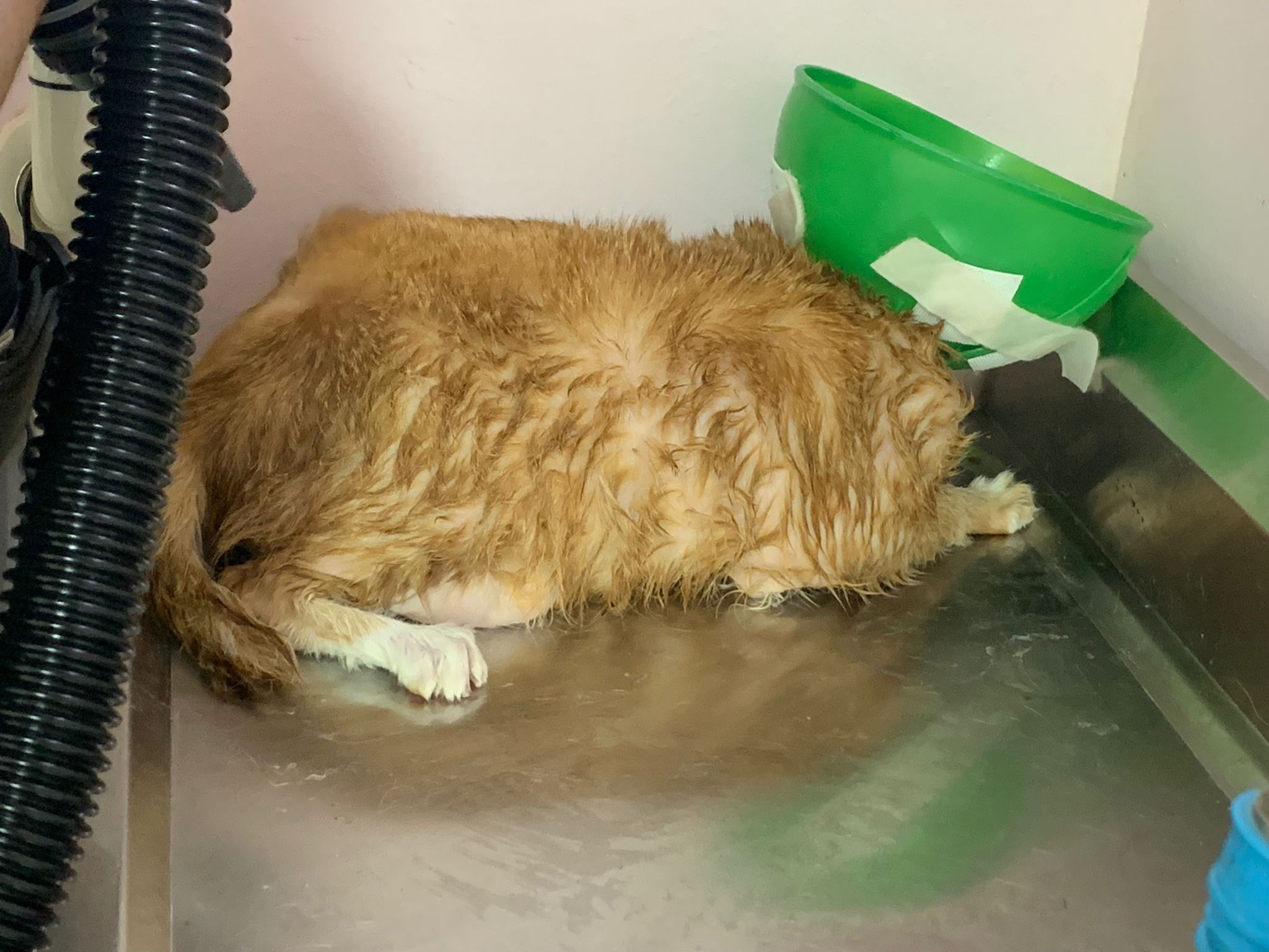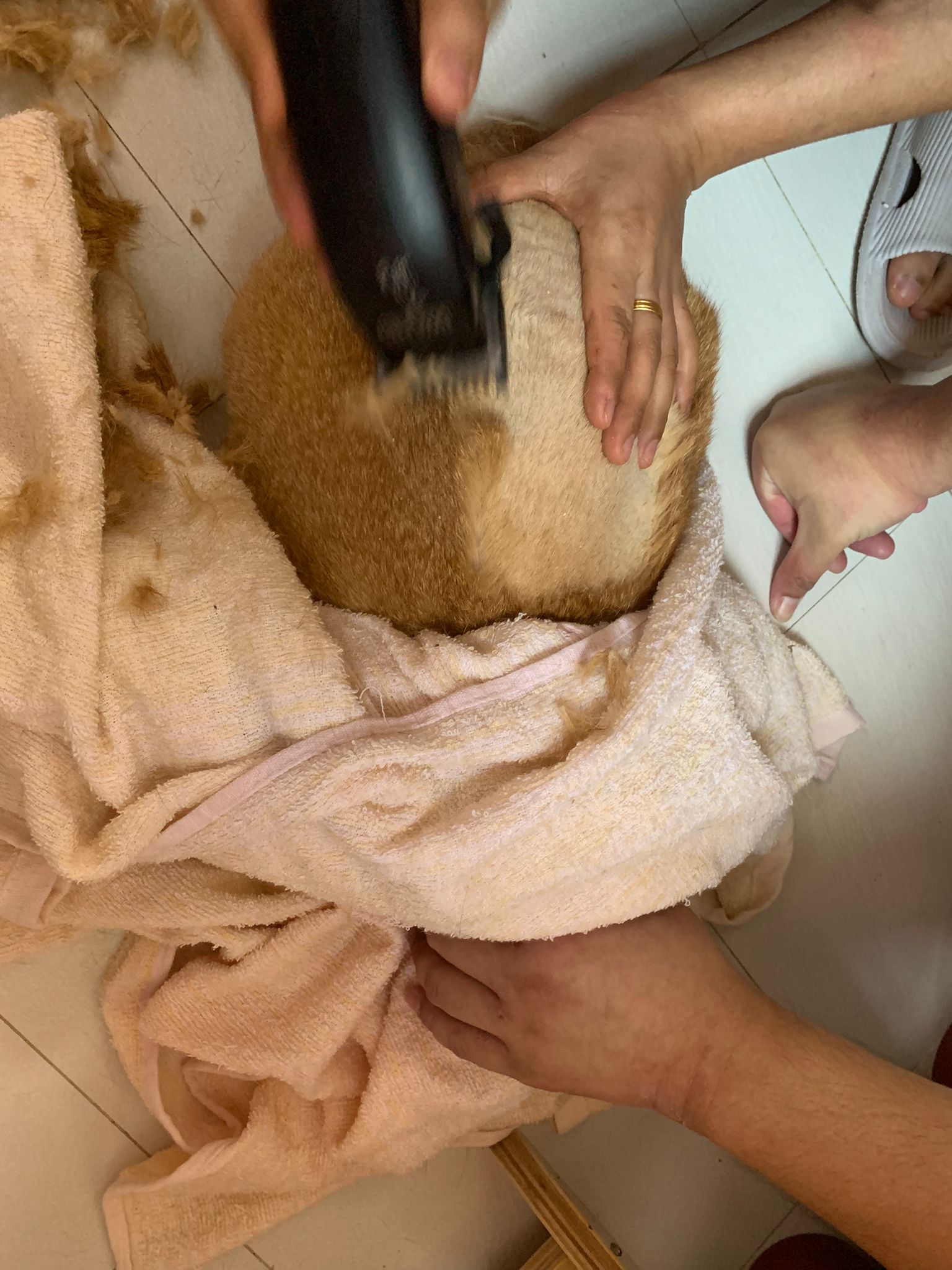 12pm+: told groomer amber pattern n she can sayang her front n head for a while then she run, n amber panic le. But still manage to hug her go grooming. Nails cut easy. Ears dirty, hind leg almost ingrowth le. Her same butt area matted not as bad as last time. Degrease for sure. Today amber will be ultra pretty!