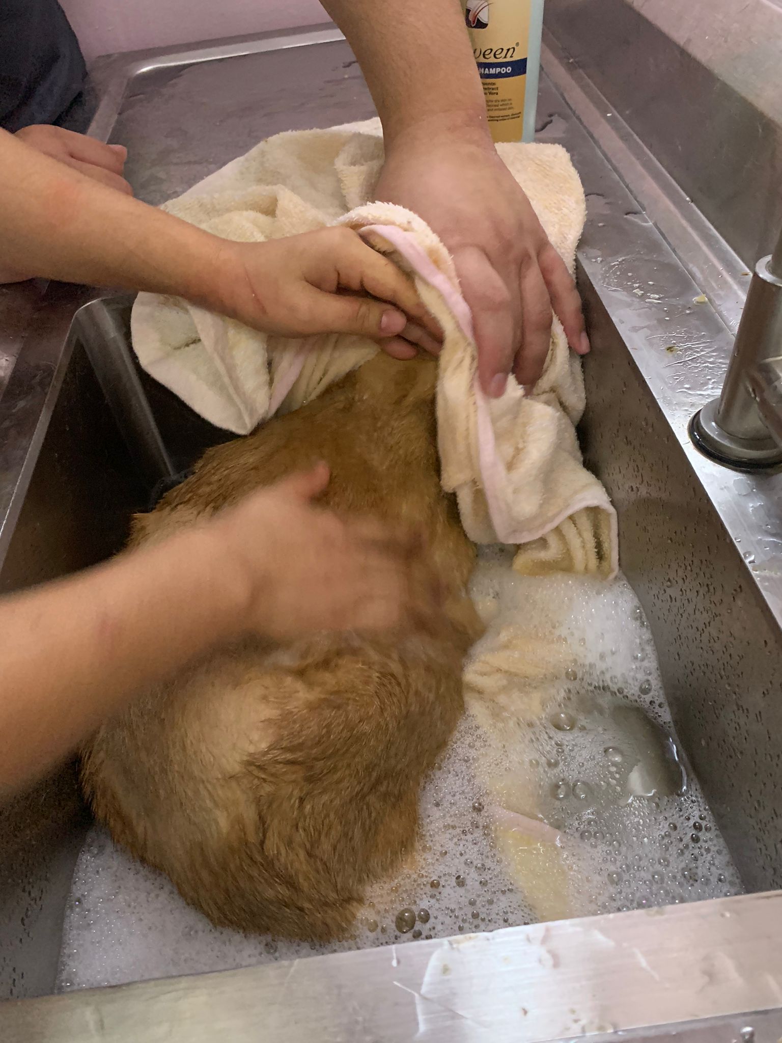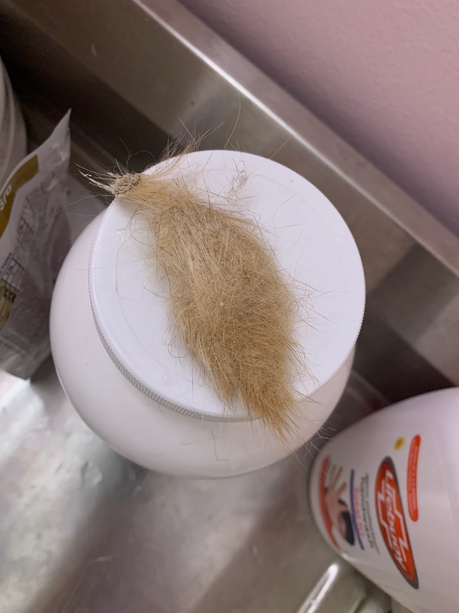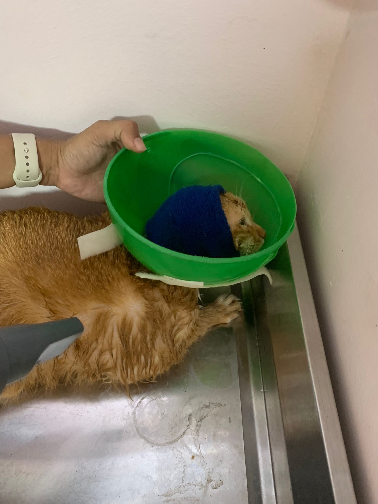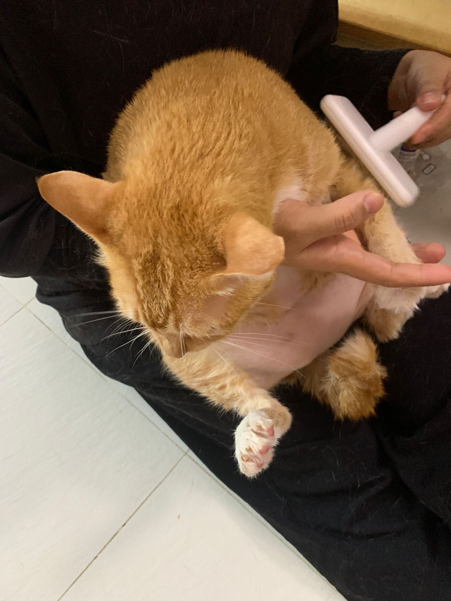 12pm+: told groomer amber pattern n she can sayang her front n head for a while then she run, n amber panic le. But still manage to hug her go grooming. Nails cut easy. Ears dirty, hind leg almost ingrowth le. Her same butt area matted not as bad as last time. Degrease for sure. Today amber will be ultra pretty!