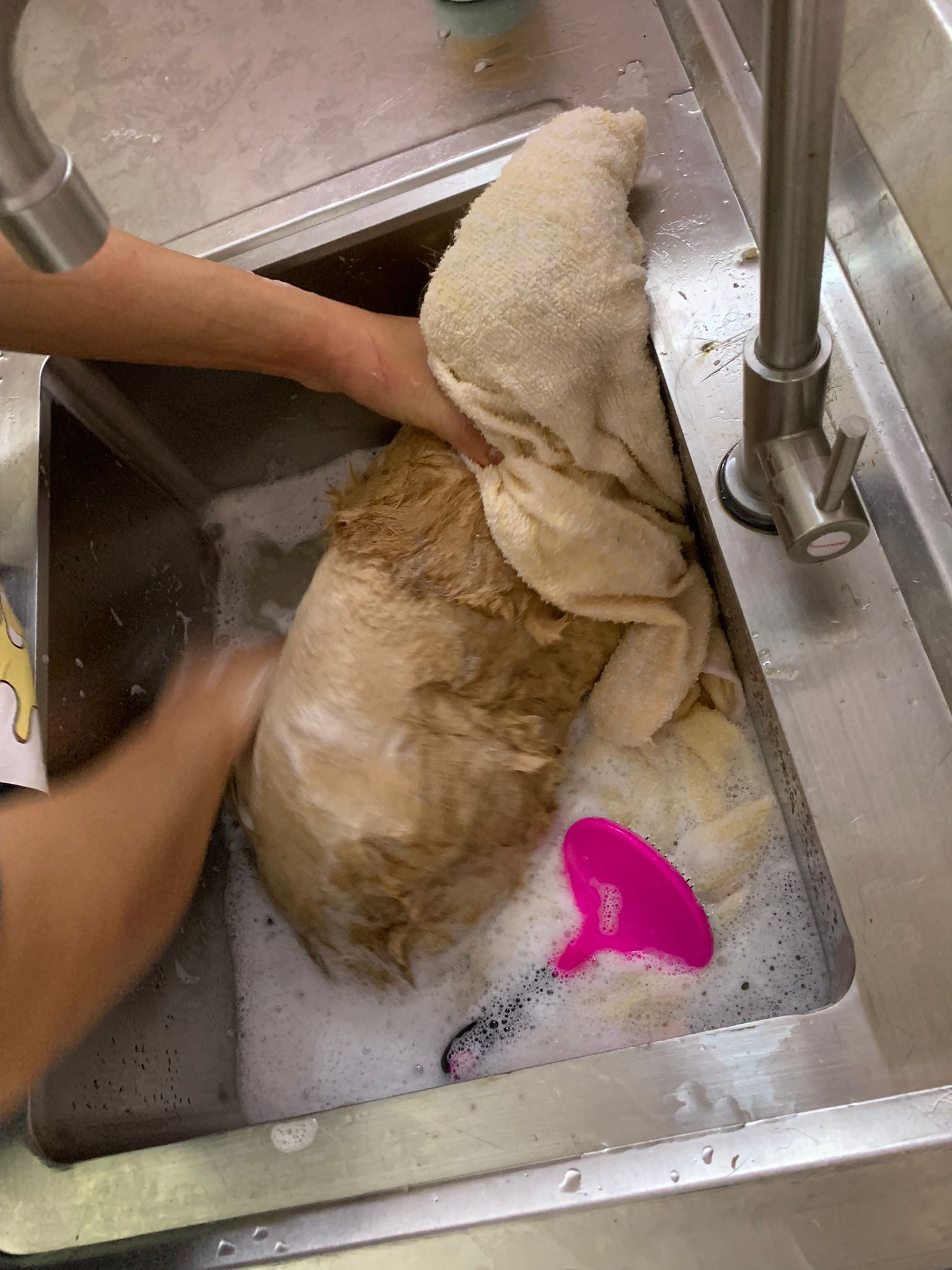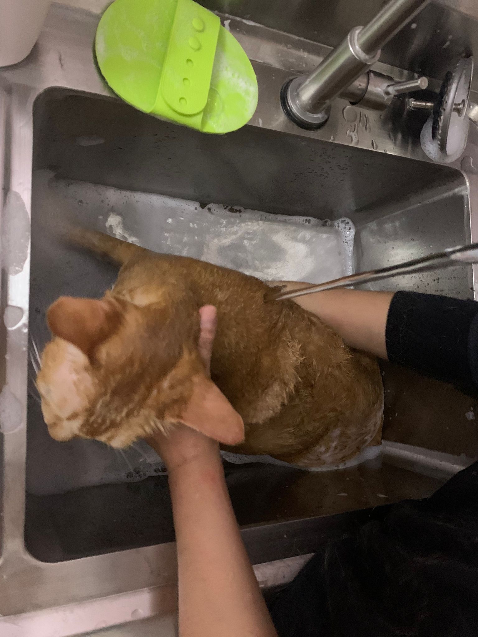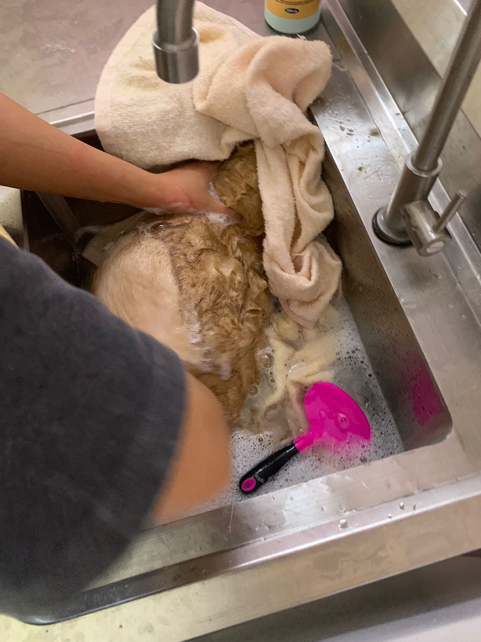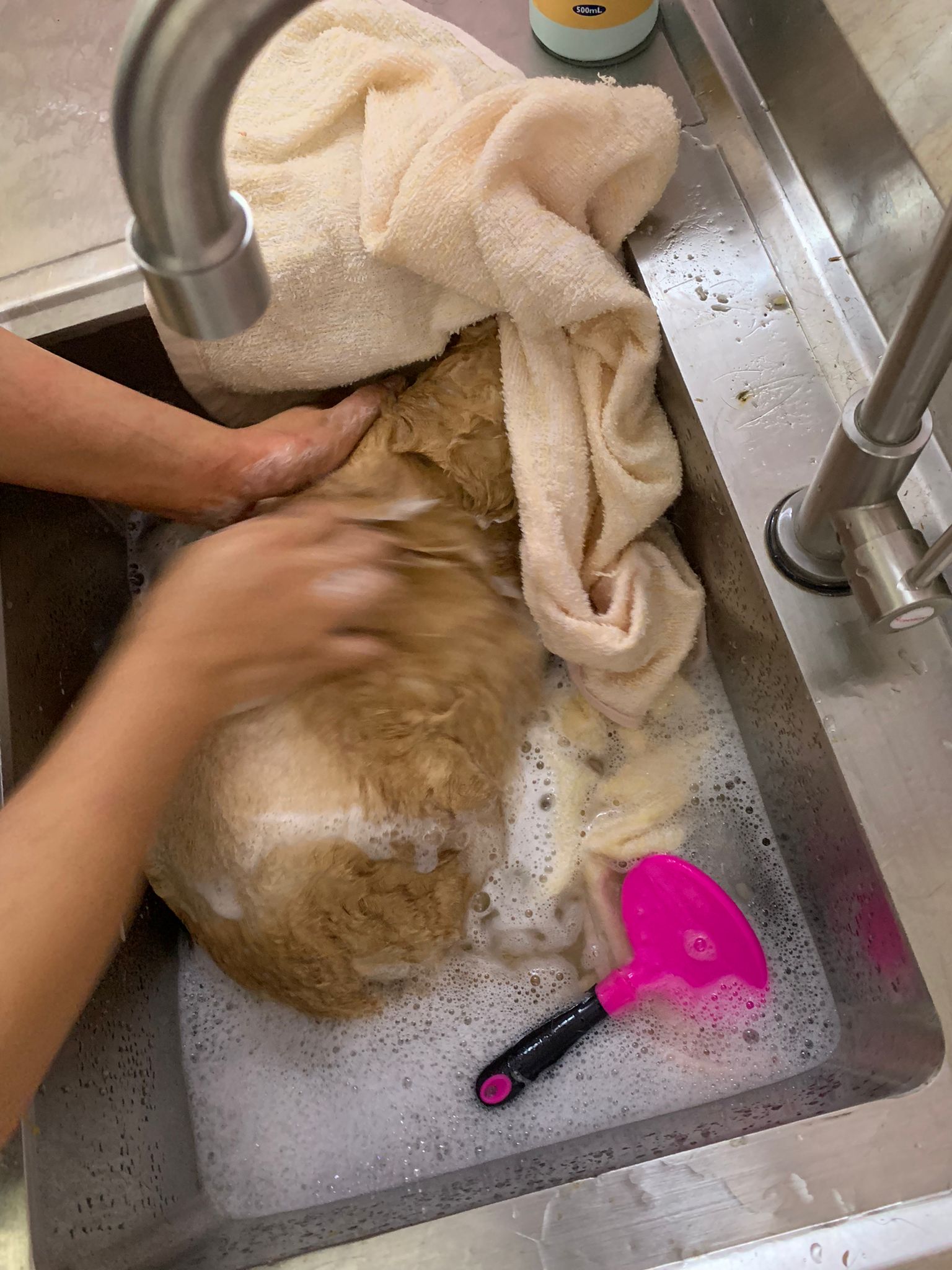 12pm+: told groomer amber pattern n she can sayang her front n head for a while then she run, n amber panic le. But still manage to hug her go grooming. Nails cut easy. Ears dirty, hind leg almost ingrowth le. Her same butt area matted not as bad as last time. Degrease for sure. Today amber will be ultra pretty!