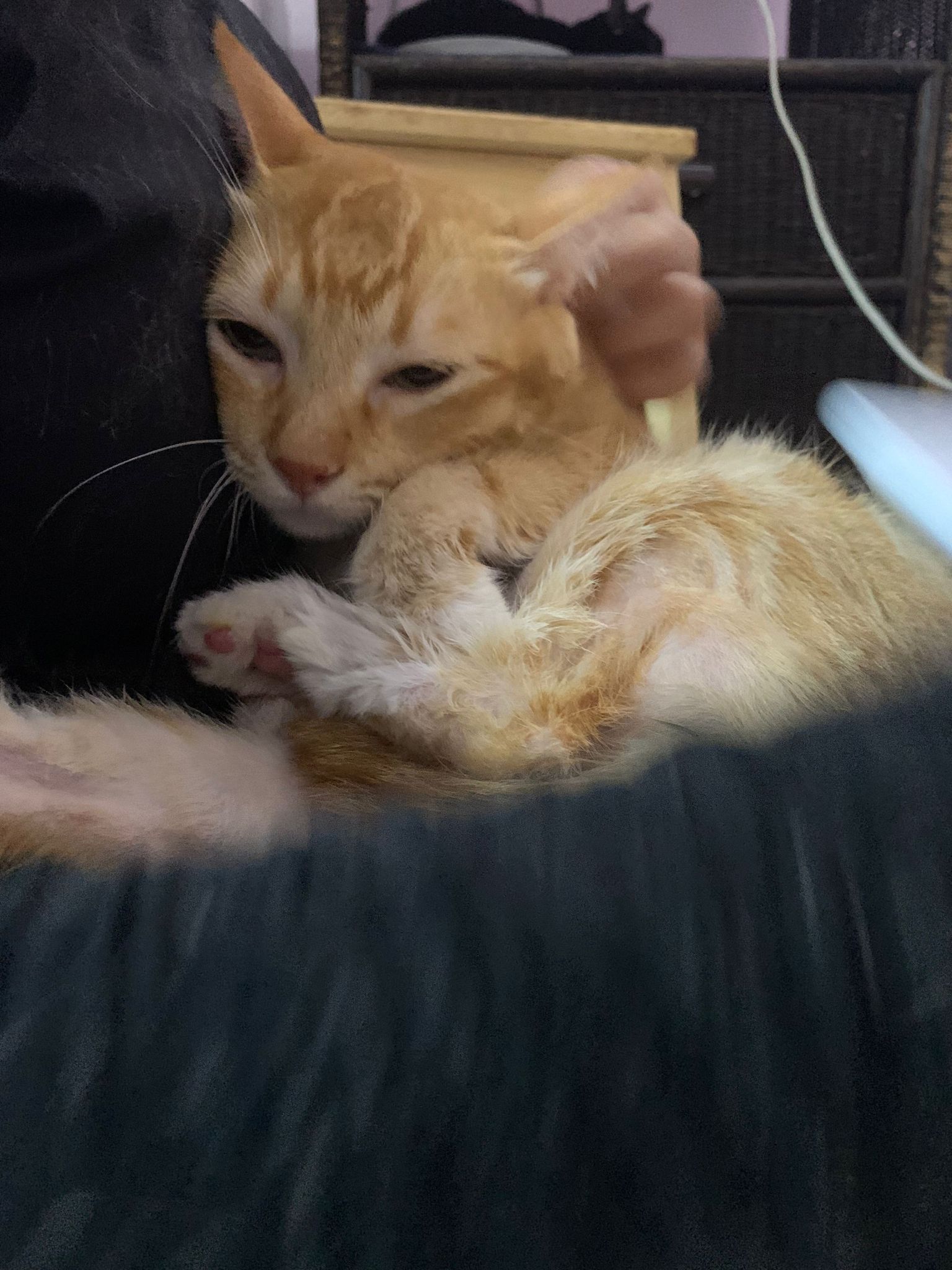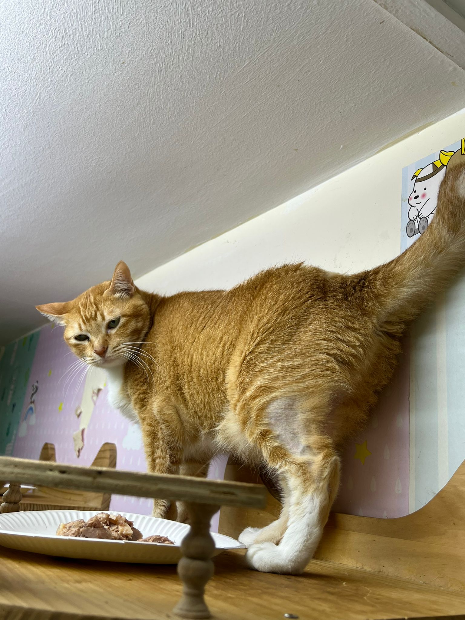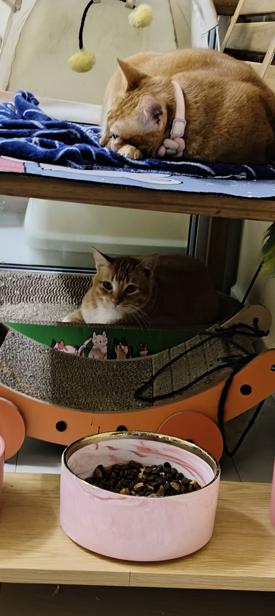 Amber (2yrs, F) Rare ginger girl, Litter trained, Mummy Amber is a young girl herself, very wary of human, Sterilized but ear untipped, Vaccinated f4, With foster for more than 8mths, still a scary girl, Foster didn’t cage her, can sayang her face/neck if keep calling her Amber Amber Amber n go slow.