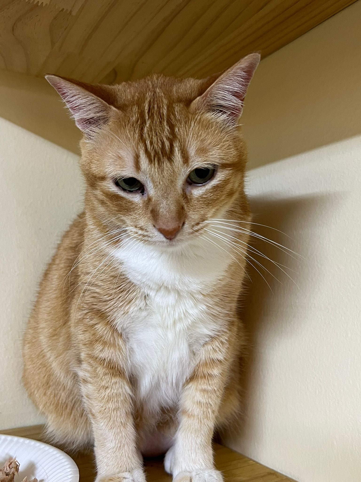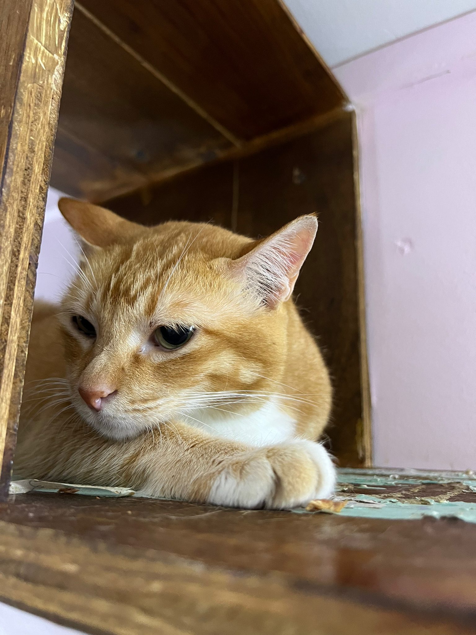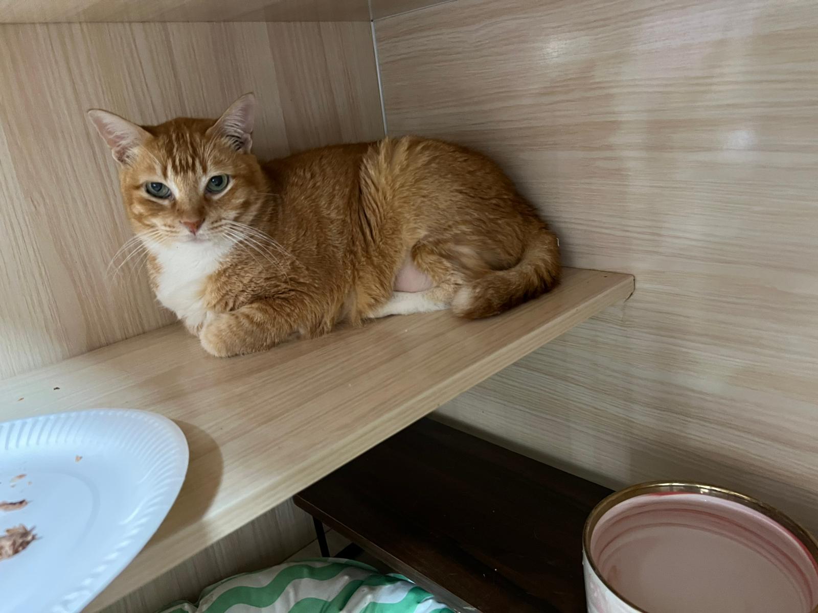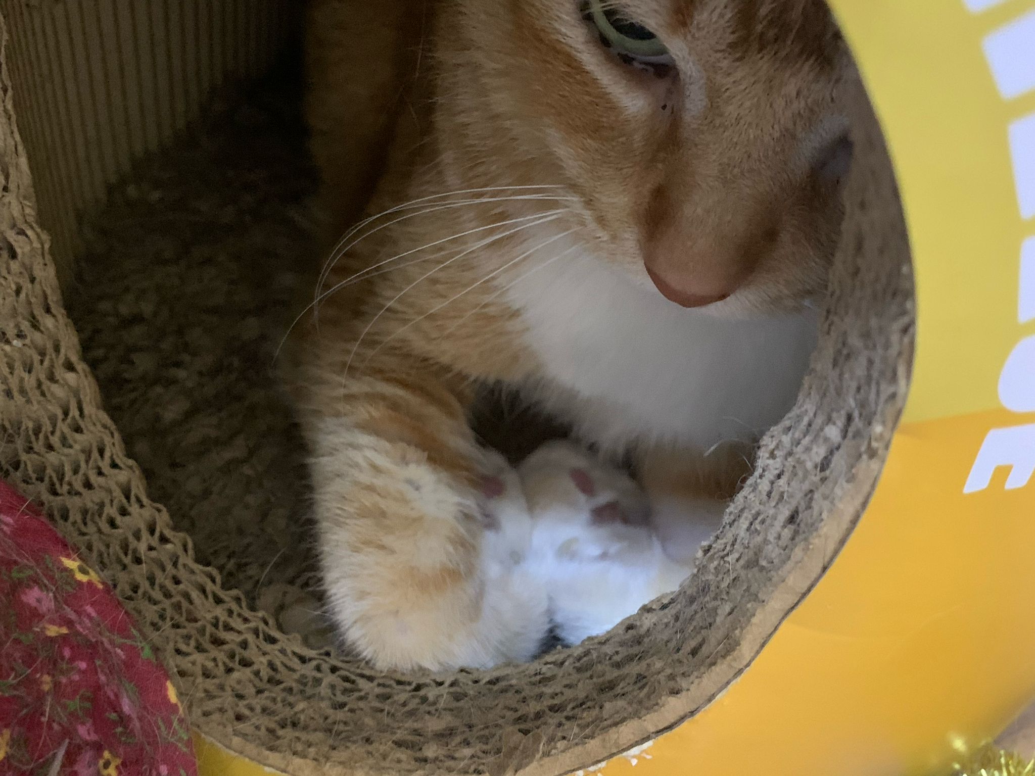 Amber (2yrs, F) Rare ginger girl, Litter trained, Mummy Amber is a young girl herself, very wary of human, Sterilized but ear untipped, Vaccinated f4, With foster for more than 8mths, still a scary girl, Foster didn’t cage her, can sayang her face/neck if keep calling her Amber Amber Amber n go slow.