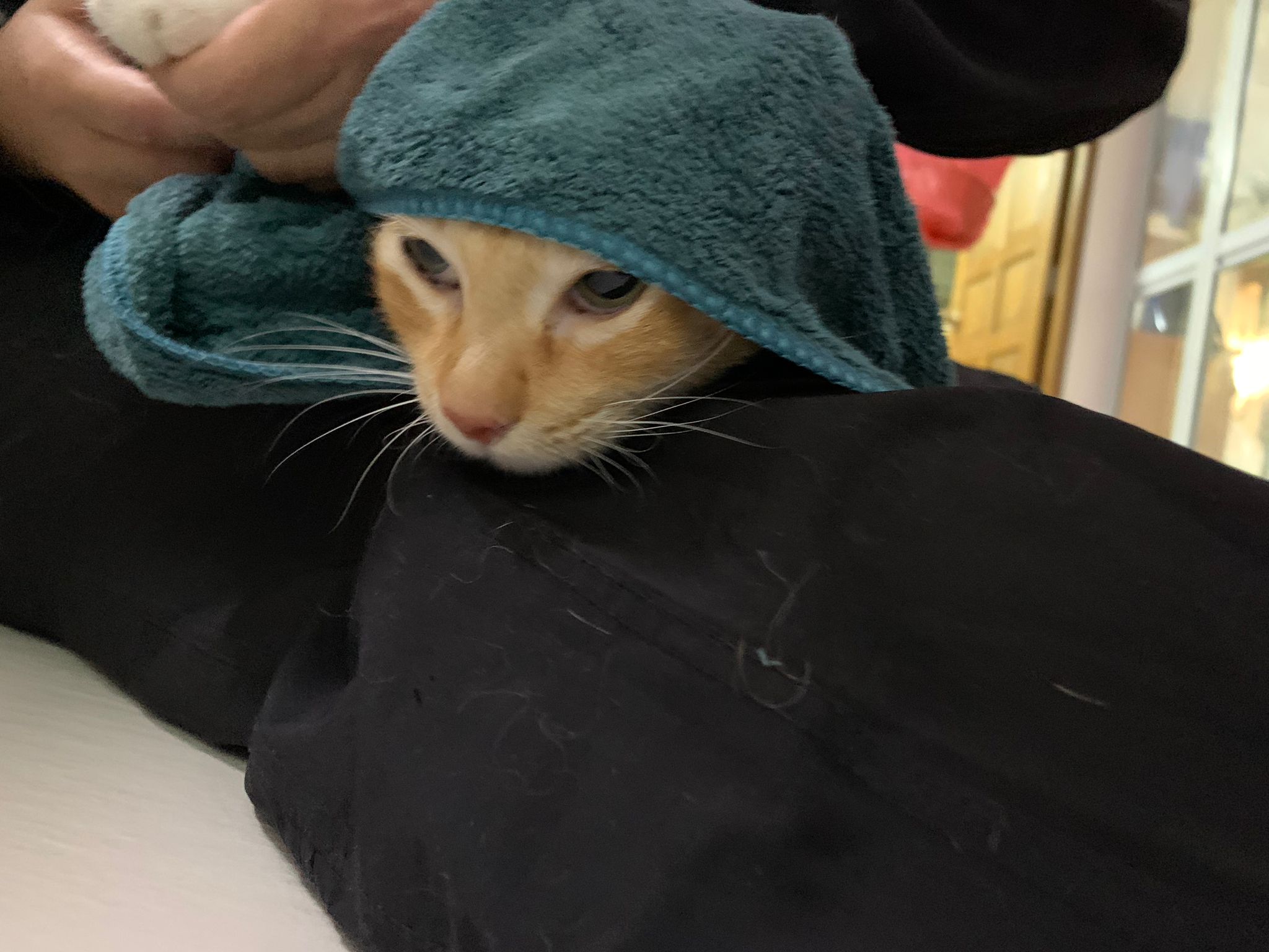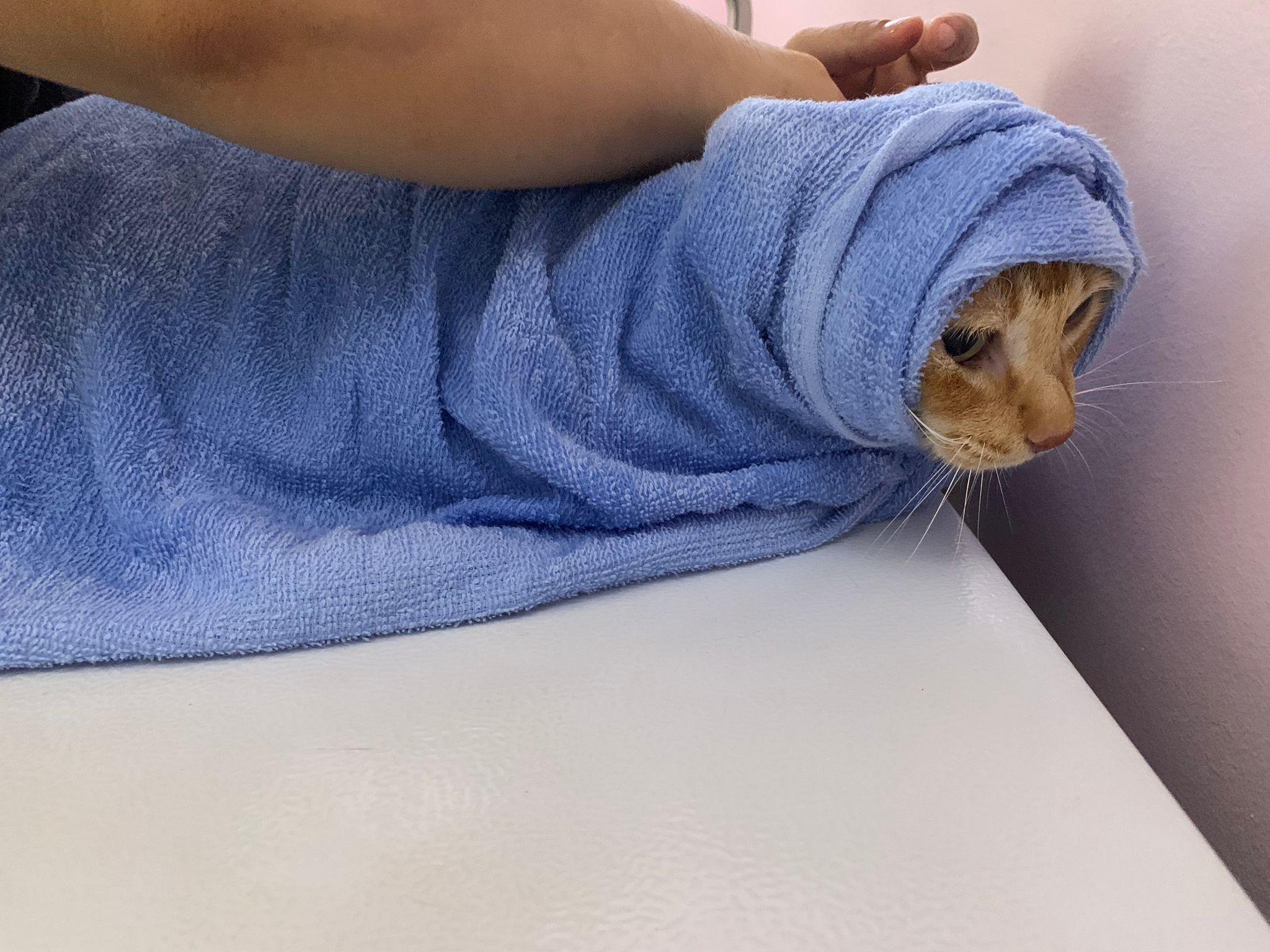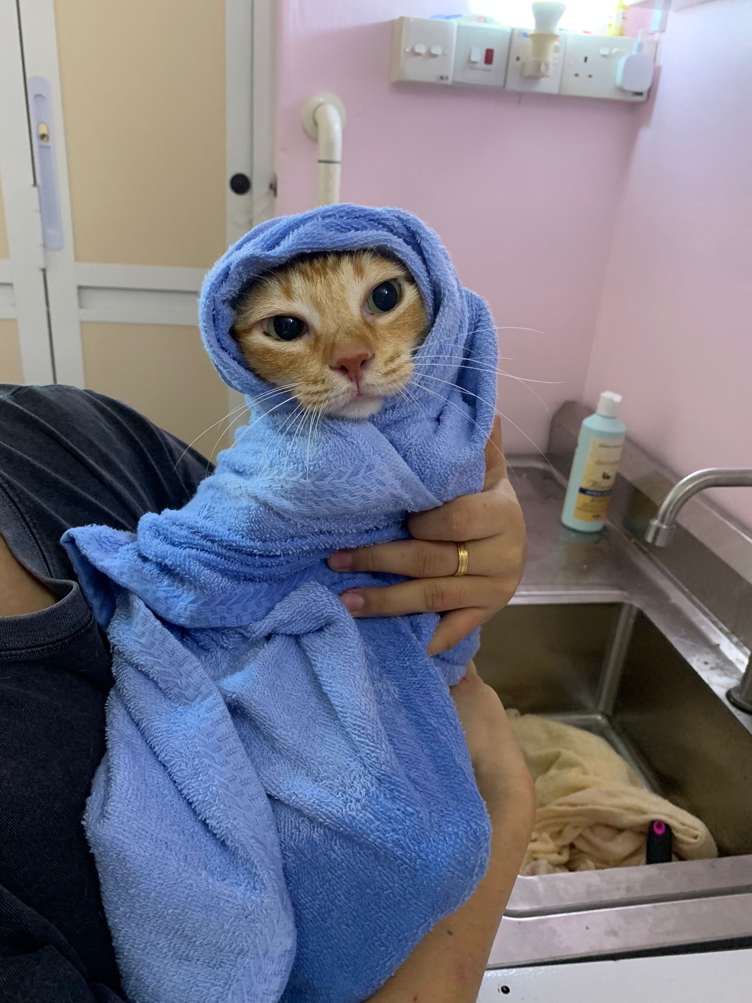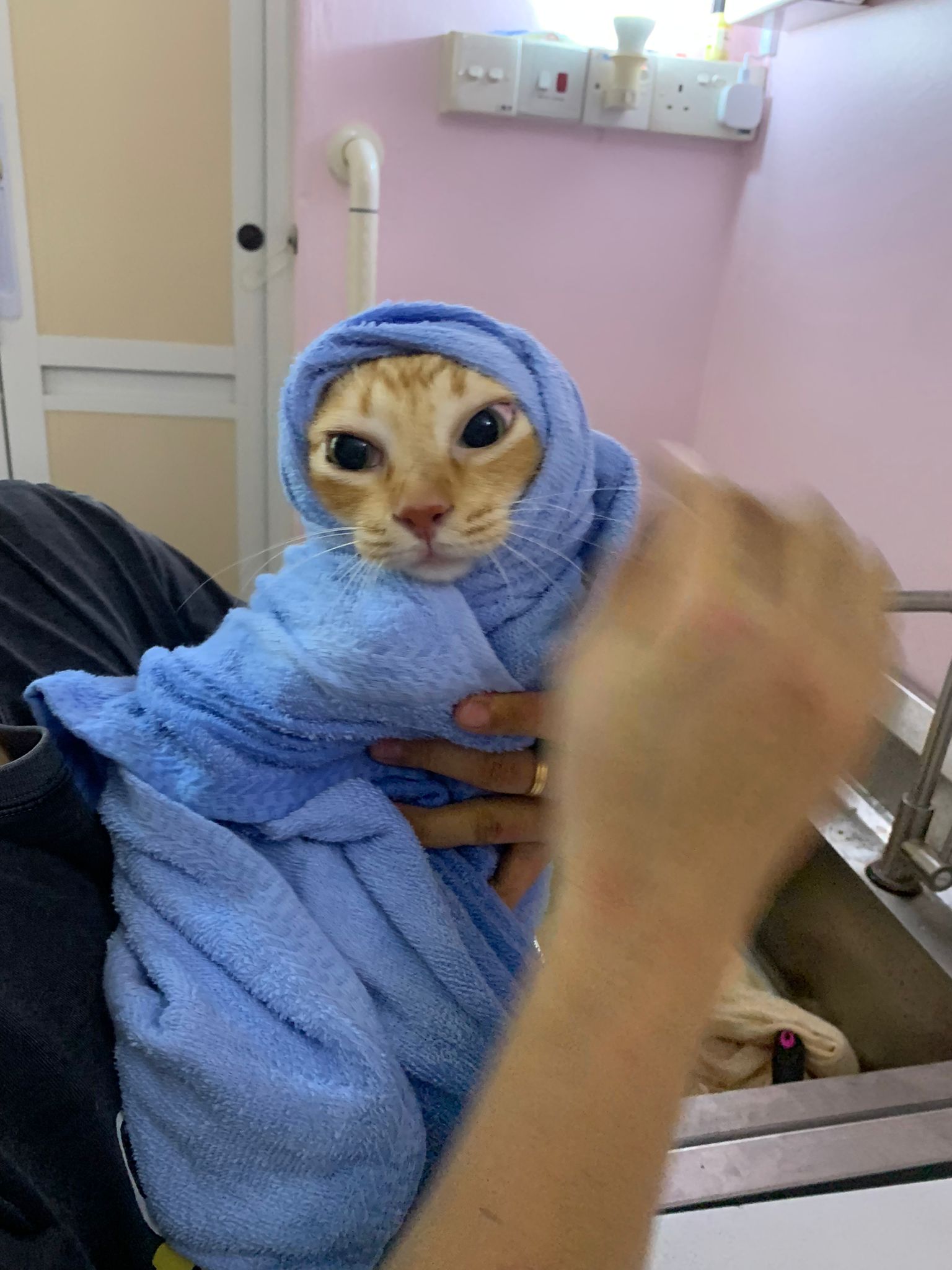 10am+: corner till one side, didn’t manage to get her into carrier. Told her clearly poke m/c then come back le. I sayang her back while my cardboard protect me. Feel her spine. Sigh she is thinner le. Old le. I say today if I didn’t get u I’ll bringing u to Ps then there I will do more bloods and treatment ah. Eventually manage to corner her after sunshine is caught. She walk into carrier. At clinic, come out towel cover n she is steady poke and go back carrier easy. 5.22kg – drop 210g in 20 months.